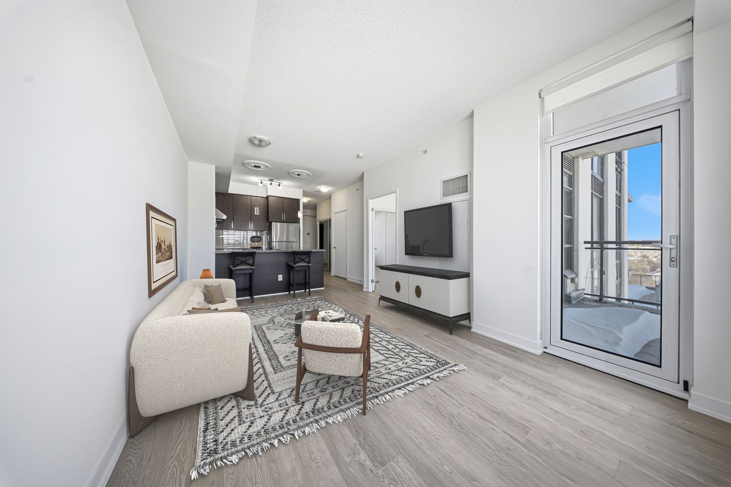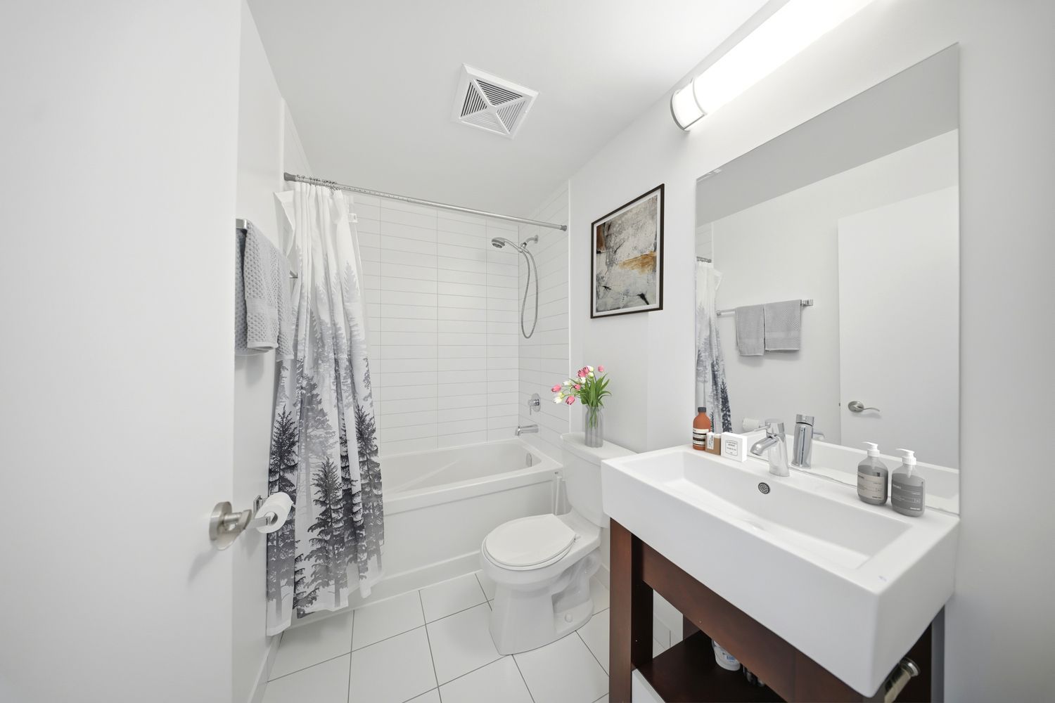 • Updated 1 Bed + Den suite with modern finishes and smart features.