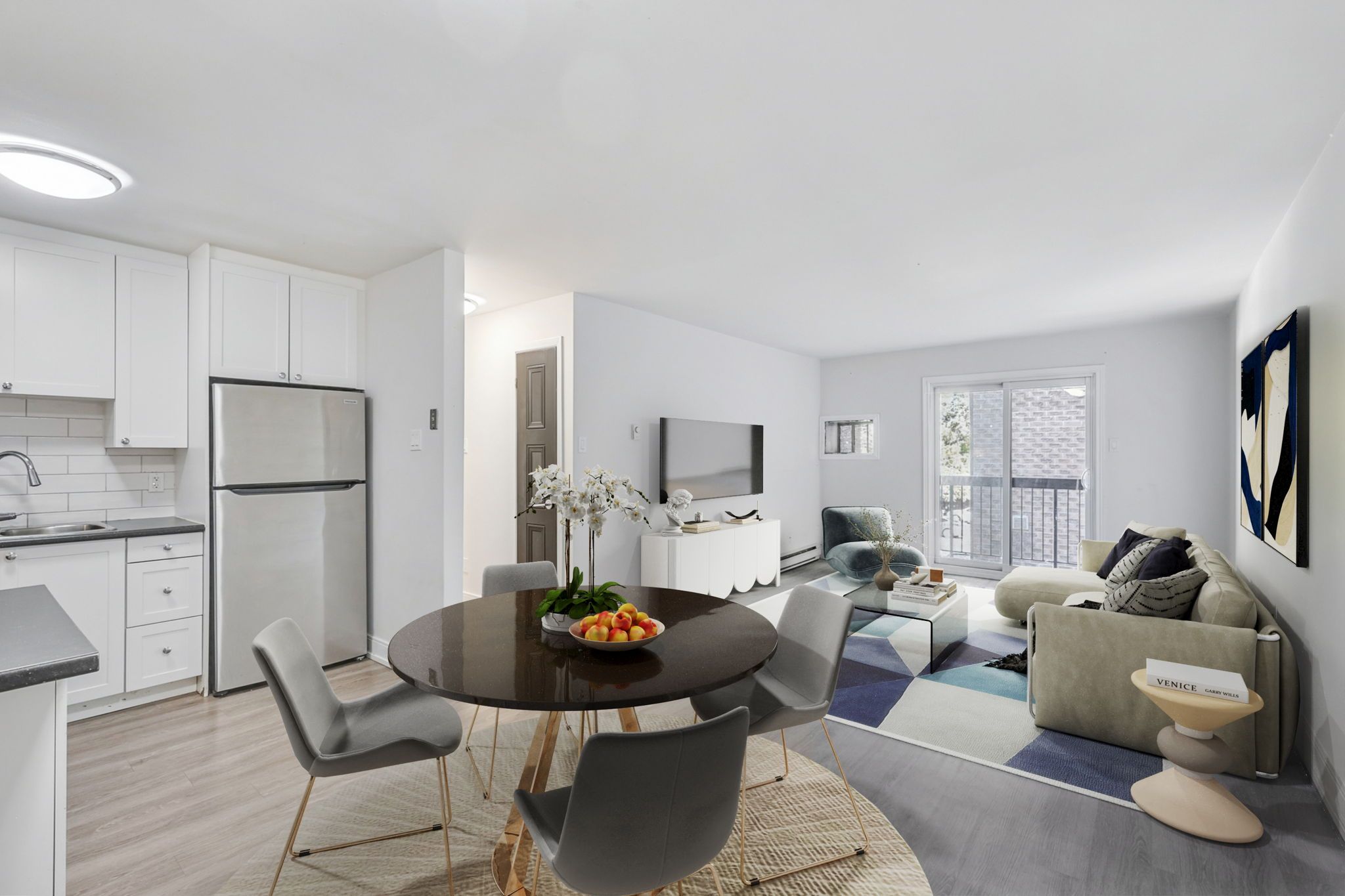 • Recently renovated with a modern kitchen and updated flooring.
