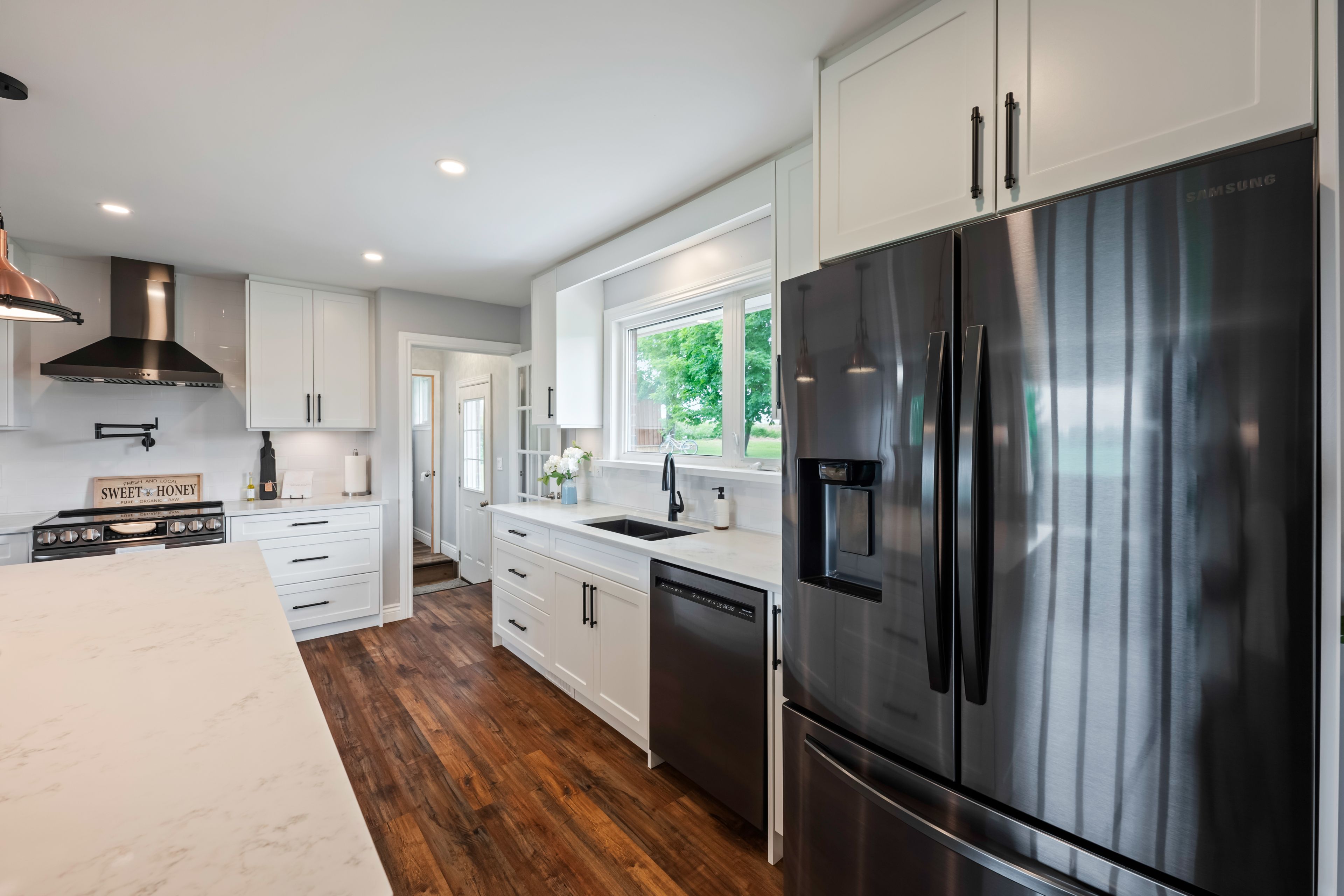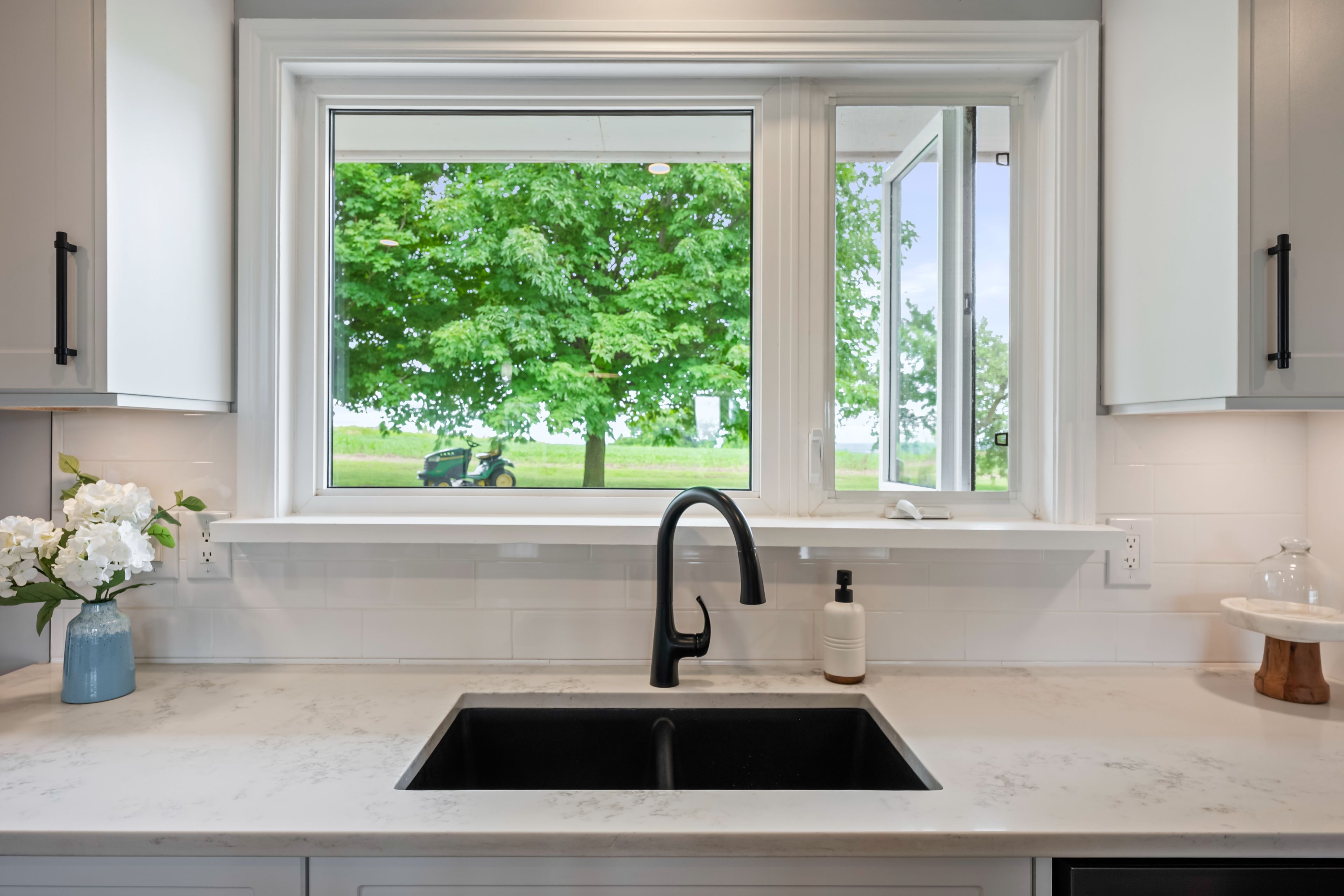• Renovated bungalow on a spacious corner lot with scenic farmland views.