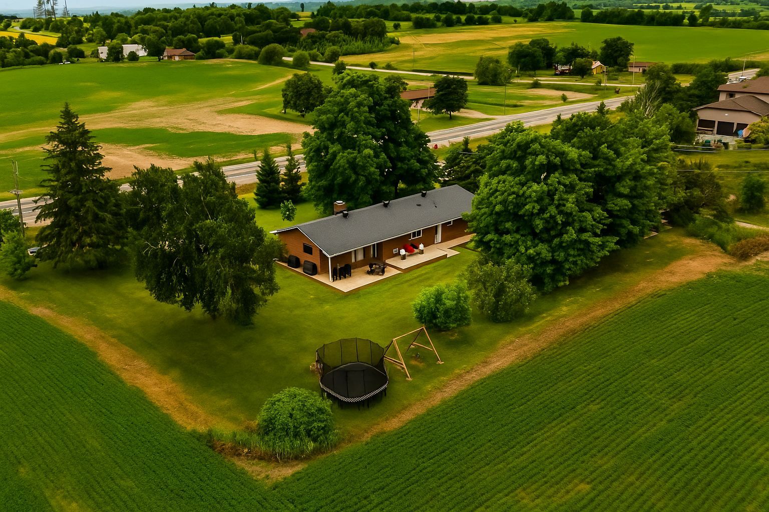 Discover your dream countryside retreat--where modern luxury meets peaceful, open-air living! This beautifully renovated bungalow sits on a picturesque corner lot of almost an acre, surrounded by mature trees and breathtaking farmland views. Enjoy the best of both worlds: tranquil rural living just 5 minutes from alliston's boutique shops, restaurants, and amenities. Inside, the show-stopping kitchen steals the spotlight with a massive quartz island, new stainless steel appliances, a pantry, and an open flow perfect for cooking and entertaining. The cozy living area features a stunning fireplace, complemented by new floors and stylishly updated bathrooms, including an ensuite. Need more space? The separate-entry, partially finished basement offers two framed bedrooms awaiting your personal finishing touches--an incredible opportunity to design your own in-law suite, guest area, or income potential apartment. Outside, unwind on the covered porch, host gatherings on the expansive decks, or soak in the sunset from your private outdoor oasis. A charming board & batten shed adds storage, while the fully insulated, heated, and air-conditioned garage is ideal for projects or hobbies-complete with 200-amp service and a 100-amp sub-panel. With a1 zoning, ample parking, and quick access to hwy 89, airport road, and hwy 50, this property is perfect for families, multi-generational living, business owners, investors, and nature lovers alike. This turn-key countryside haven has it all-modern comfort, country charm, and unmatched versatility. Don't miss it-your next chapter starts here!