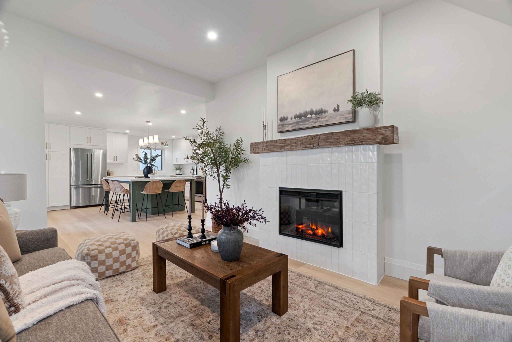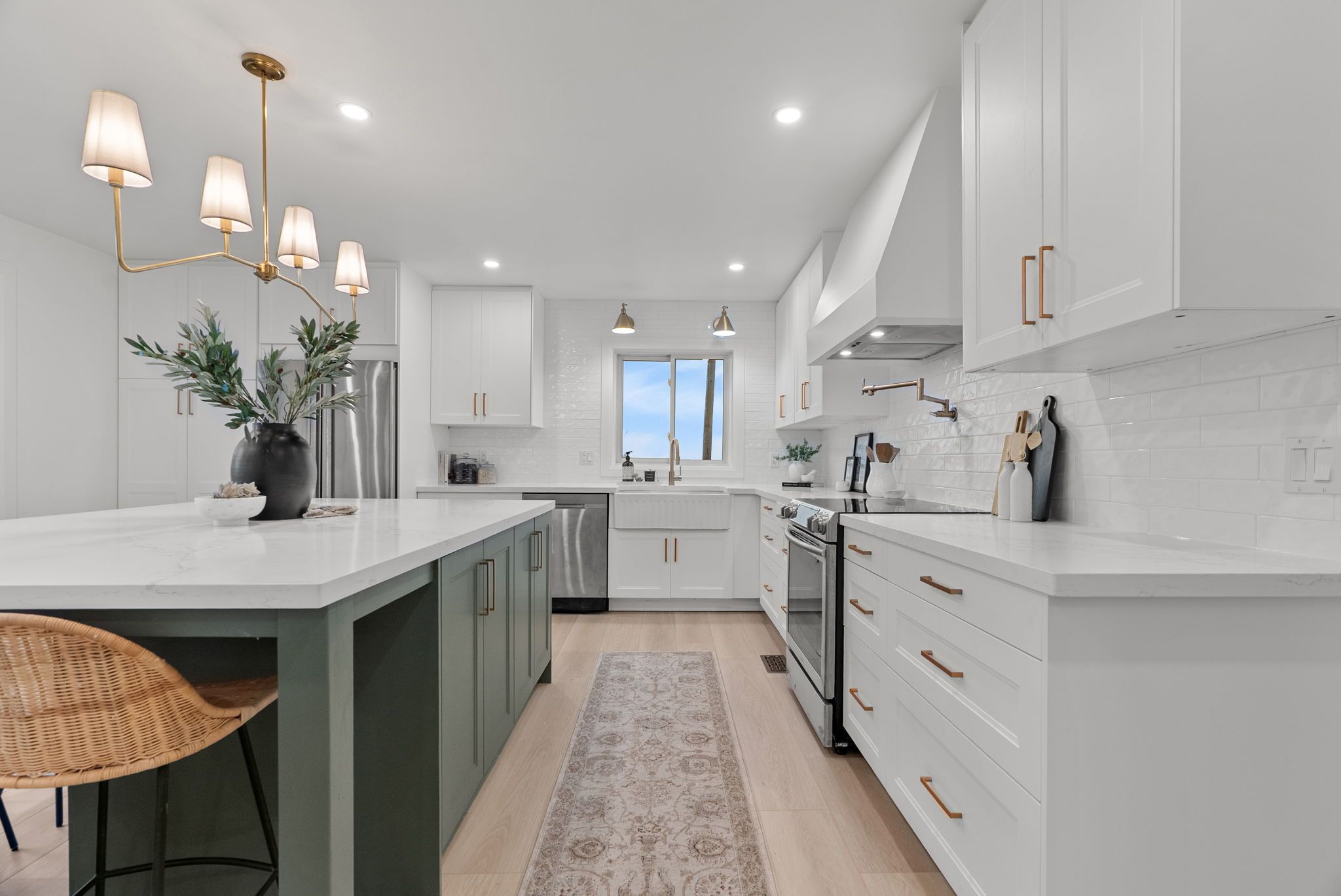 • Spacious kitchen with quartz island and access to the sunset deck.
