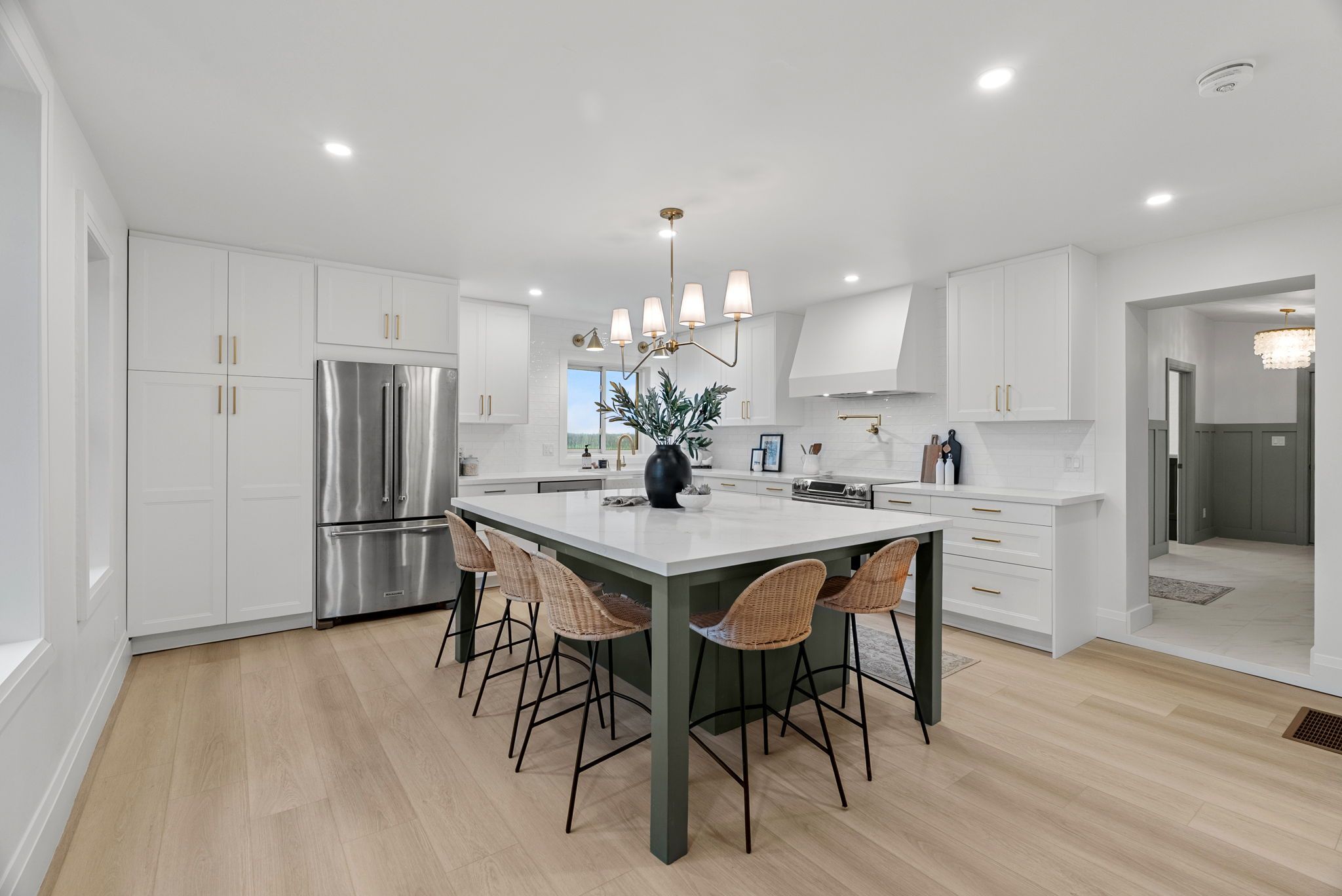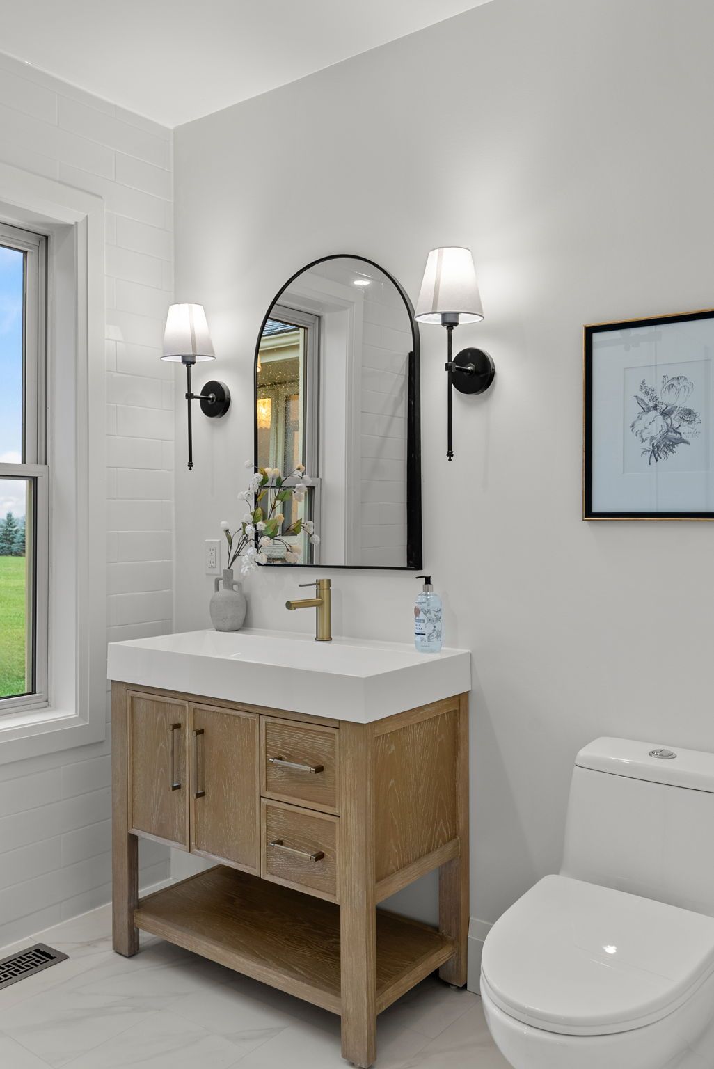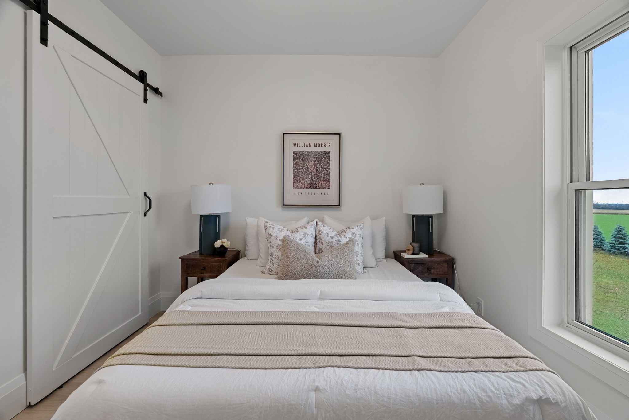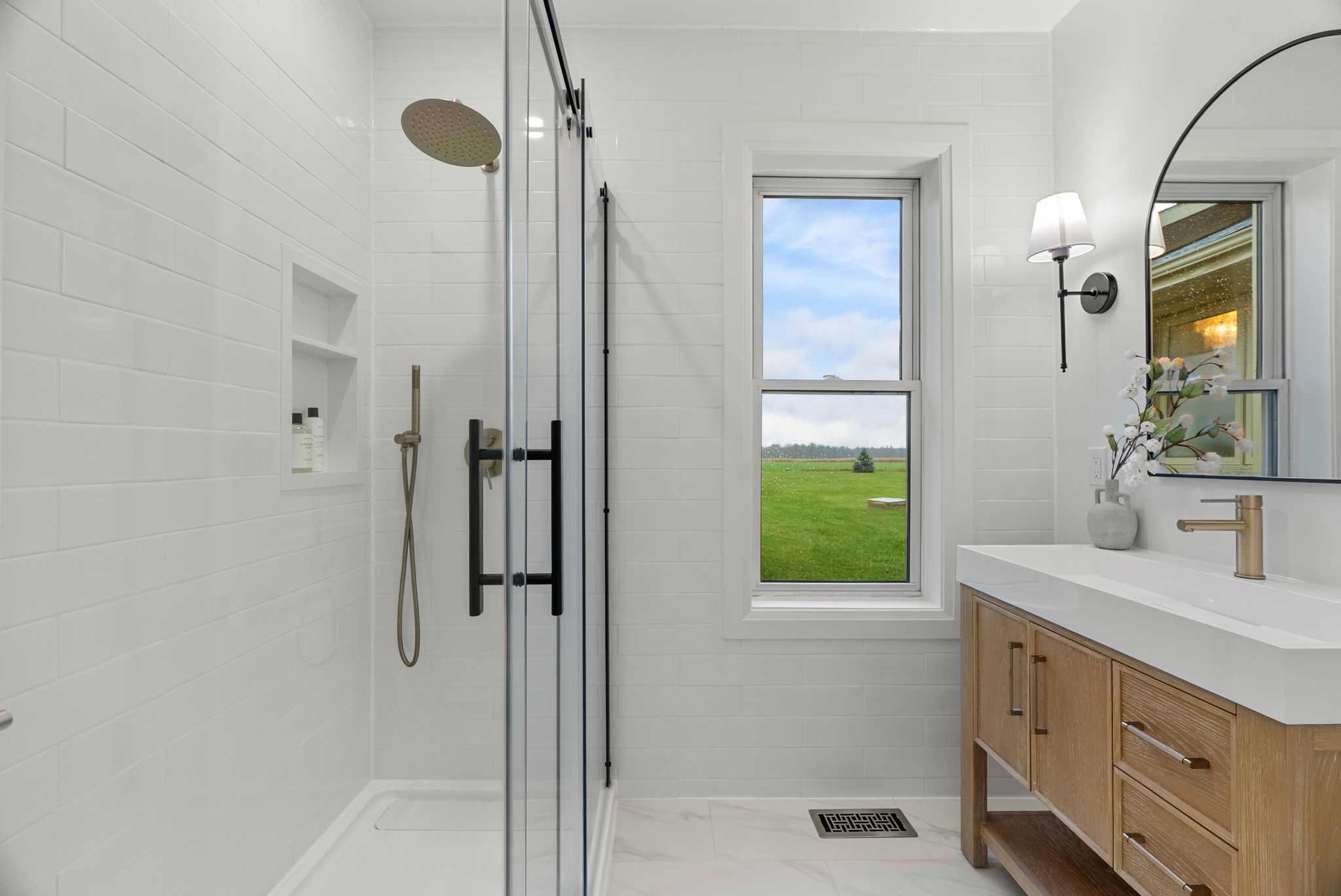Out where the nights go quiet and the sky still turns gold at dinner hour, this double yellow brick country home sits on 1. 88 acres, calm, finished, and ready for its next people. No renos. No projects. Just move in and start living. Inside, the home feels fresh and grounded. White walls, soft greens, and warm black and gold accents play off natural wood tones for that modern farmhouse feel. The kitchen is the kind that makes you want to cook again, with a massive quartz island, pot filler, and a door to the deck where you catch the sunset over the fields. Off the entry, the laundry room is both beautiful and practical, and the main floor bedroom doubles perfectly as an office. The living room opens to the kitchen so no one ever misses the game or the conversation. The bay window floods the space with golden evening light, while a tiled electric fireplace and reclaimed wood-beam mantle add cozy charm. Upstairs, the primary bedroom feels like a quiet retreat, airy, and spacious enough for a king bed and sitting area. The upper bath is the true showstopper: a full wet room with an open-concept shower and freestanding soaking tub, tiled to the ceiling and accented with gold fixtures. Both bathroom vanities feature warm wood textures, including a stunning fluted double vanity that feels straight out of a design magazine. Outside, the lifestyle speaks for itself, natural gas heat in the country, fibre internet, mature trees, and open, flat land with room for a future shop, garden, or pool. The deck is updated, water and hydro are already run outside, and the double garage with inside entry is spotless. If you've been waiting to move to the country without inheriting someone else's projects, this is the one you simply walk into and start living.