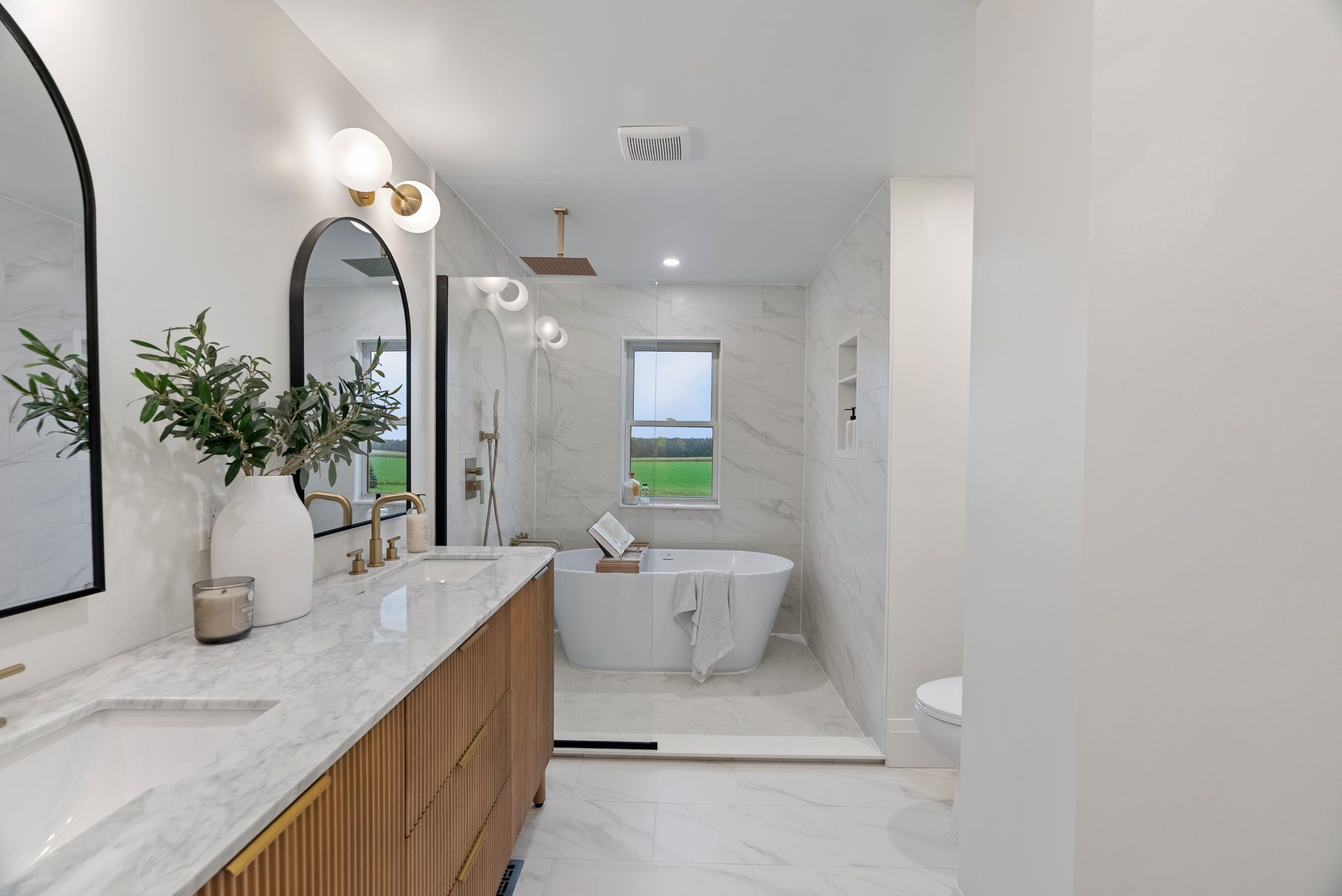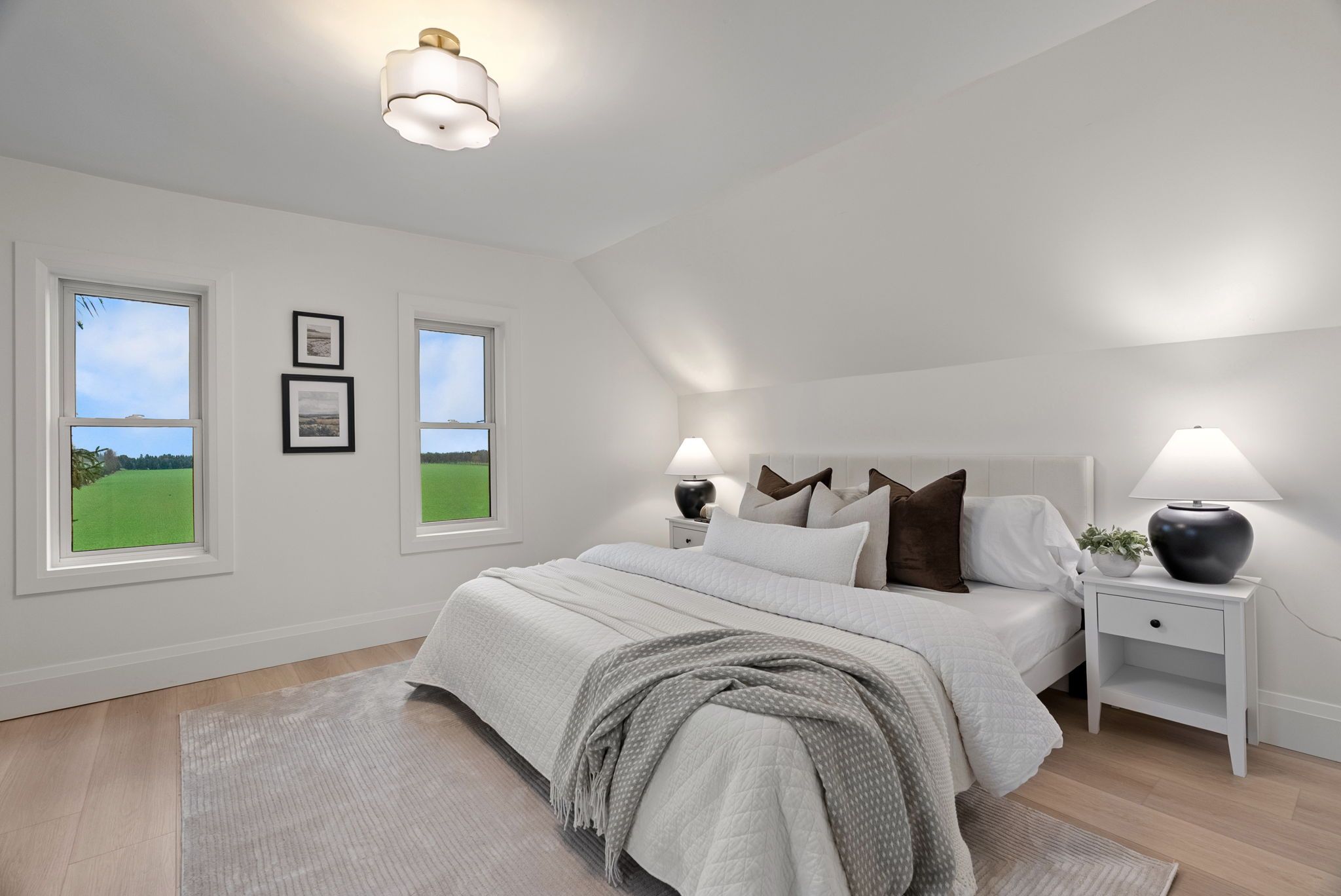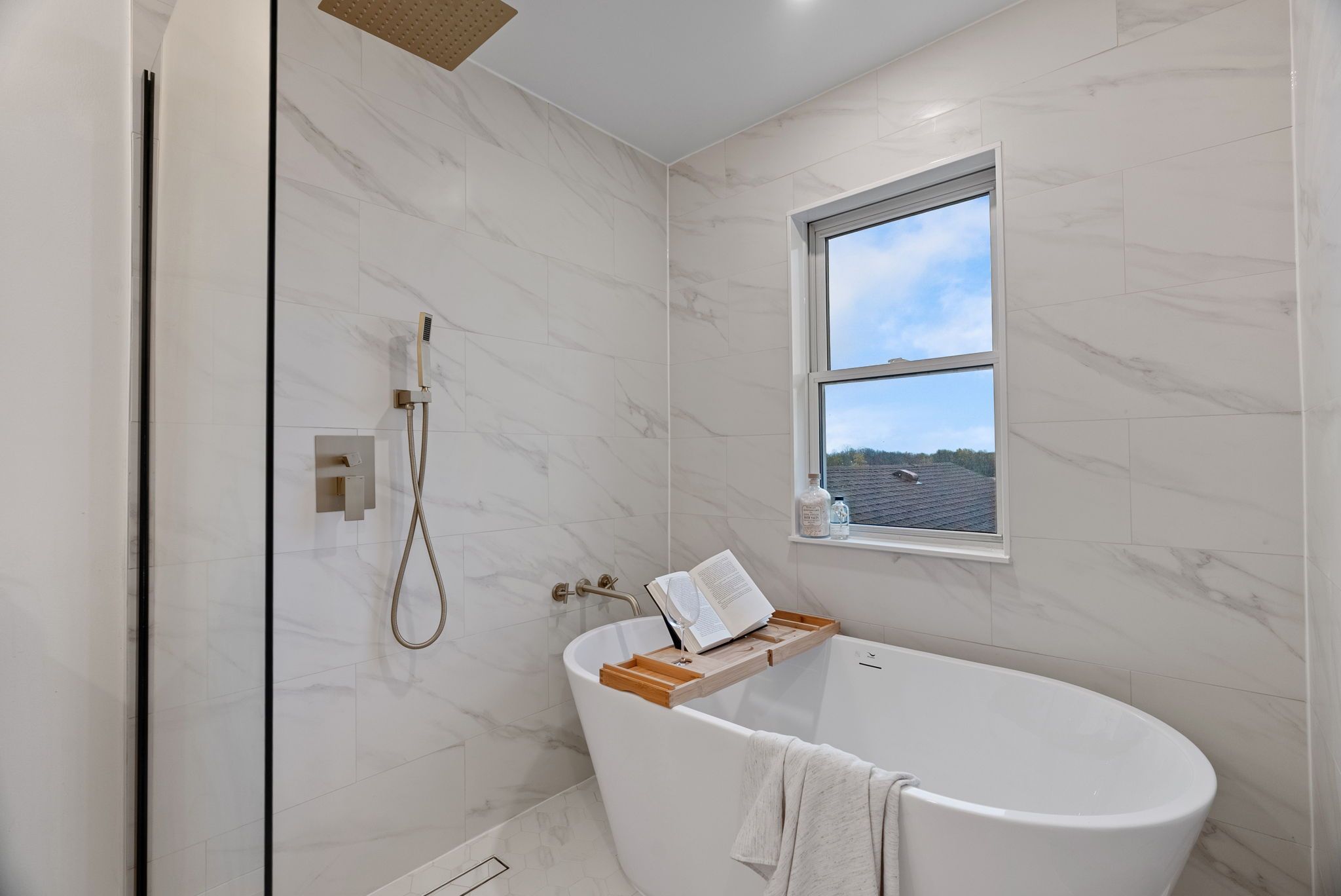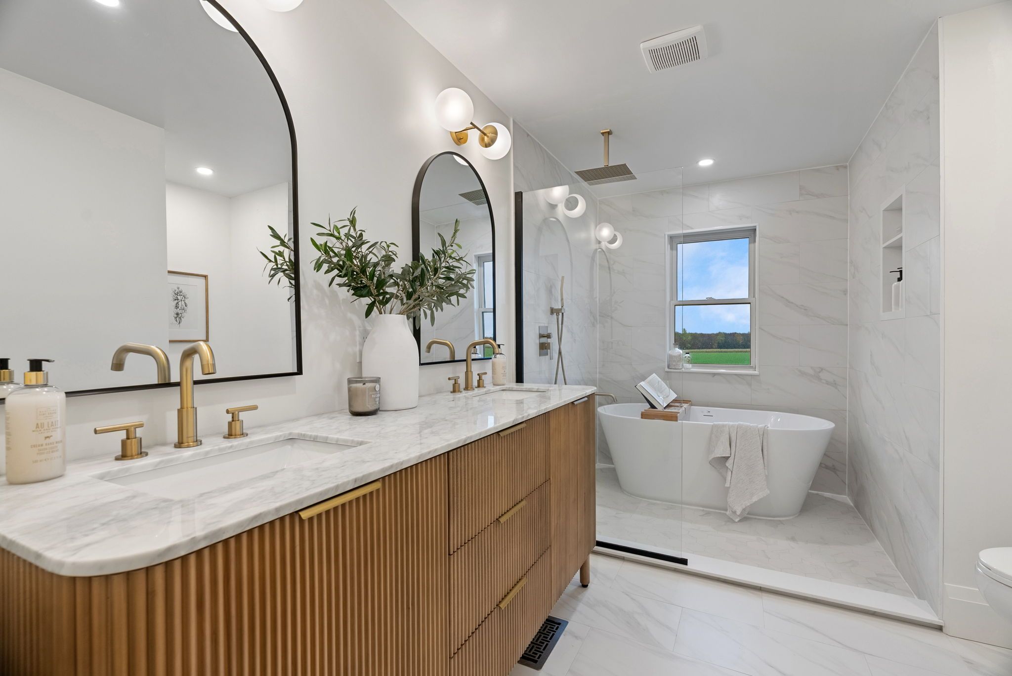 • Primary bedroom offers a serene retreat with luxurious upper bath.