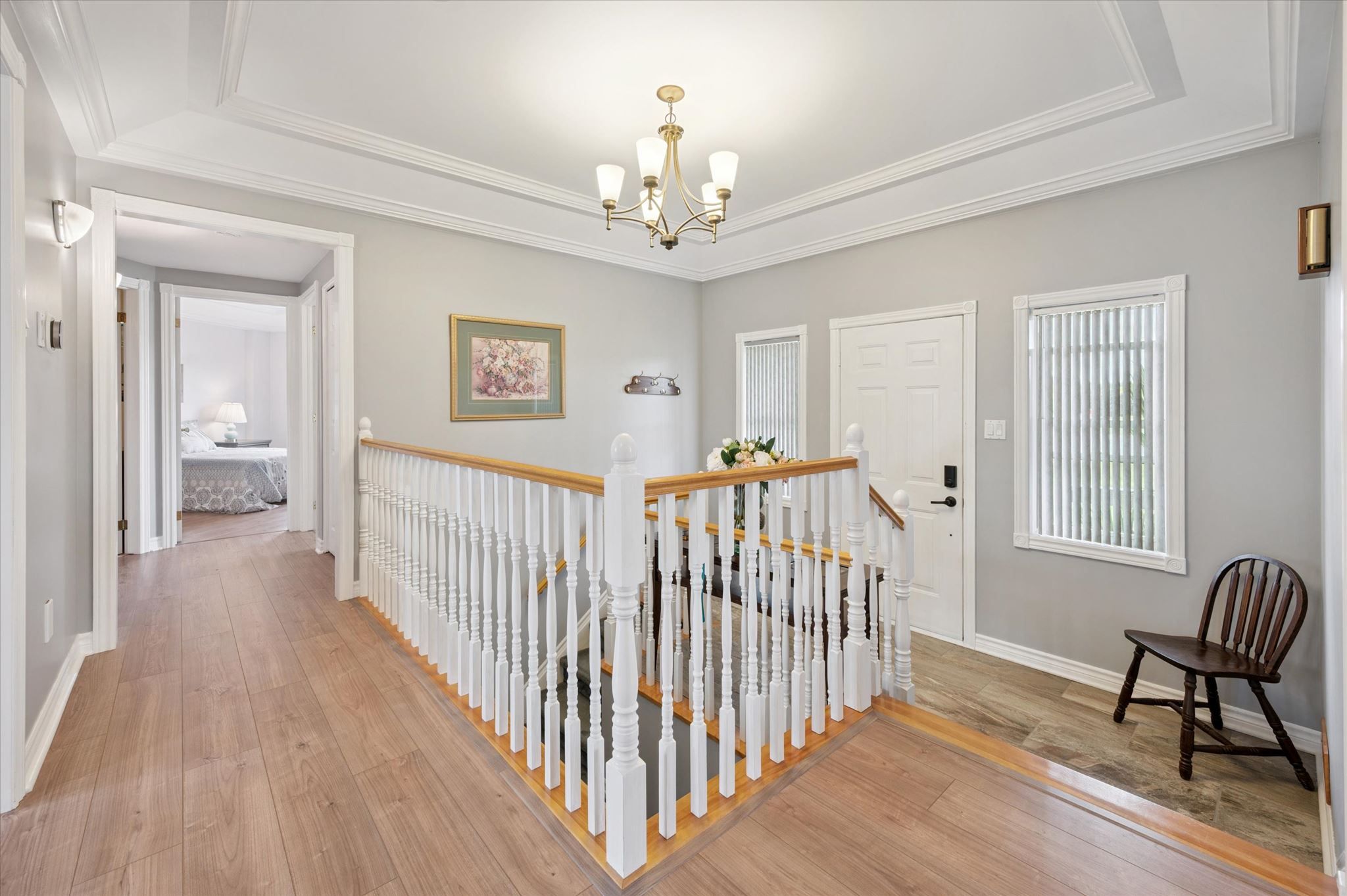 Escape to your own private oasis with this meticulously maintained, custom-built country property. A raised bungalow offering the perfect blend of rustic charm and modern convenience. Built in 2000, this home is a testament to quality craftsmanship and thoughtful design. The heart of the home is the custom-built kitchen, featuring stunning black walnut cabinetry that exudes warmth and sophistication. The breakfast area is bathed in natural light, thanks to a charming bay window, creating the perfect spot to start your day. Descend a few steps to the private primary bedroom wing, a tranquil retreat with abundant natural light and a spacious walk-in closet. The luxurious 5-piece ensuite bathroom offers a spa-like experience, providing a perfect escape at the end of the day. The grand living room serves as the central gathering place, a welcoming space for family and friends to create lasting memories. Step out onto the expansive back deck and into the backyard with a large fenced in area, where you can host barbecues, play with the kids, or simply unwind and enjoy the serene surroundings. A separate hallway on the main floor leads to two additional bedrooms and a full bathroom, providing ample space for family or guests. The lower level of this home is a versatile and expansive space, ready to be transformed to suit your needs. A large, well-equipped workshop is a hobbyist's dream, and all the equipment can be included with the property, making this a truly turn-key opportunity. Additional features include a central vacuum system for effortless cleaning, a newer furnace and air conditioning unit installed in 2025, and a well-maintained roof (15 years old with new caps installed in august 2025). The property also benefits from a 26-foot-deep well with a uv system and a water heater (2016) is a rental. This is more than just a house; it's a home where comfort, quality, and country living converge. Don't miss your chance to own this exceptional property.