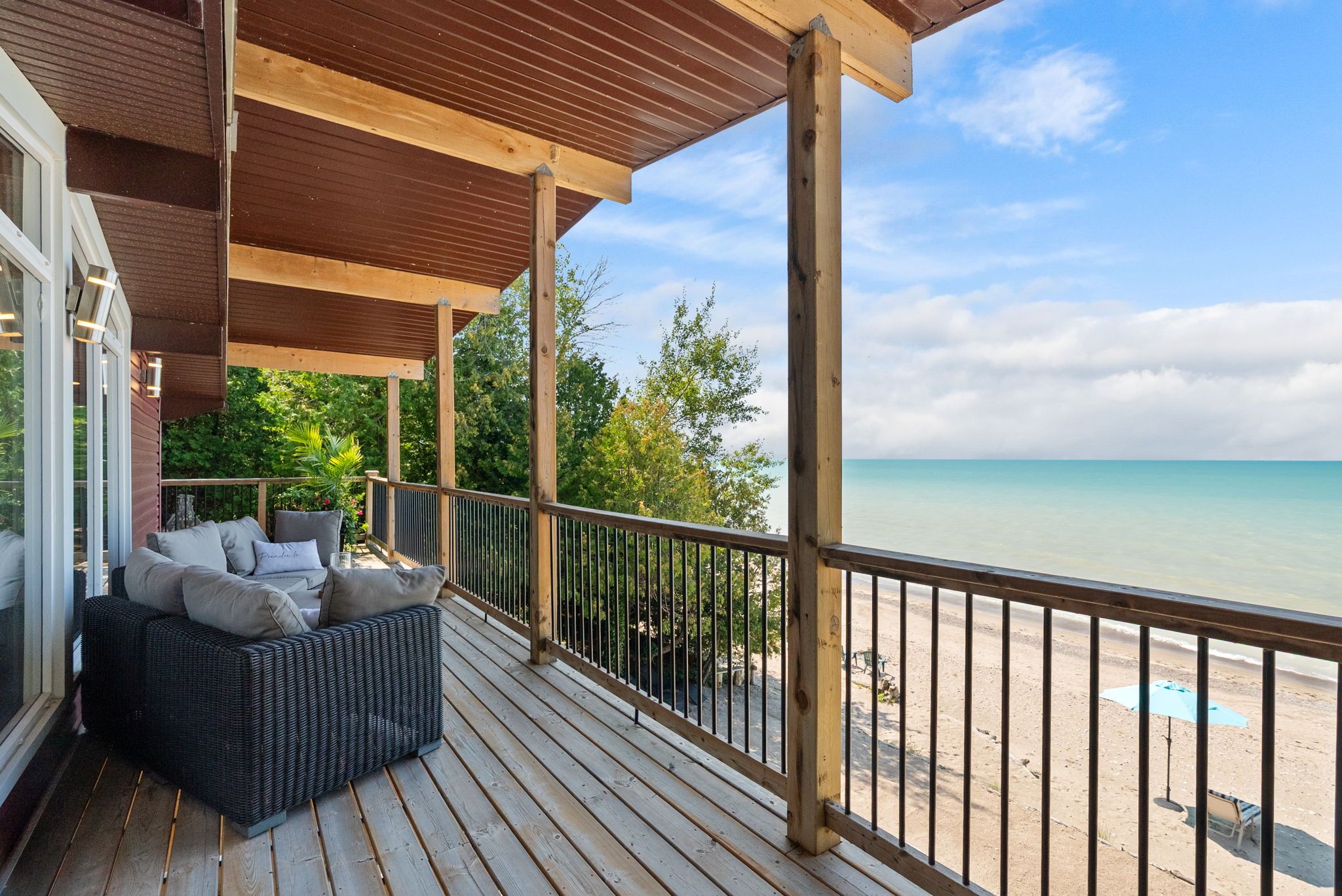 Sand, and, serenity, and sunsets-this is lake life at its finest... Hear the waves! Nestled just north of goderich in the coveted lakeland estates, this virtually lake-level cottage offers direct access to one of the area's widest, most walkable / unimpeded sandy beaches. No stairs, no cliffs-just pure shoreline magic. Step inside this bright and beautifully updated 3+bedroom, 1. 5-bath retreat and feel the charm of authentic cottage living. The open-concept kitchen and living room flow seamlessly onto a spacious lake-facing deck, while the lower level offers a second finished living area and its own panoramic deck-perfect for entertaining or unwinding with a glass of wine as the sun dips below the horizon. Features you'll love: two expansive decks with unobstructed lake views, wall of windows in the main living/dining area & lower level, new studio den (2022) and new basement bedroom (2023), wraparound decking, new staircase (2020), and armour stone landscaping, cedar outdoor rain shower on lakefront deck... It's a beauty! Private laneway to drive boat/beach gear directly to the shore, turnkey sale includes kayaks, life jackets, tv, beds, appliances, weber bbq & much more, lots of privacy with forest south and trees area on north, and very low traffic on the beach throughout all seasons, outdoor stone fireplace on separate deck overlooking own forest and lake, a great shaded area to cool down during peak summer days, new well installed in 2025. New sewage tank fully inspected by municipality and passed in 2025, metal roof with many years of life, best-in-class lake huron living with direct access to the water. Main renovation done in 2017 that included new decks, plumbing and electrical. Private driveway with parking for 3/4 cars. 21'x10' utility/storage room. Low maintenance cottage with no grass cutting, low complexity and efficient water/sewage/heating system! Unbeatable value-priced below comparable 'on bluff' resales and leading its category in the area!