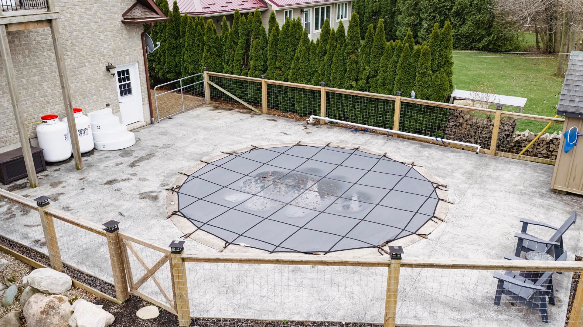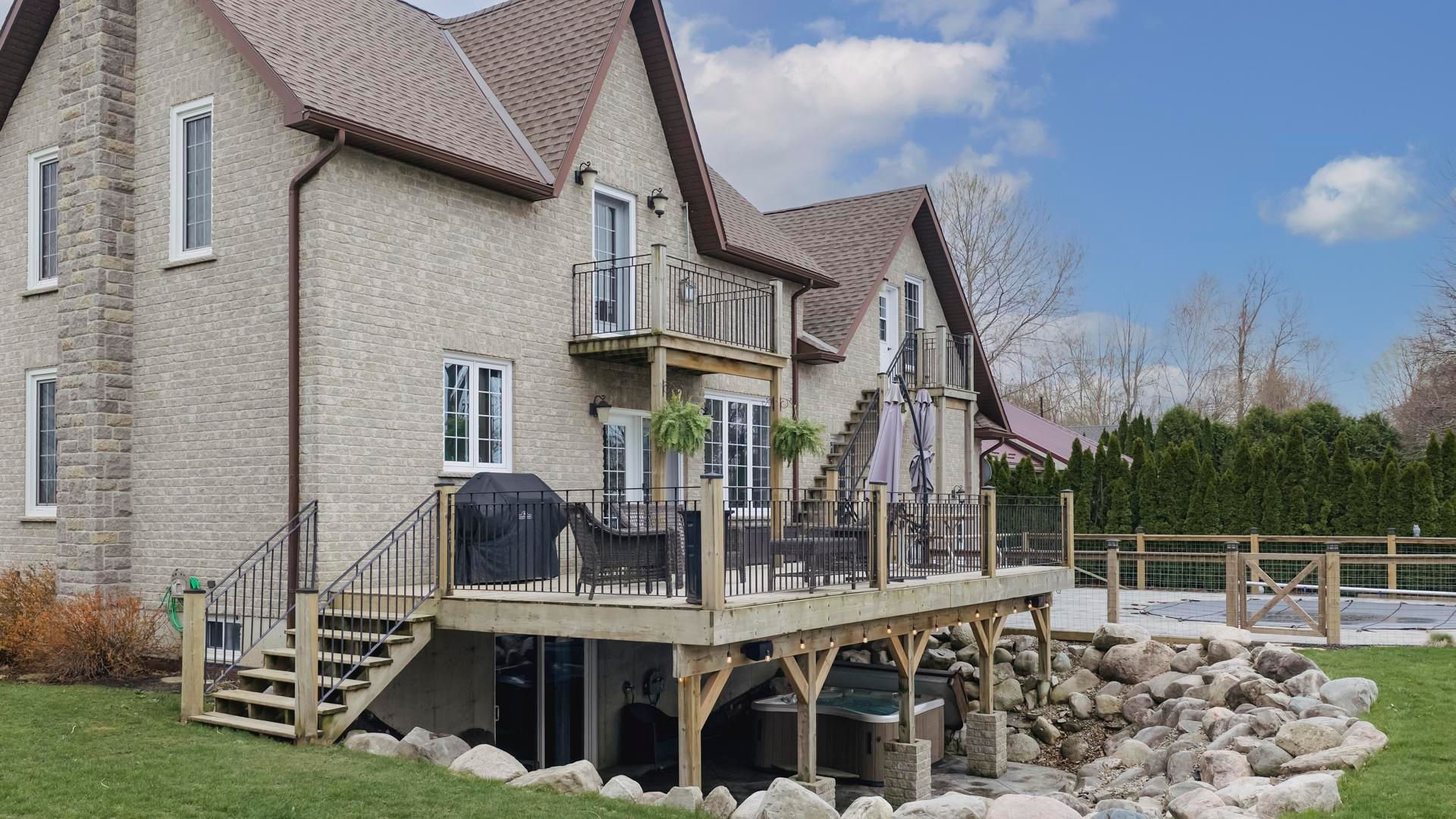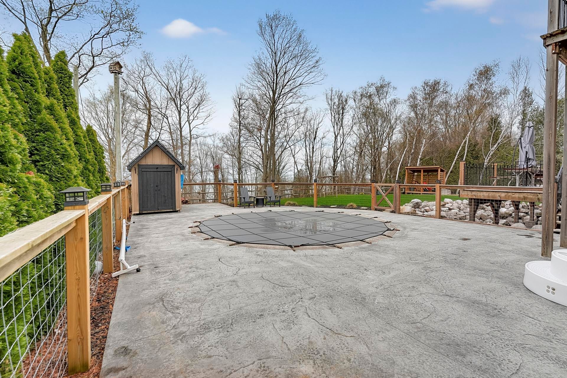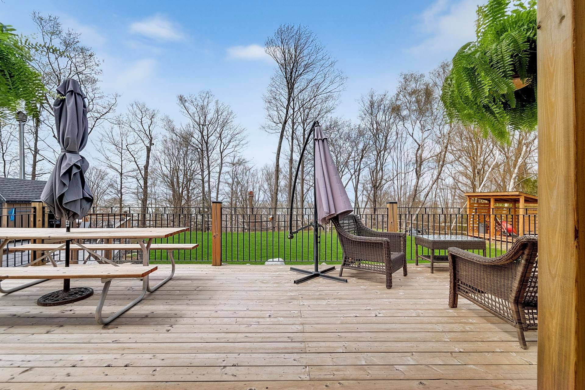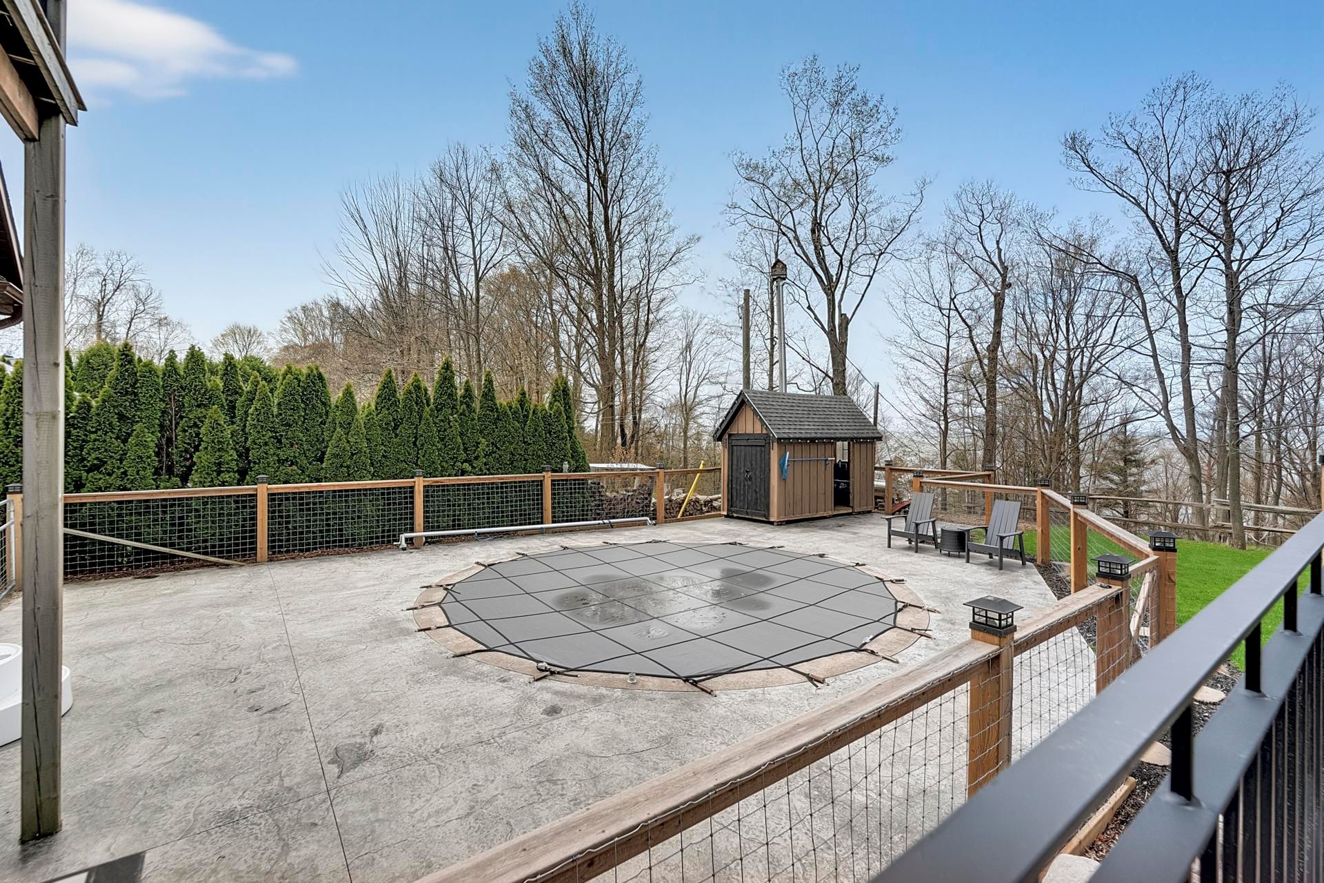 • Elevated deck overlooks the pool, perfect for outdoor relaxation.