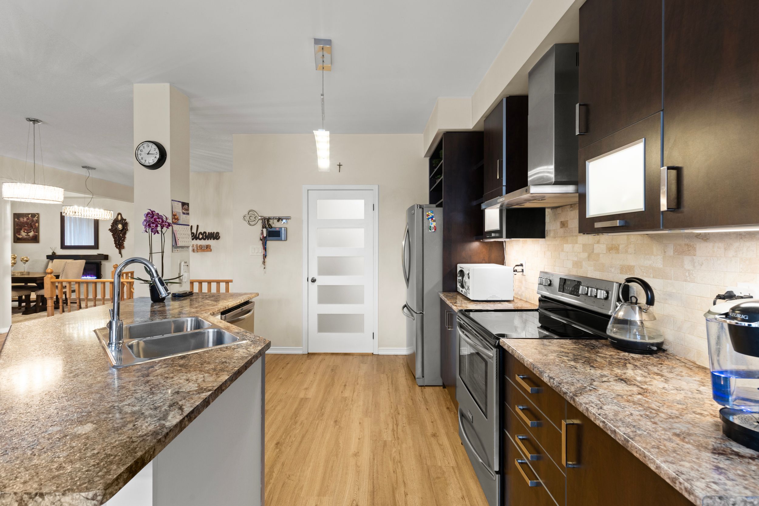 Rare 3-bedroom bungalow on a premium 49-ft lot - a true find. Meticulously maintained with storybook grounds featuring perennial gardens, tranquil water features, vine-covered canopies, and a dedicated bbq area - perfect for entertaining. The home offers a bright, open-concept kitchen and living space, with a patio walk-out from the breakfast nook to a spacious deck and gazebo. Enjoy oversized windows, a functional 2+1 bedroom layout, three full baths, main-floor laundry, and an attached two-car garage. The fully finished basement (2024) features a large recreation room ideal for family gatherings or entertaining, along with flexible space for a gym, theatre, office, or games area. A luxurious basement bathroom adds a spa-like touch, while the purifying water treatment system provides fresh, drink-from-the-tap water. Ideally located in a growing community, just steps to schools, parks, and shopping - and only 5 minutes to the qew.