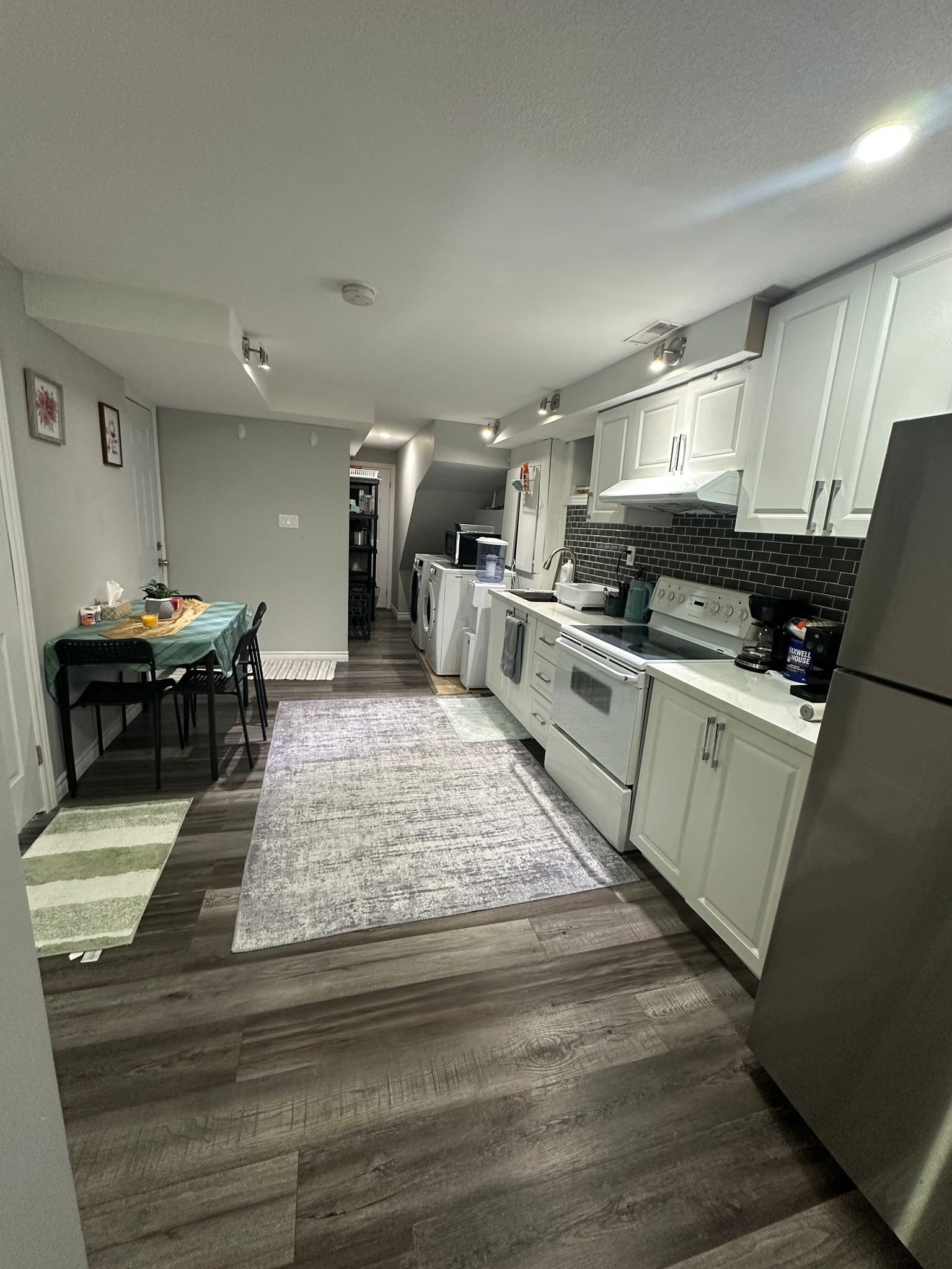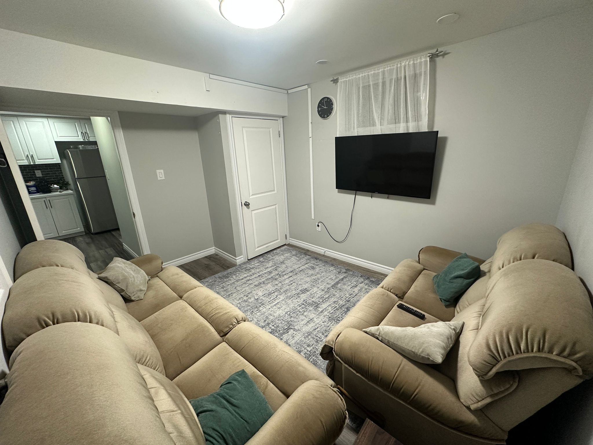 Brand new, fully upgraded furnished basement apartment with a separate entrance, ready for lease! Features a newly built kitchen, washroom, and in-unit laundry. The unit comes furnished with very well-maintained furniture. Flexible layout: can be used as 2 bedrooms or 1 bedroom 1 living room, depending on your needs. Perfect for aaa students or a small family looking for a fresh, comfortable living space.