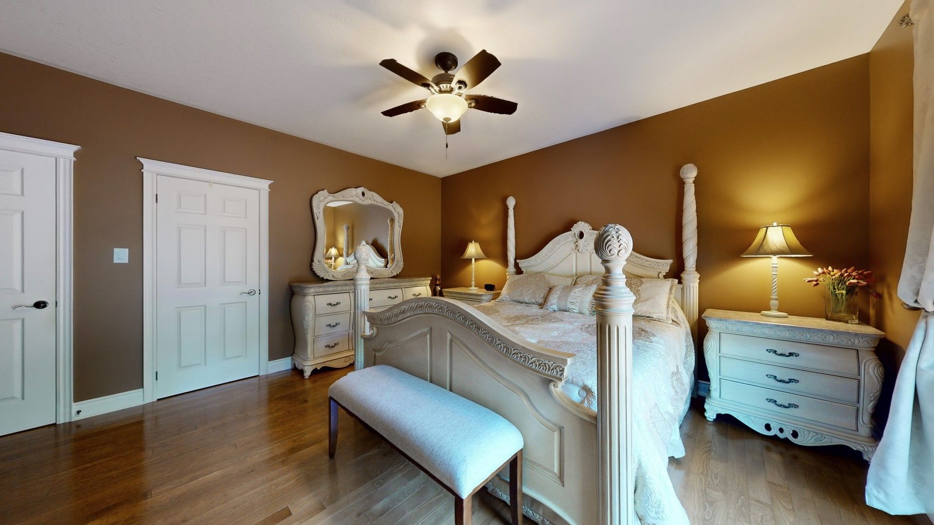 • Master suite offers walk-in closets and a luxurious ensuite bathroom.