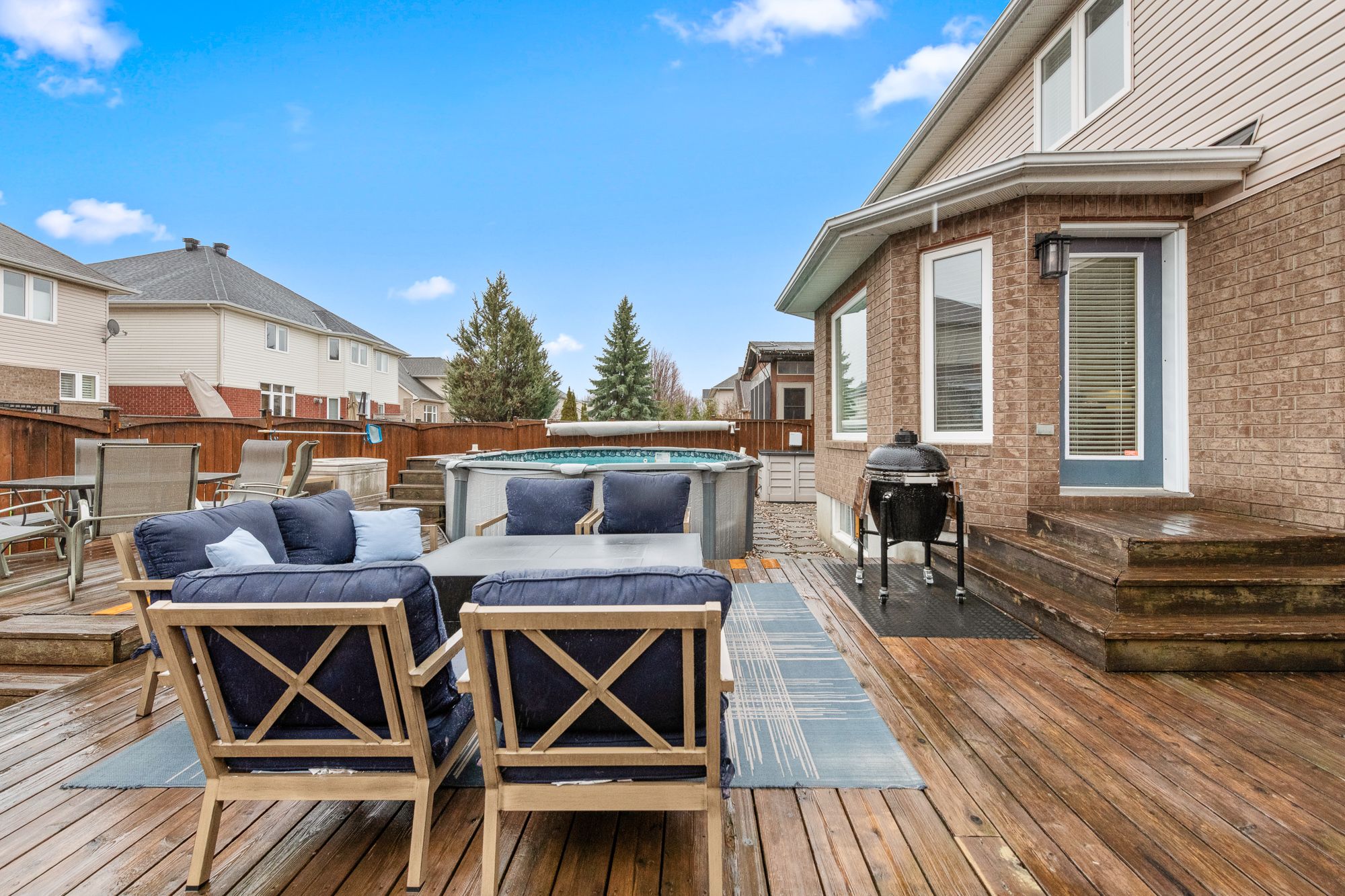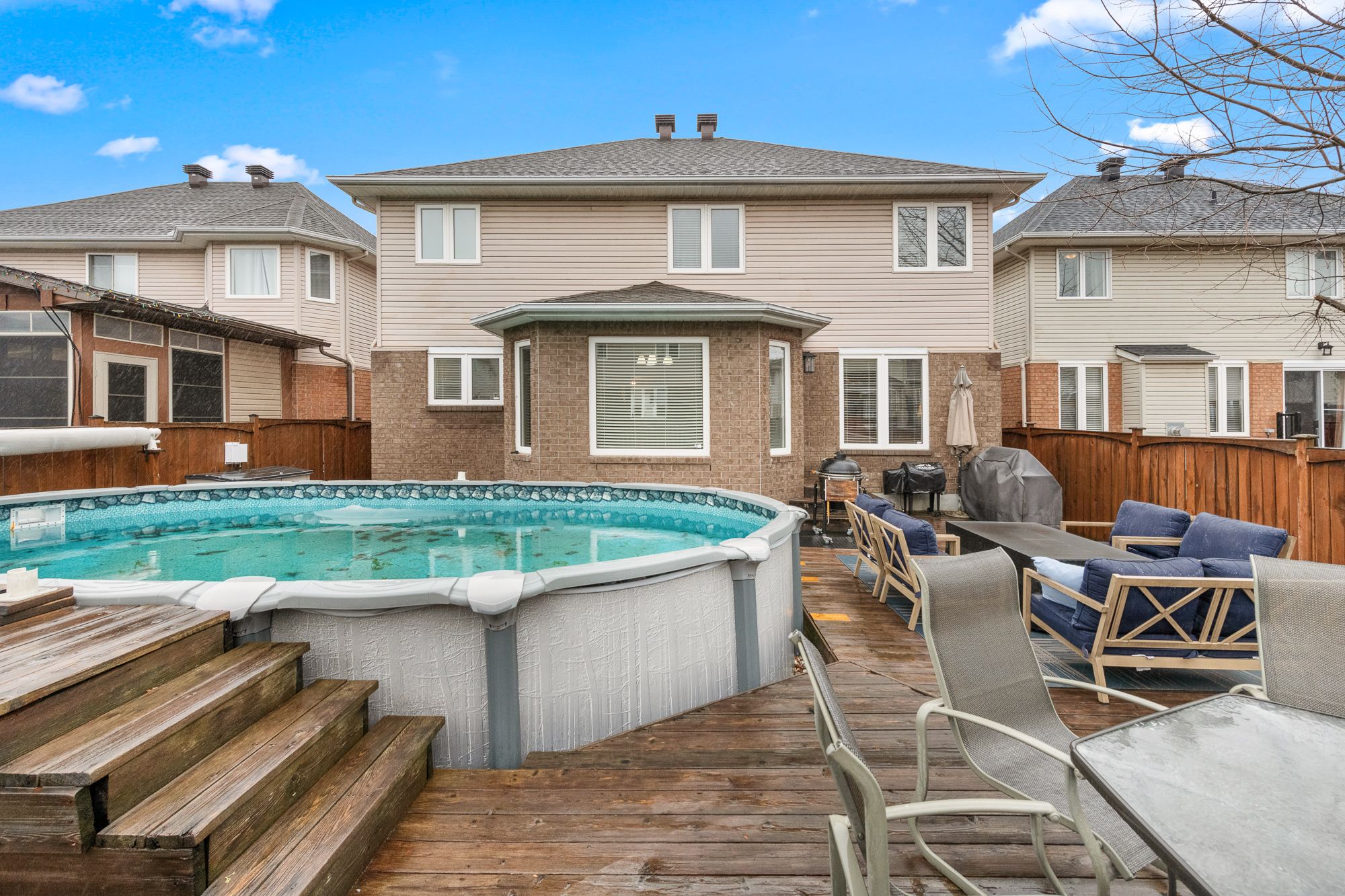 • Private backyard oasis featuring multiple decks and a saltwater pool.