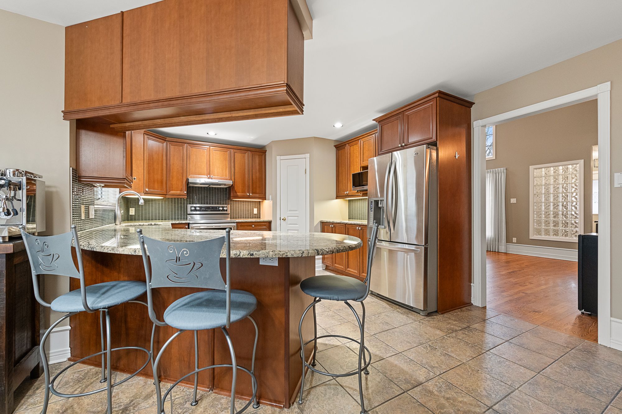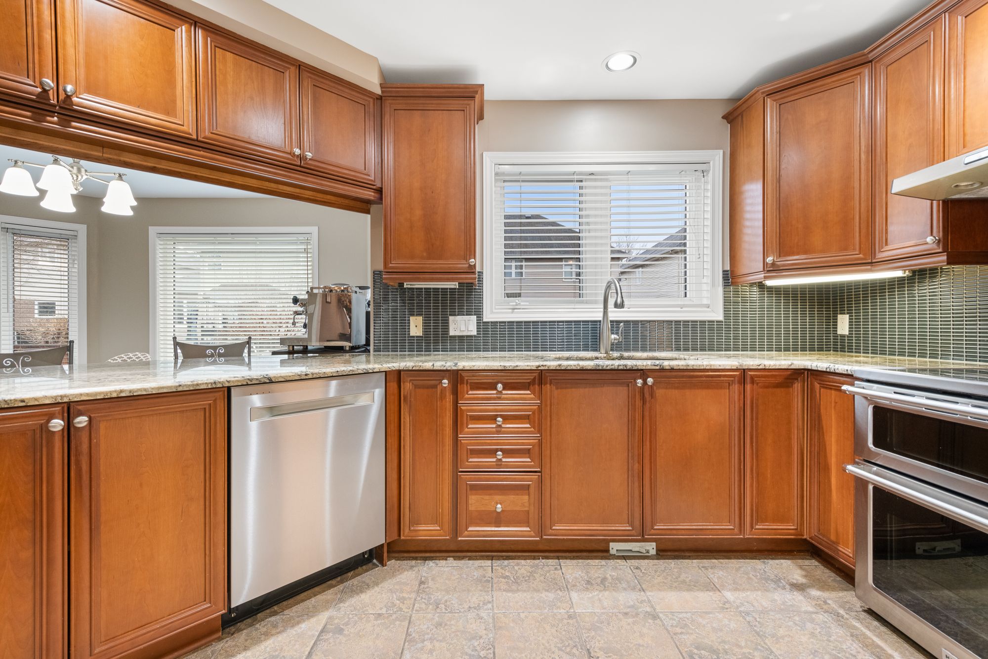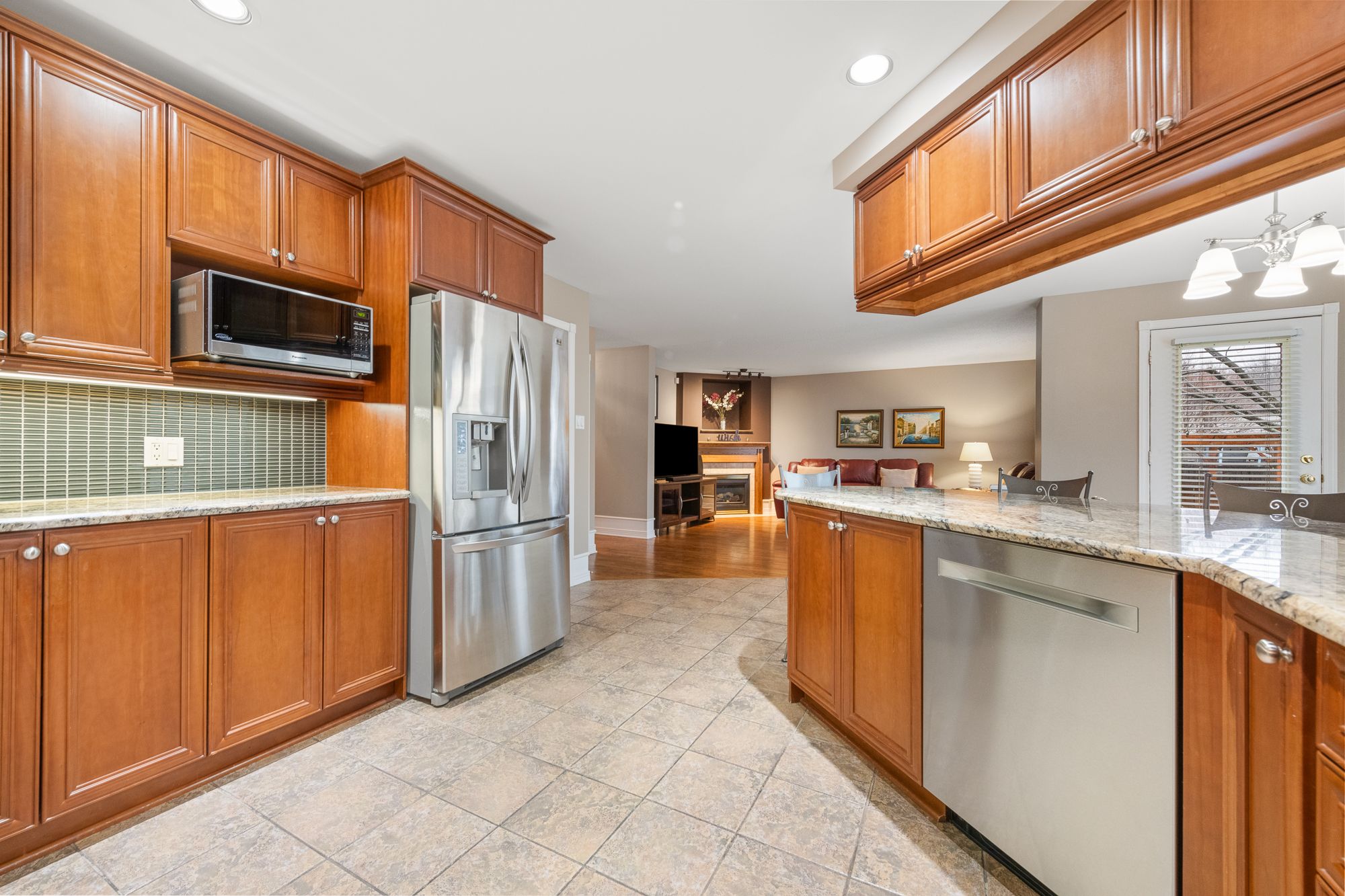 • Open concept kitchen with ample counter space and a bright breakfast area.