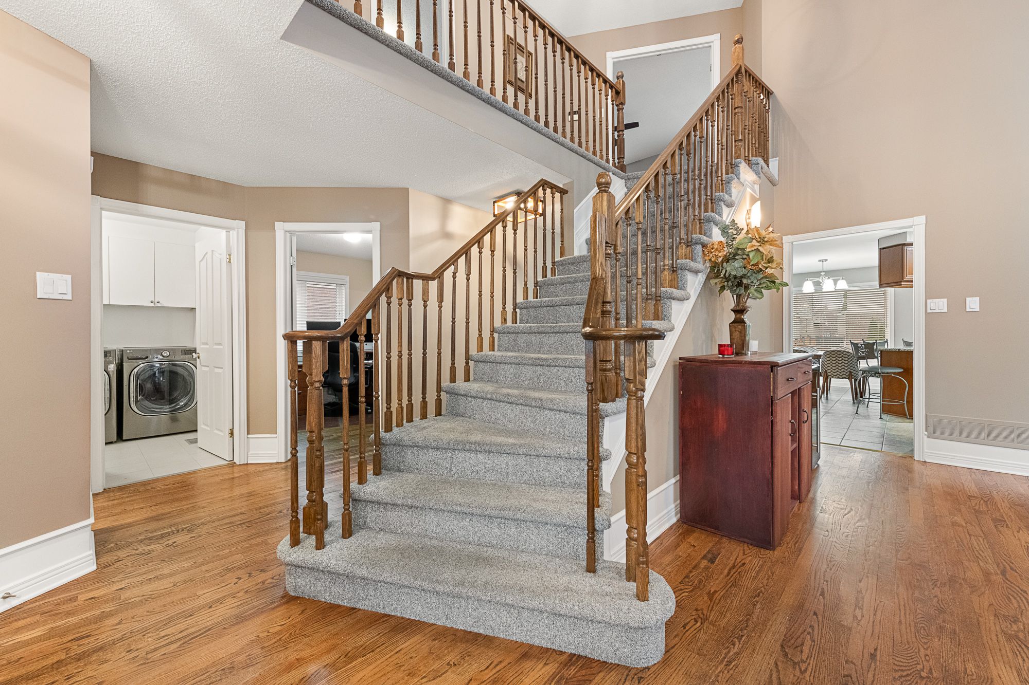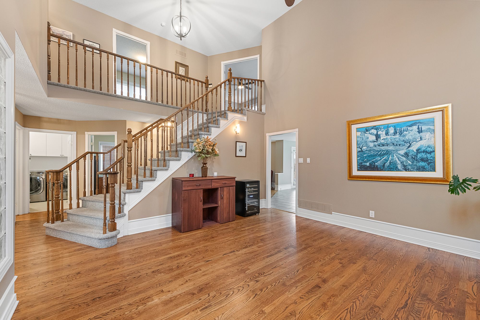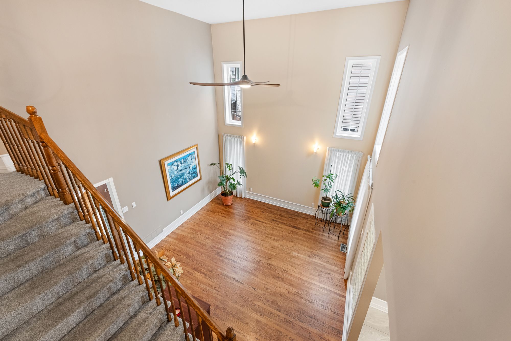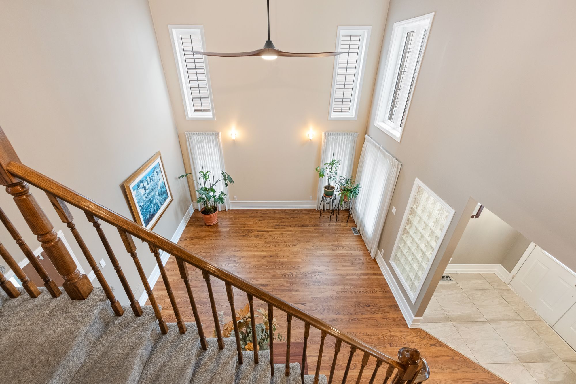 • Sun-filled dining room with high ceilings perfect for gatherings.