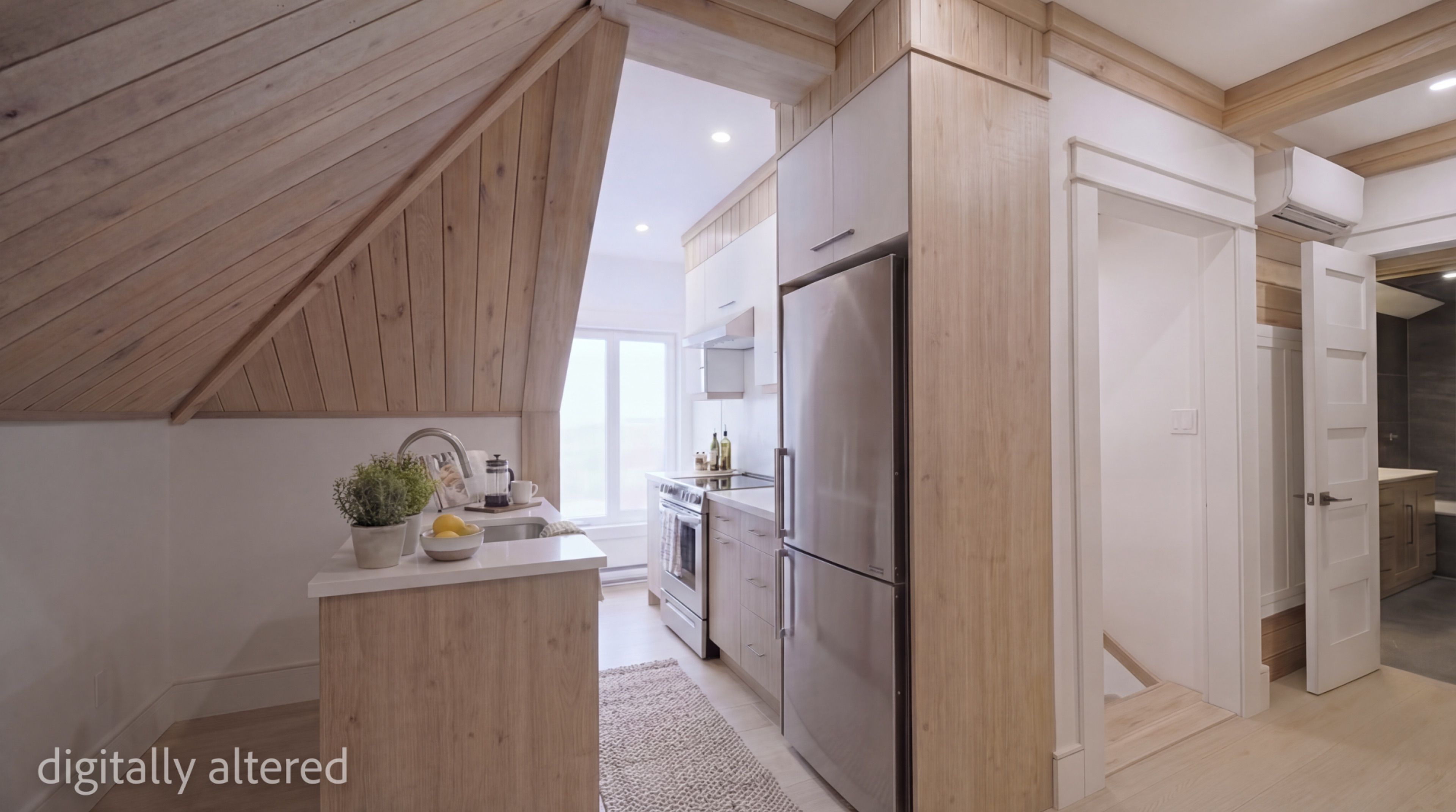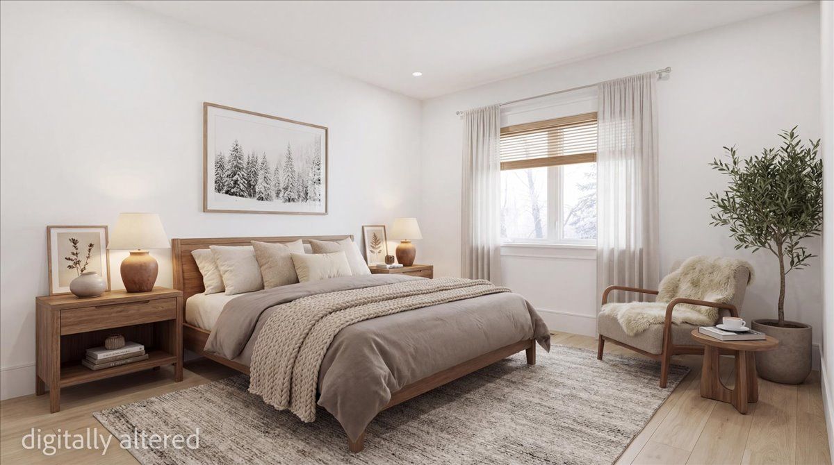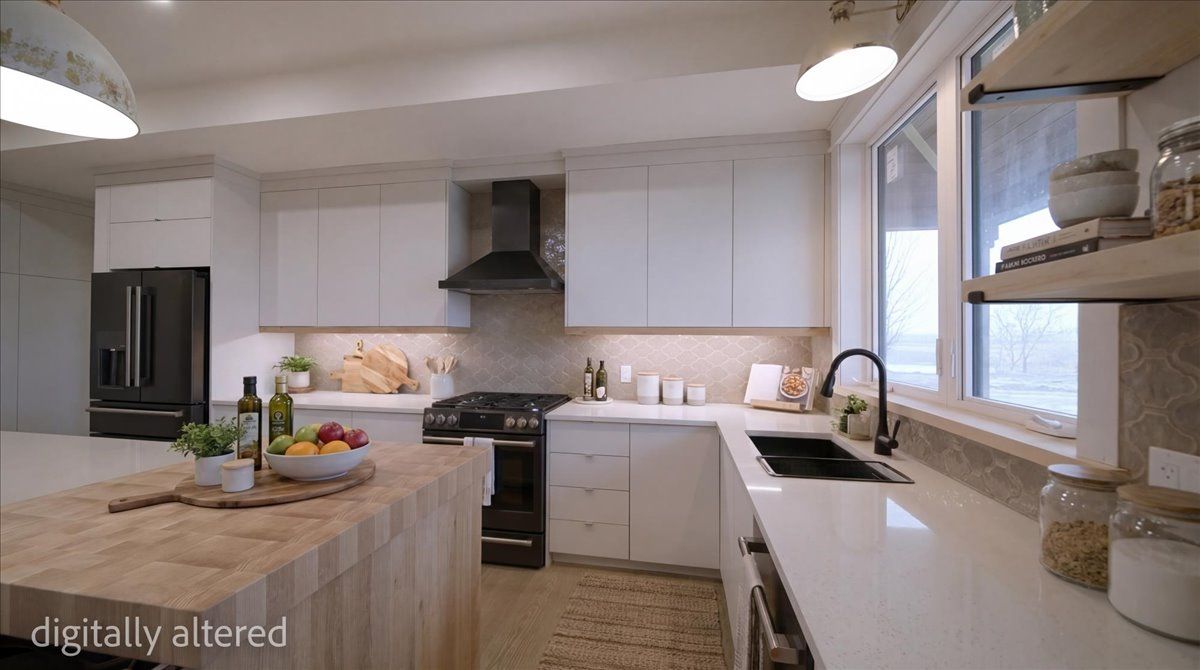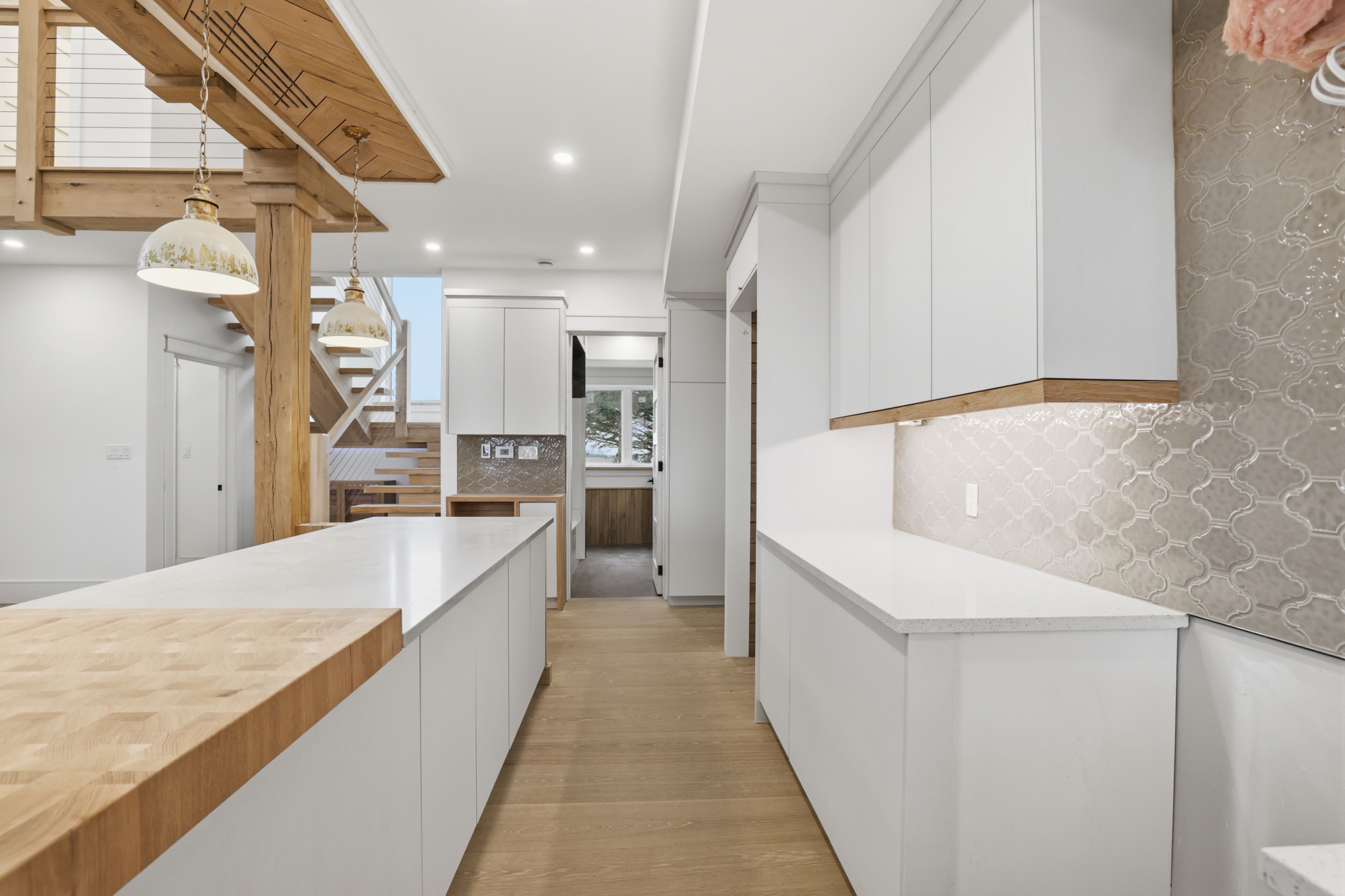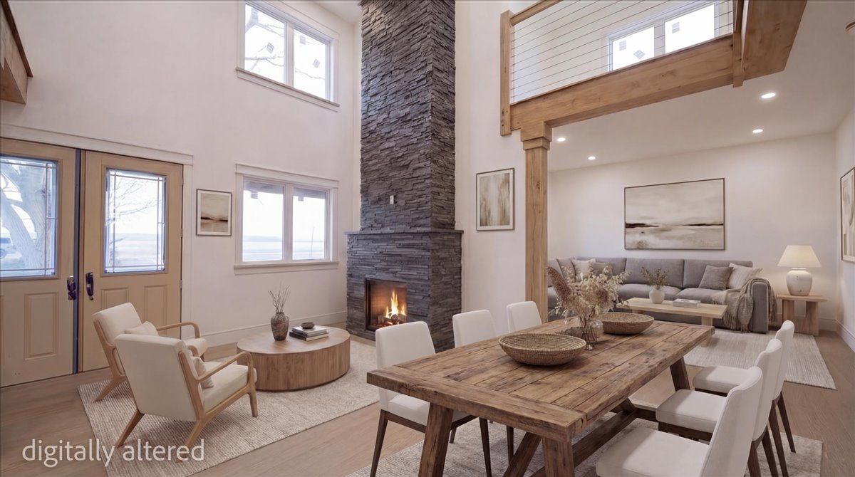 • Modern farmhouse style with a Scandinavian-inspired interior design.