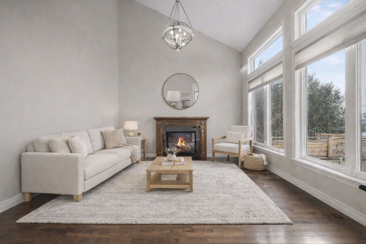 • Bright family room with vaulted ceilings and cozy gas fireplace.