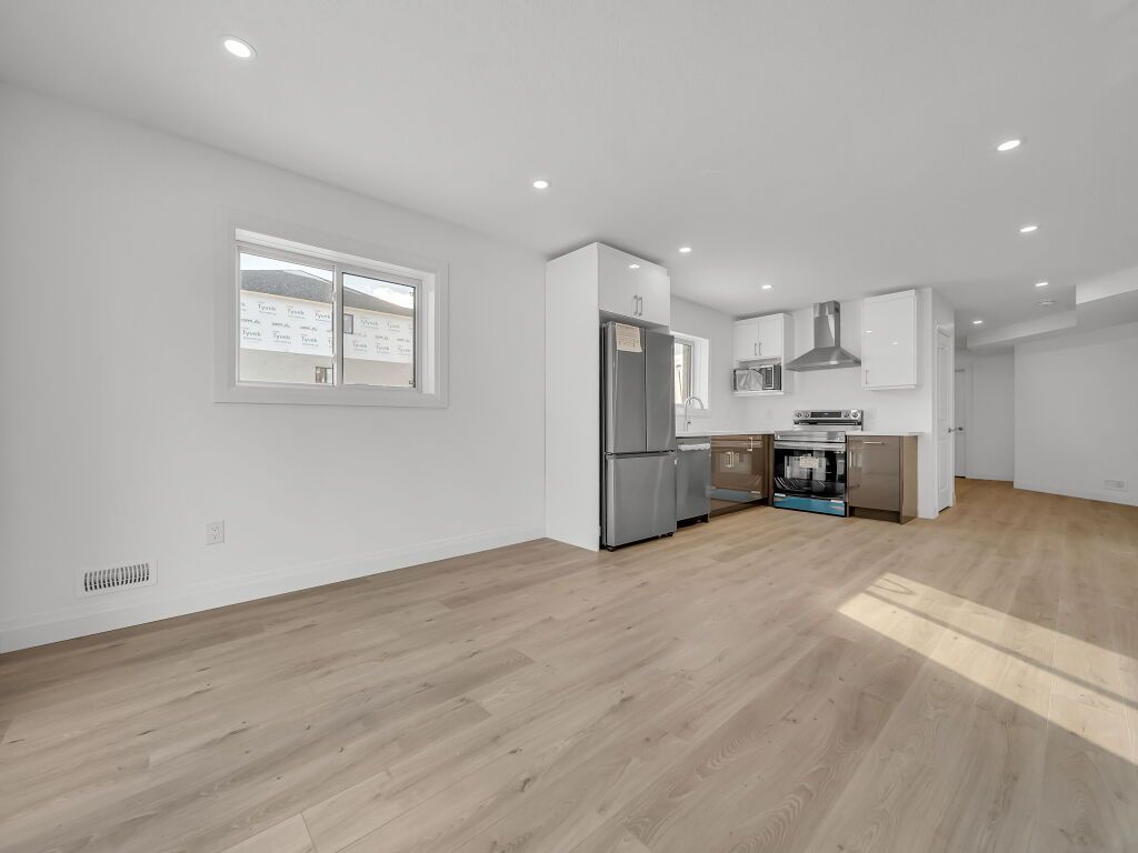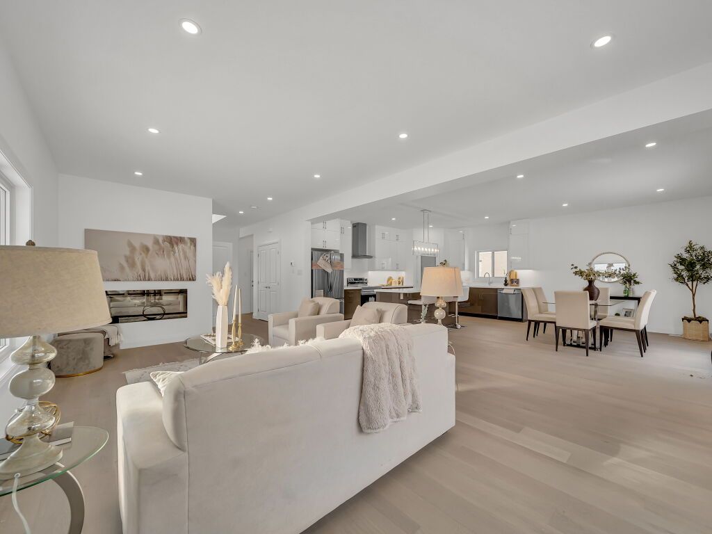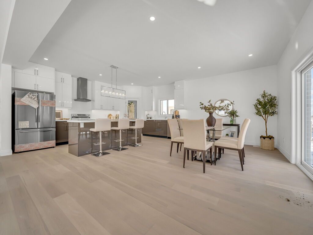 • Spacious main floor features high ceilings and modern engineered hardwood.