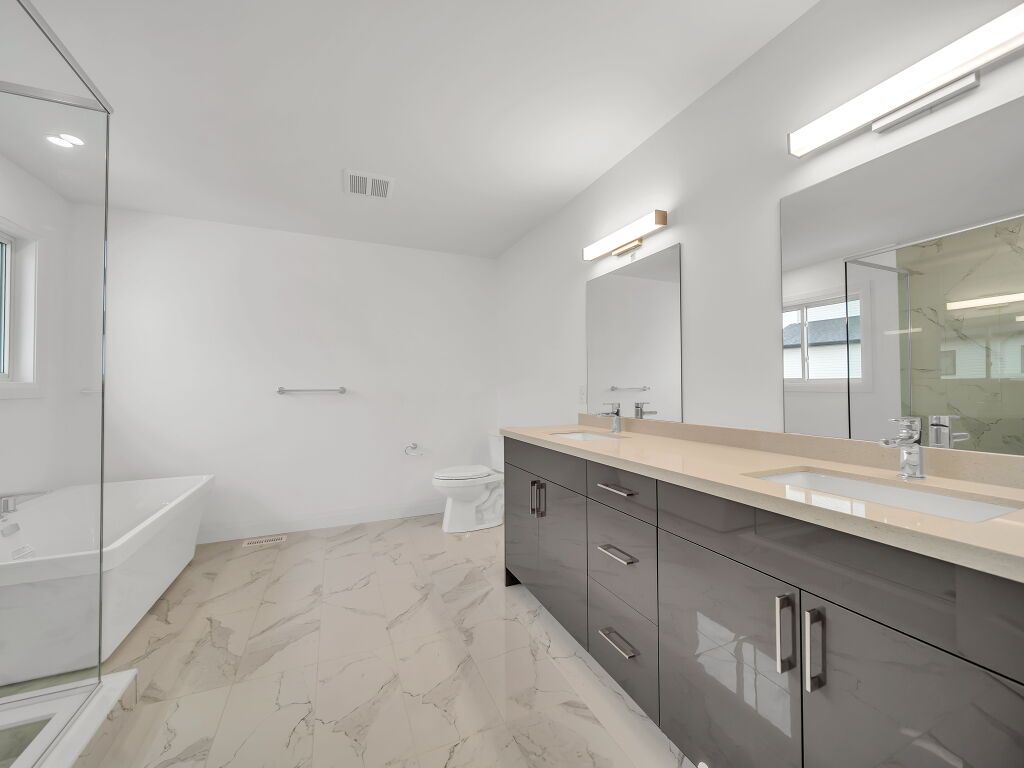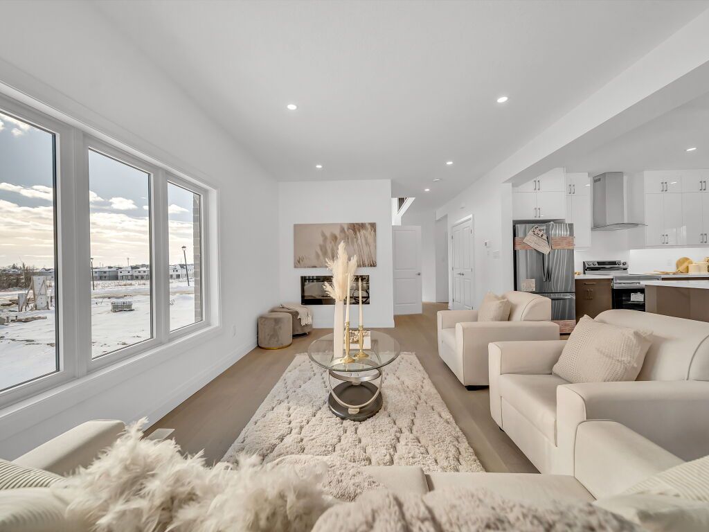 Simply gorgeous brand new home premium walk-out lot: fronting onto new big park & backing onto natural green space**no homes @ back or front** fully loaded (@a top & most sought after area in london). Grand 4 bedroom model with 2 master bedrooms (1 with 5pc luxury ensuite) 2nd with 3pc, bedroom 3 & 4 have shared 4 pc semi-ensuite (jack & jill). 9 ft california ceilings on main floor, quartz counters throughout, wide engineered hardwood floor, extended big modern kitchen with custom cabinets, eat in kitchen w/breakfast island, pantry, dining area adjoining kitchen, electric fireplace, washrooms with quartz counters & high quality cabinetry, single lever faucets & glass shower as per plan, high quality tiles, designer lighting fixtures, valance lighting in kitchen, pot lights, decora switches, rough-in for all major appliances, black windows, garage drywalled and taped roll-up insulated garage doors, separate entrance & oversized basement windows(4/ x 3'). 5 mins off hwy 401, 10 mins to d/t london, costco, western university, fanshawe college, new future vw electric car plant, big amazon location & international airport. **note: pictures are from builder's previously built different model. Other models & lots also available.**
