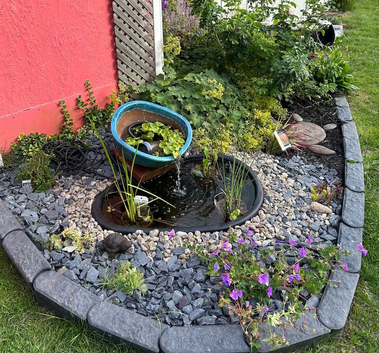 • Deep backyard features sheds and a water fountain for relaxation.