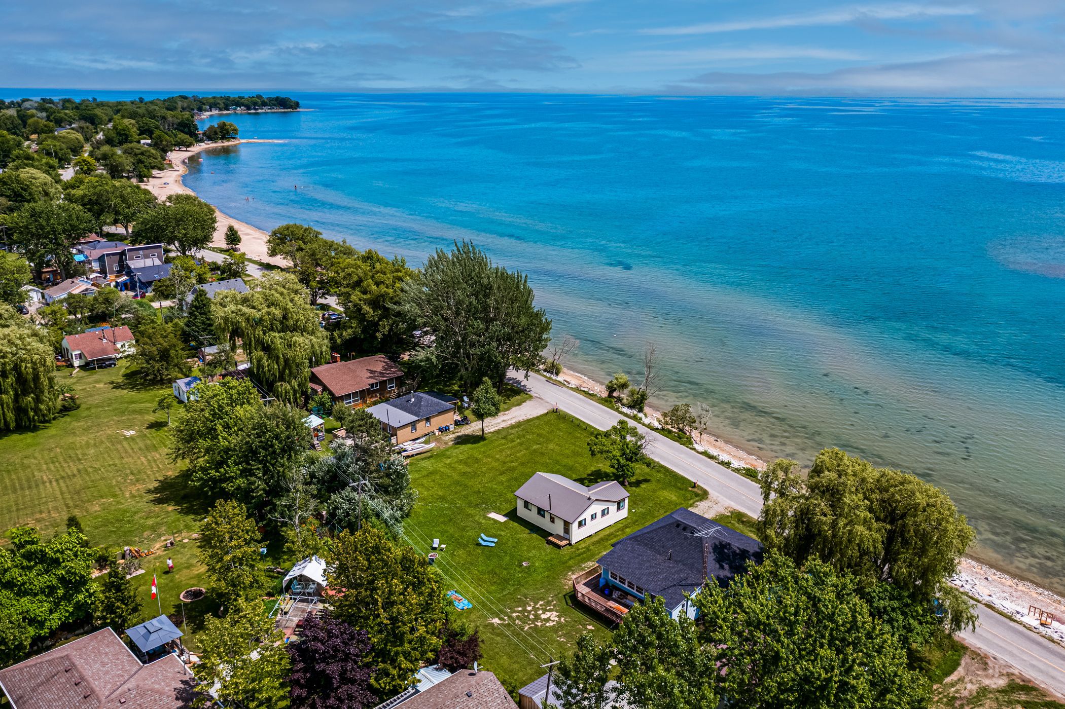 The best property along lakeshore rd for many miles! Great view of lake erie! Double-width lot(non-severable) only one building allowed on the site. Very good drilled well, but non-potable. Very good septic tank (visible) & septic bed under the vacant lot. Township maintains the road & hence the rocks on the shores side of it. This cottage bears no cost for shore erosion! Cottage is set up and back from the lake so it's more protected from storms than others in the area. Seasonably rentable until you are ready to build your retirement dream home! Immediate possession is possible. Rmsz approx.