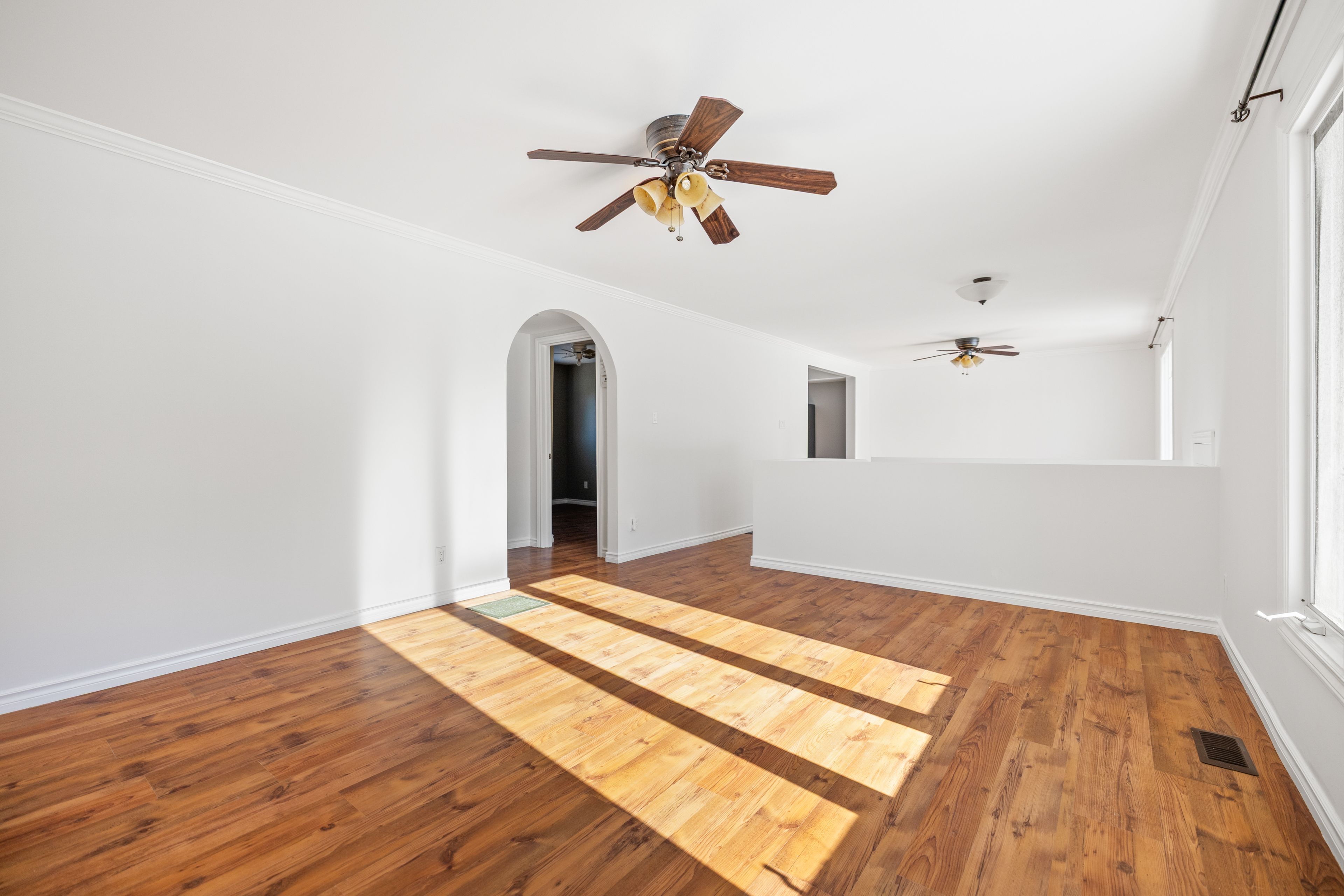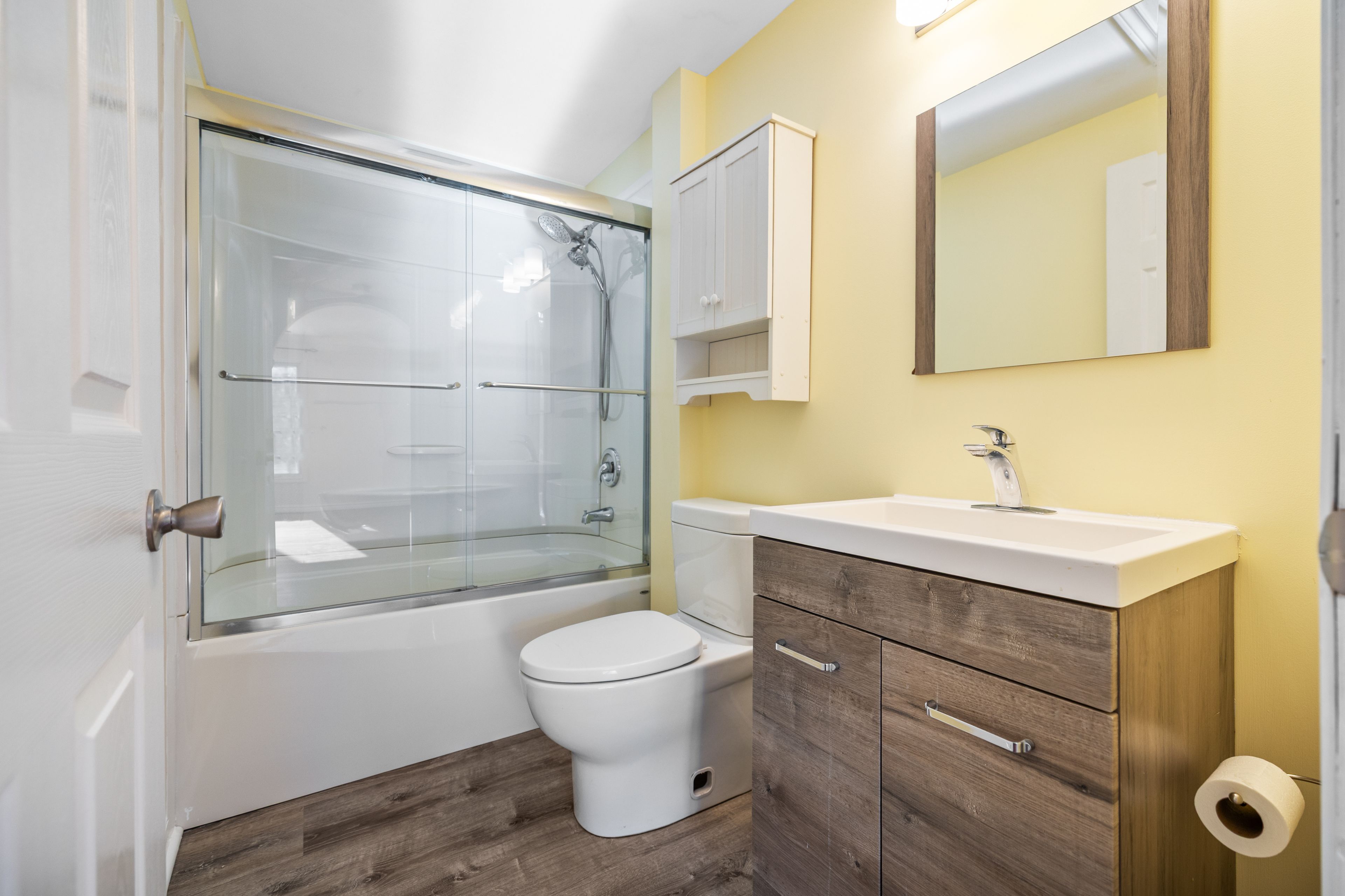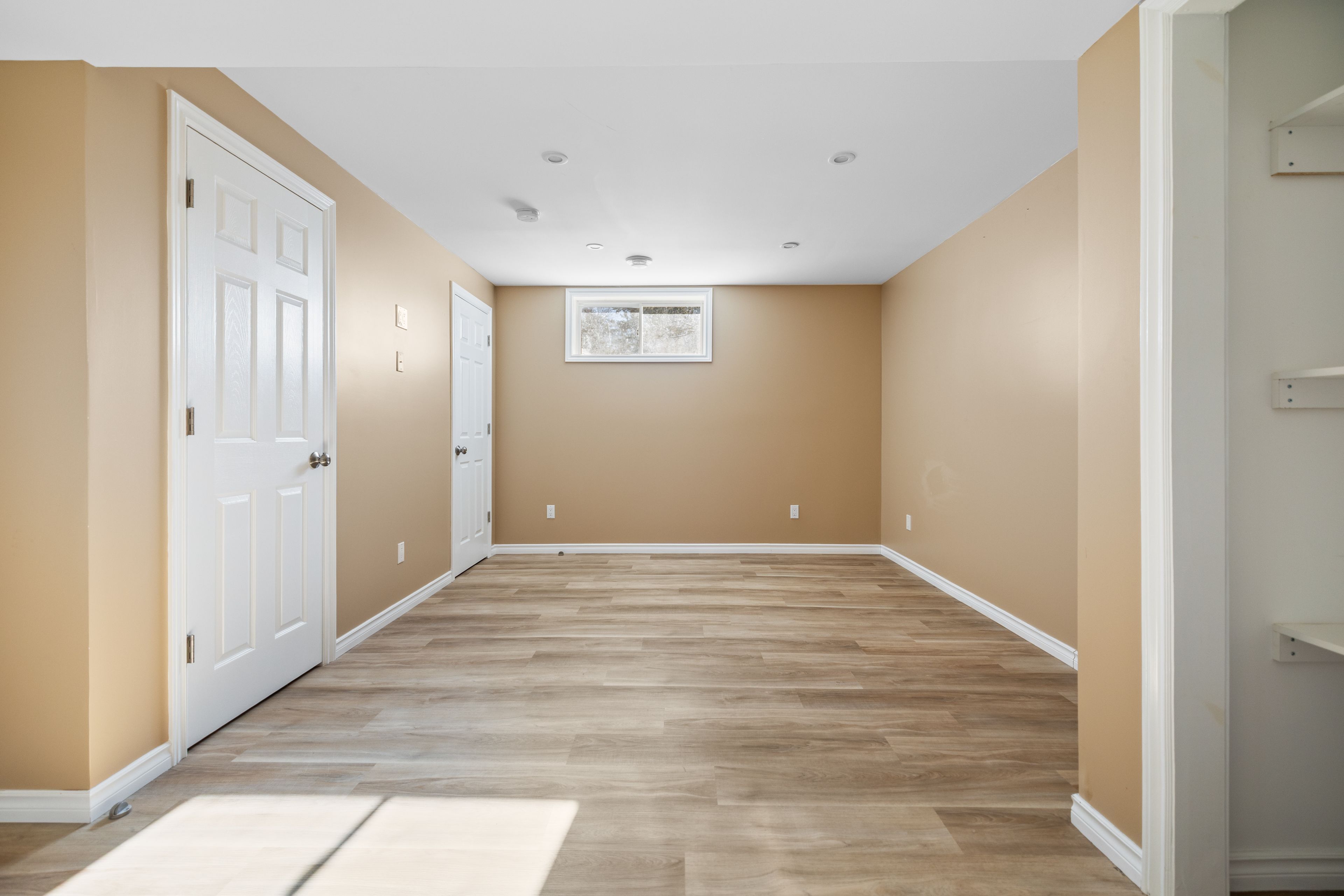 • Spacious main floor with two bedrooms and a modern bathroom.