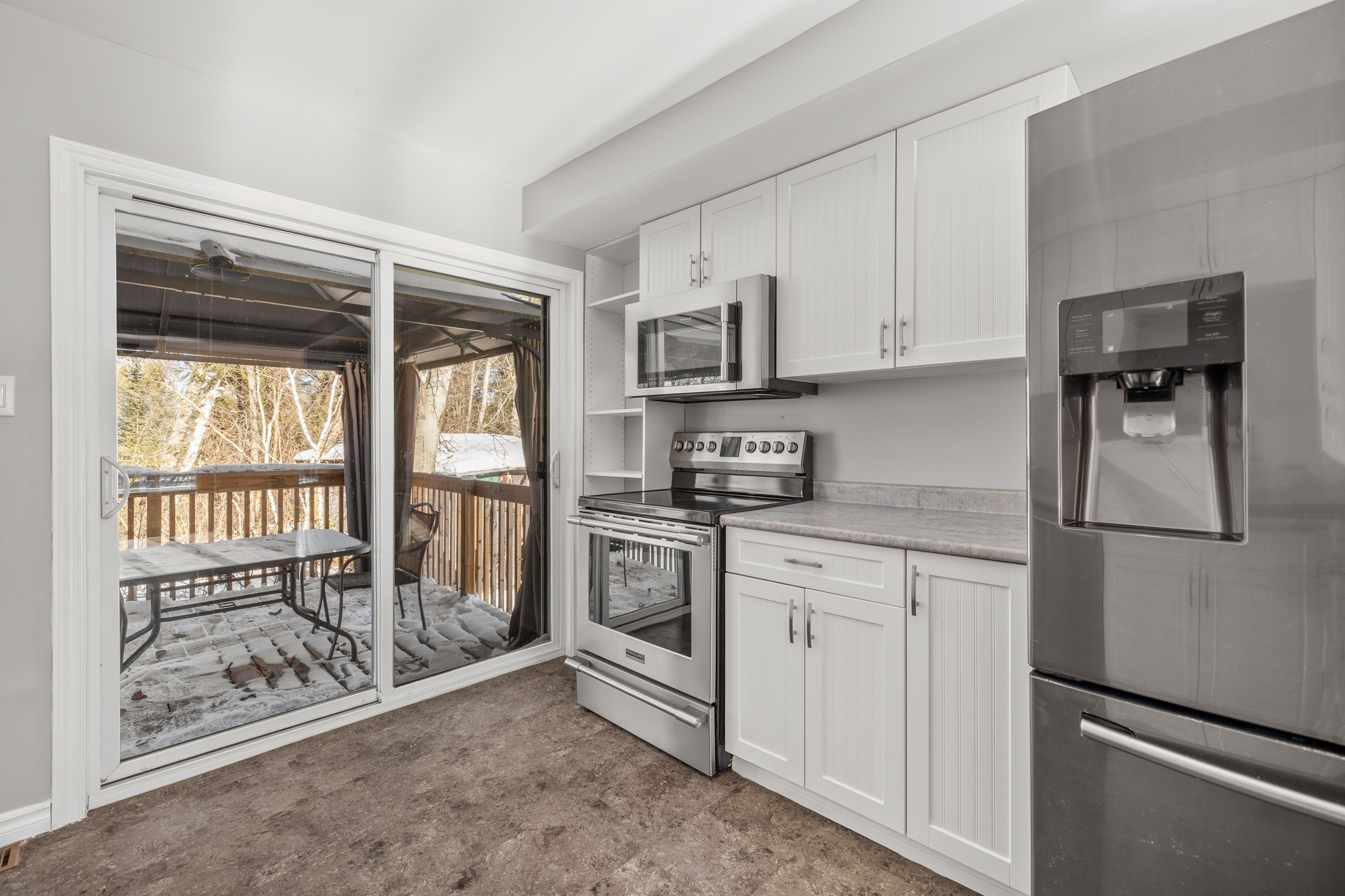 • Bright kitchen with premium appliances and new sliding door to the deck.