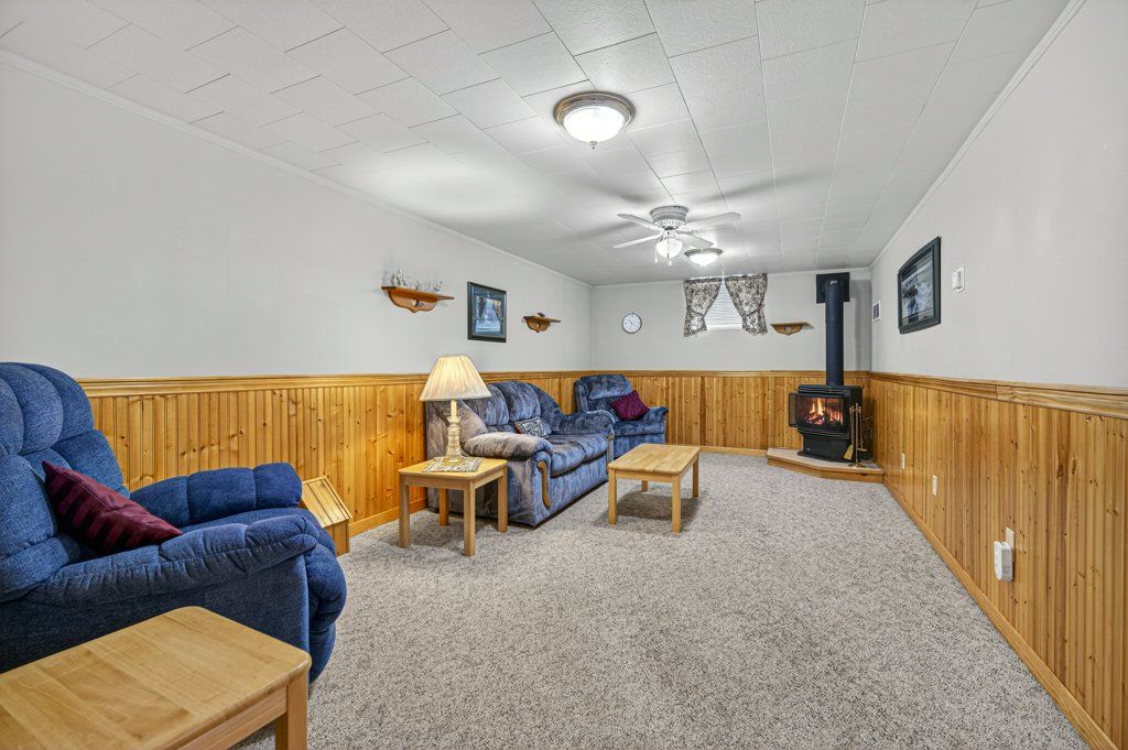 • Generous recreation room with cozy gas fireplace for movie nights.