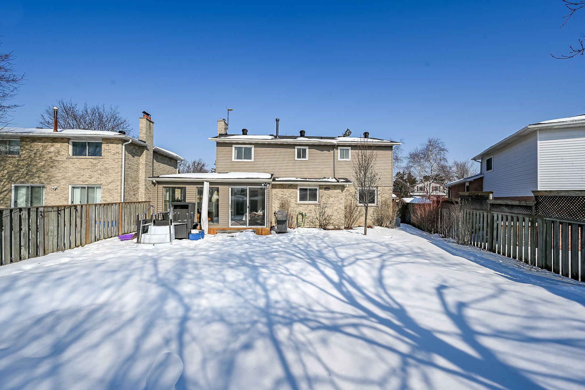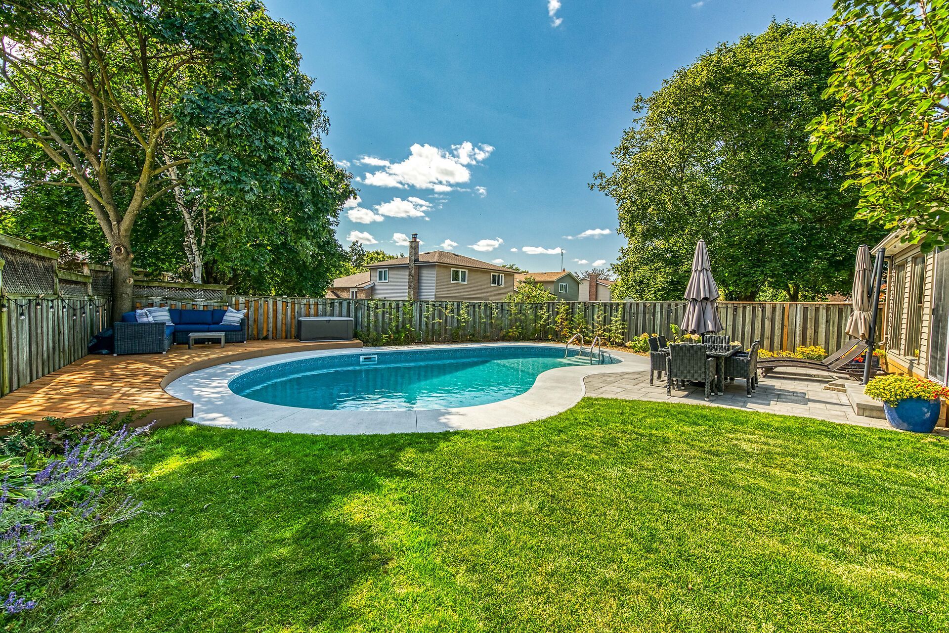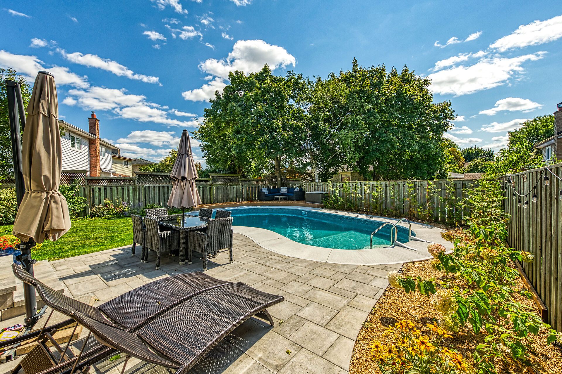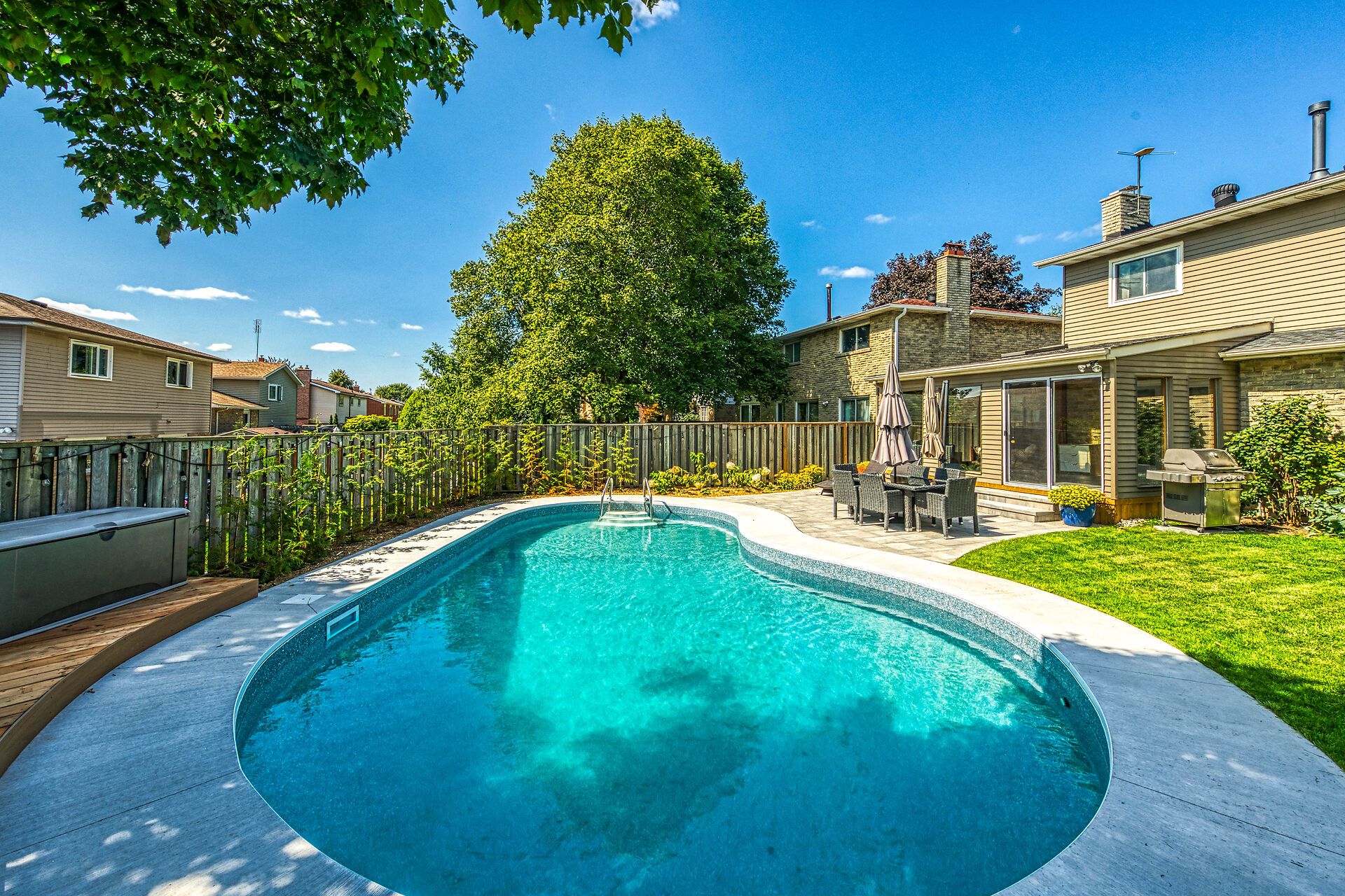 Welcome to this beautifully maintained family home in milton's sought-after timberlea neighbourhood, known for its great schools, parks, and welcoming community feel. Set on a quiet, child-friendly street where neighbours connect and kids play, this home offers the perfect setting to put down roots. Curb appeal shines with a four-car driveway, double garage with new garage door, and inviting front porch. Inside, the main floor features newly upgraded smooth ceilings with modern pot lights, creating bright, comfortable living spaces designed for everyday family life and entertaining alike. Enjoy a spacious living room, formal dining area, and cozy family room with fireplace, while the sun-filled 3-season sunroom offers the perfect spot to unwind while watching the kids enjoy the backyard. Step outside to your own summer retreat featuring a kidney-shaped in-ground pool with all new lines, brand-new surrounding concrete, and patio, and a new updated deck ideal for bbqs and gatherings, plus extra lawn space for kids and pets to play. The kitchen sits at the heart of the home, connecting seamlessly to the main living areas, while main floor laundry and a powder room add everyday convenience. Upstairs, the generous primary bedroom features a walk-in closet and private ensuite, while three additional bedrooms provide plenty of space for a growing family or home office needs. The partially finished basement offers additional living space, workshop potential, and storage ready to adapt as your family's needs evolve. A wonderful opportunity to own a move-in-ready home in one of milton's most loved family communities.