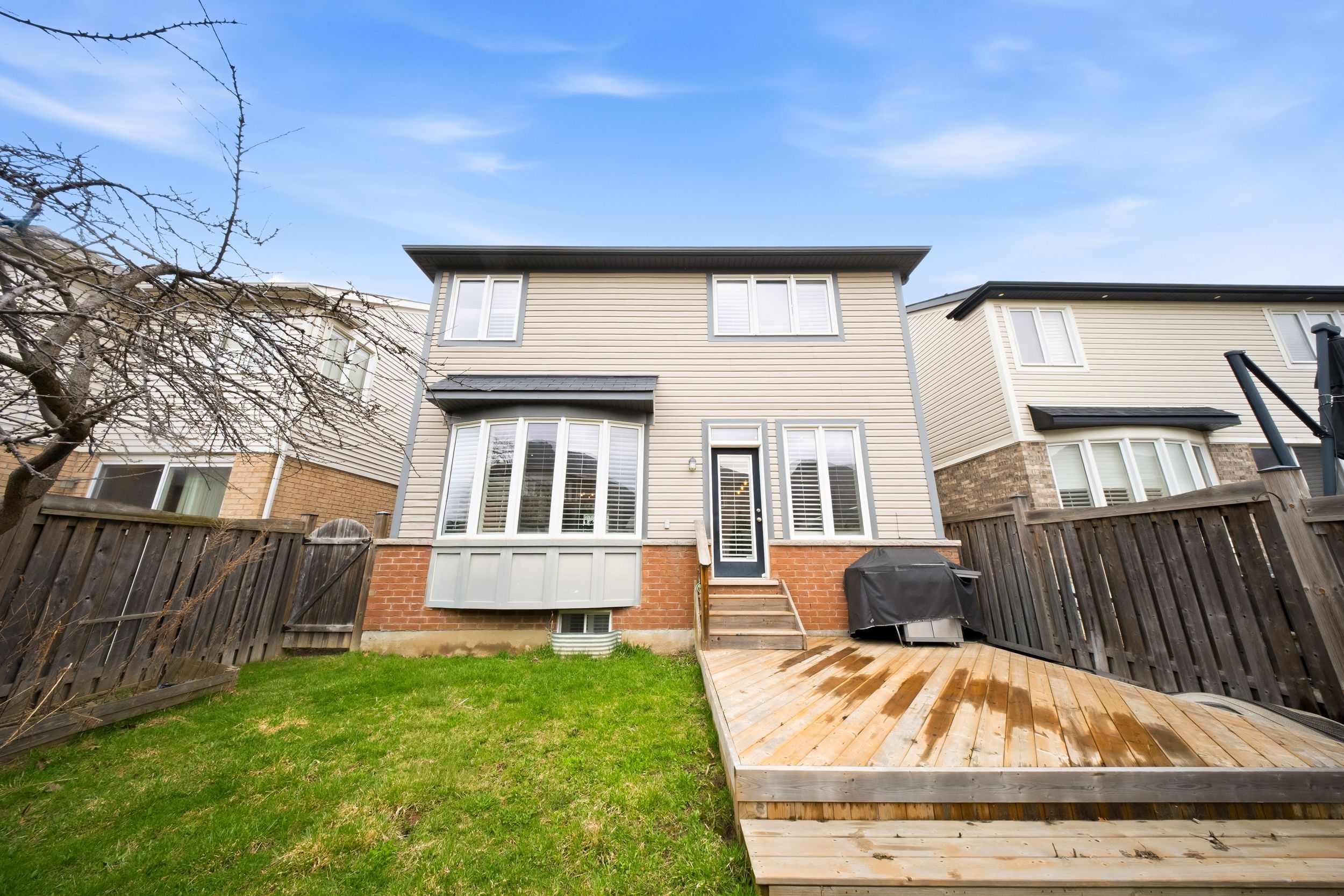 • Charming backyard with a deck perfect for relaxing and entertaining.