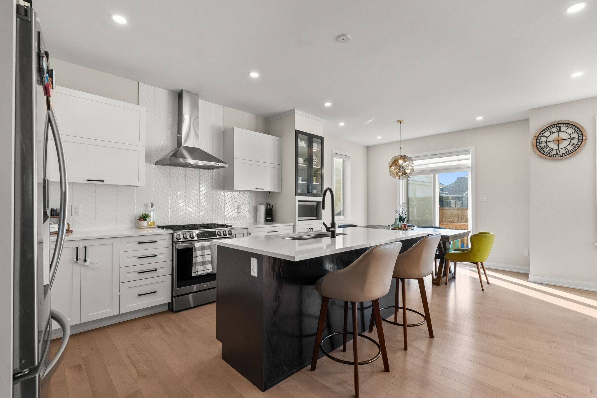 Two kitchens. Two laundry suites. One stunning home. This 2022 cardel nuevo in sought-after stittsville features a professionally finished lower level with a separate side entrance via a dedicated pathway, full kitchen, bathroom, living area, flex room, in-suite laundry, and bright oversized windows perfect for extended family, multigenerational living, or future income potential. The main home is equally impressive, with a grand foyer with designer tiles, rich hardwood floors, oversized windows, and a main-floor office/flex space ideal for working from home. Upstairs, four spacious bedrooms and a second-floor laundry room with sink provide everything a growing family needs, while the fully fenced backyard on a premium lot with no west-side neighbours is perfect for kids, pets, or entertaining. Located in the catchment of westwind public school and guardian angels elementary, and minutes from stittsville main street, smartcentres, shops, and restaurants. Flexibility, family space, and future potential - this one checks every box. Book your private showing today.