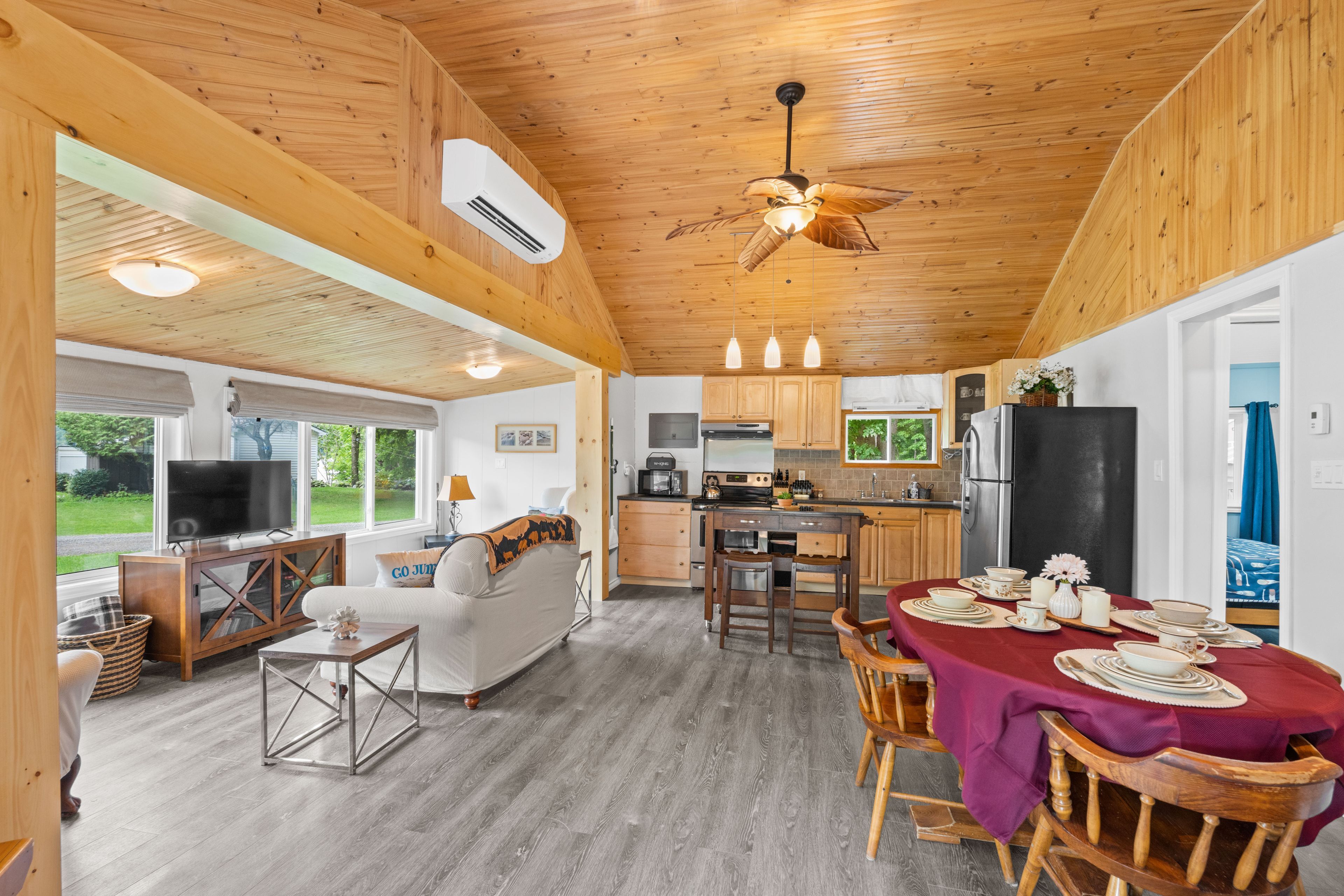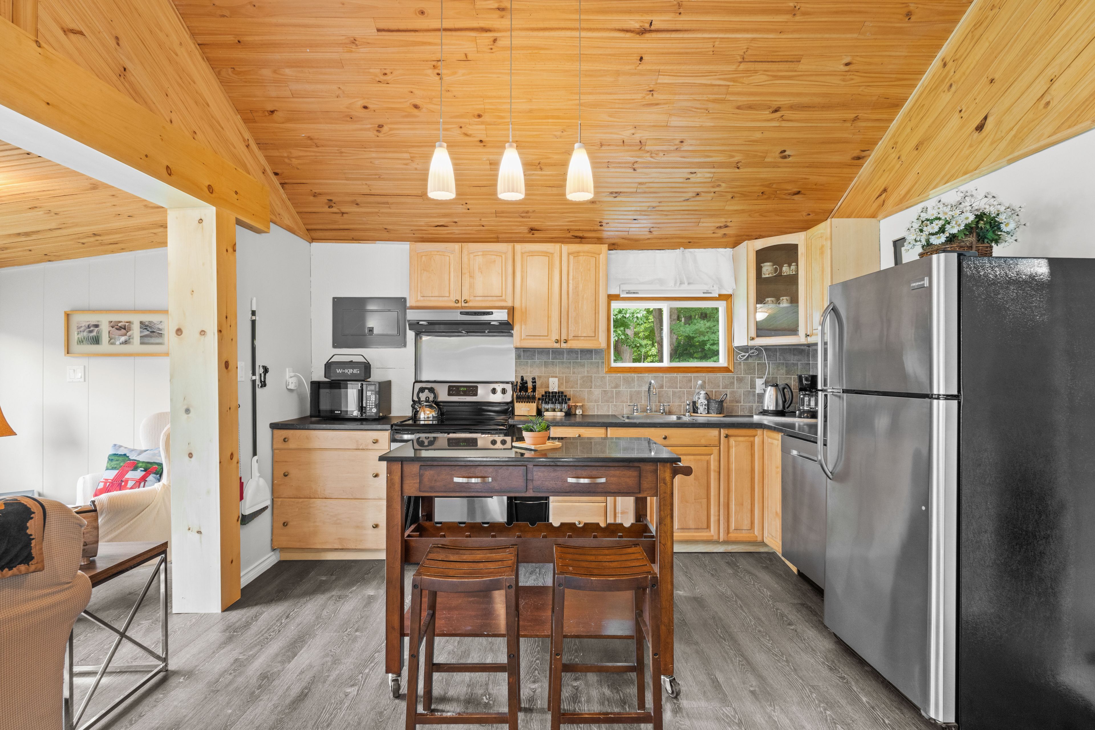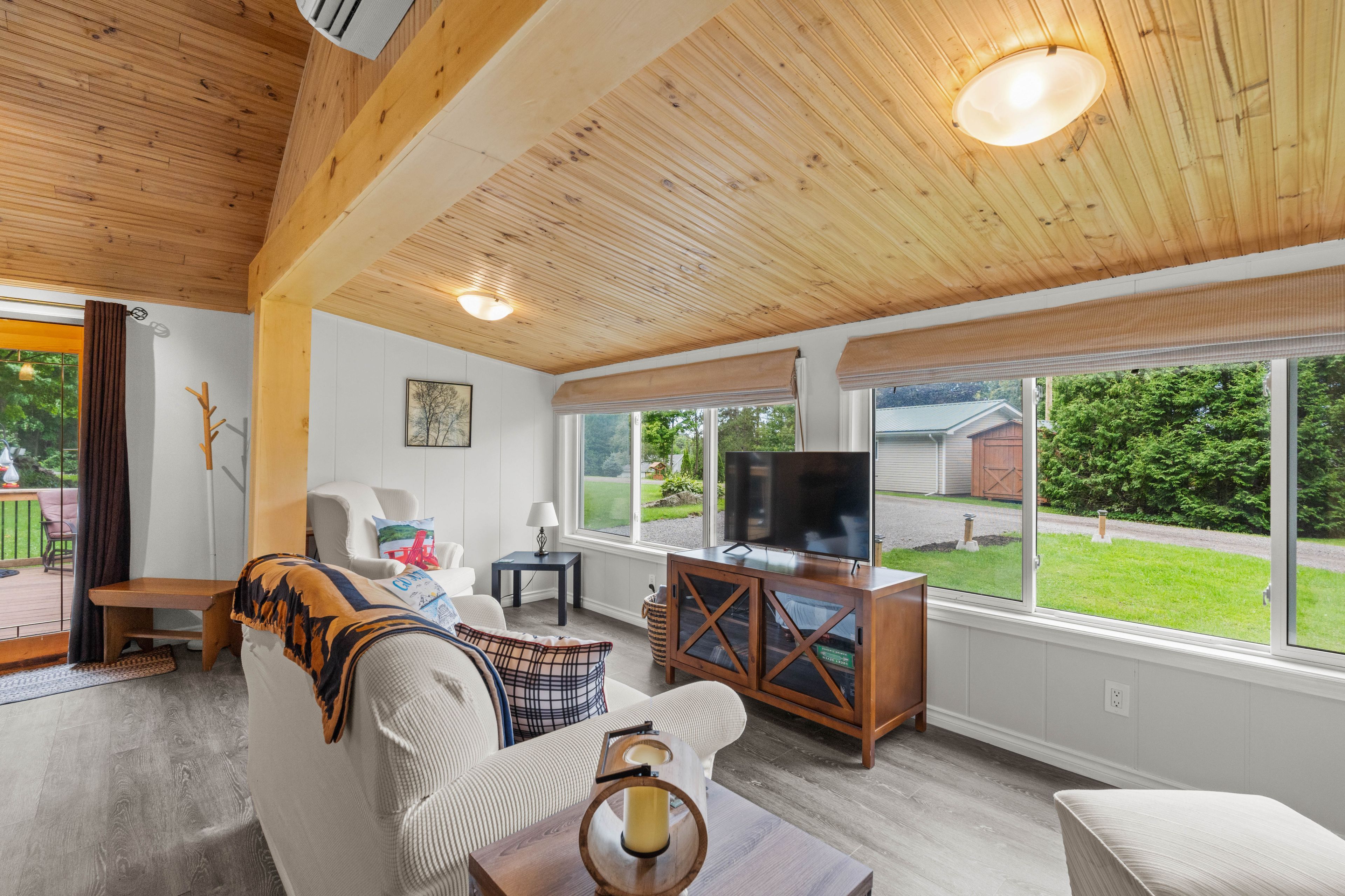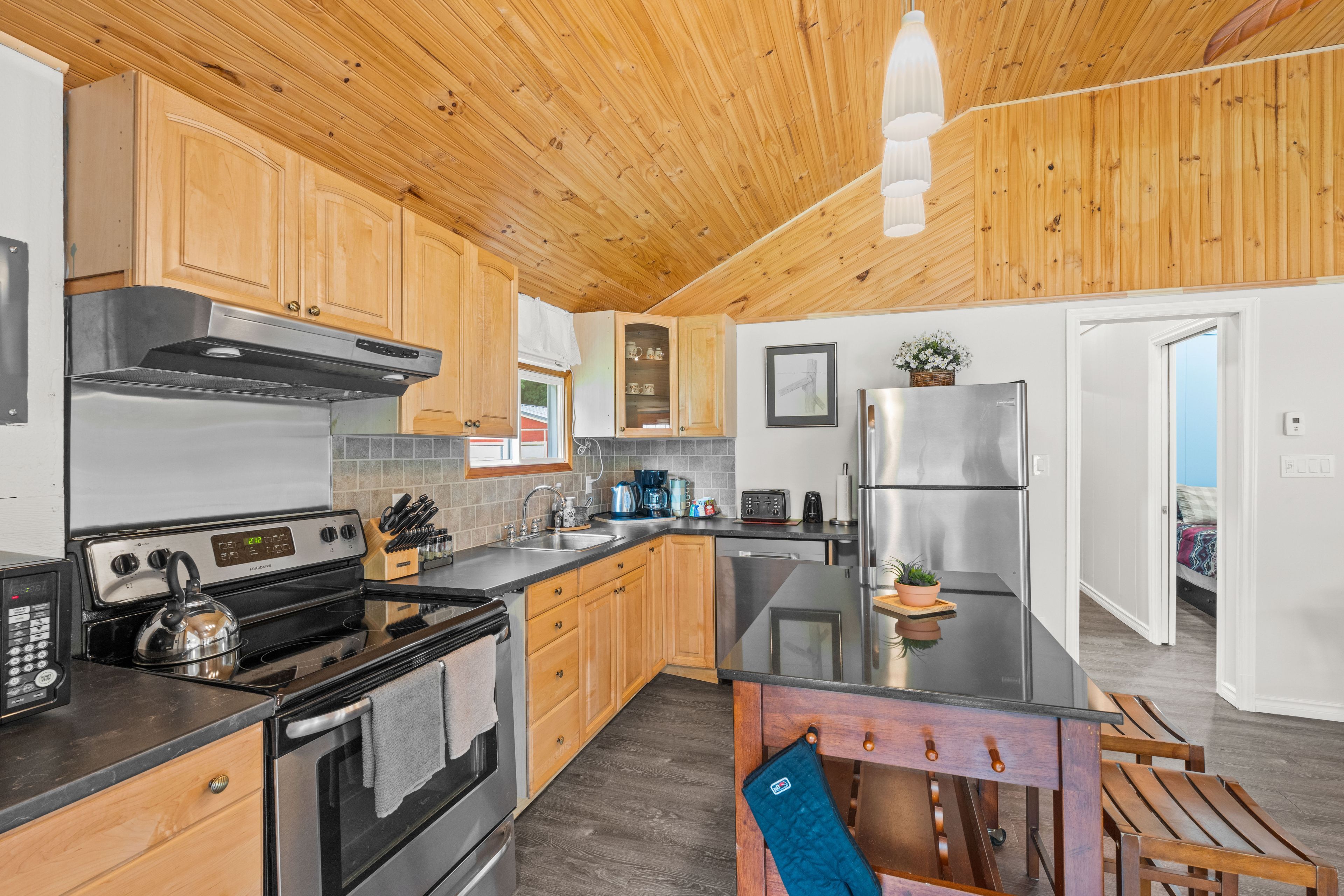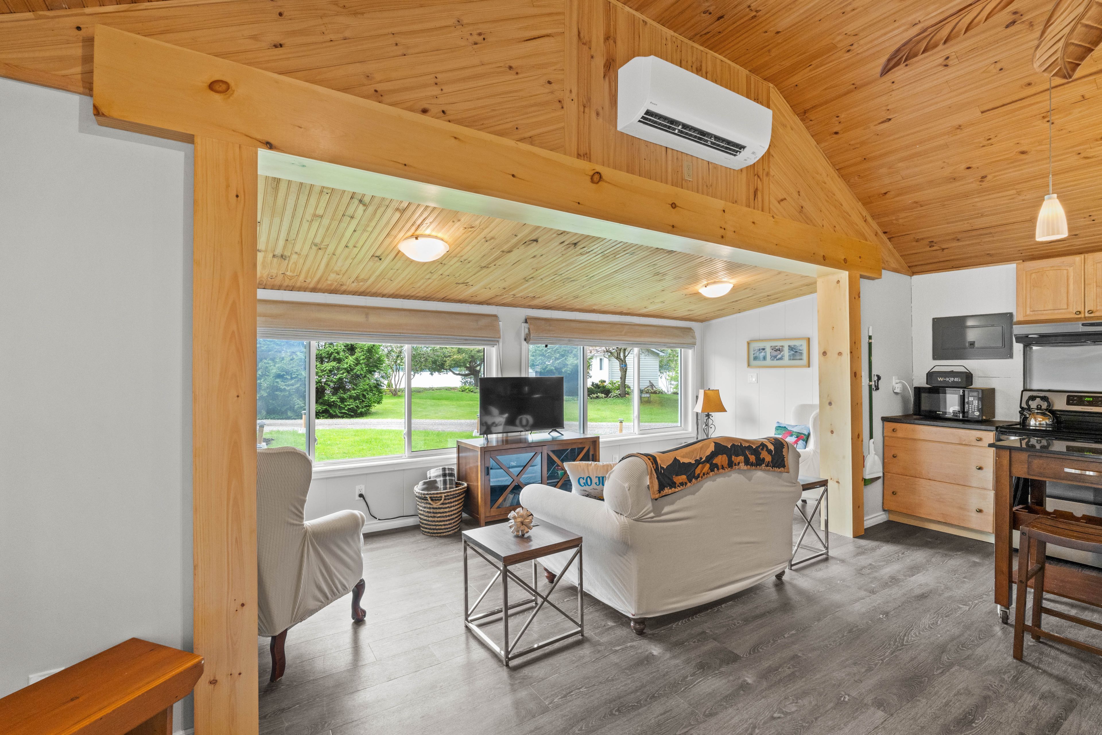 Welcome to this stunning 3-season cottage that has been thoughtfully and extensively renovated in 2023. This turn-key, 3-bedroom retreat perfectly blends modern comfort with the timeless charm of a classic cottage escape. From the moment you step inside, you'll be impressed by the bright, open-concept layout that seamlessly connects the kitchen, dining, and living areas. Soaring vaulted ceilings throughout add a sense of spaciousness and airiness, while a cozy fireplace and efficient heat pump ensure comfort during cooler evenings. No detail has been overlooked in the recent renovations. The updates include a brand new kitchen, fresh flooring throughout, upgraded insulation and plumbing, a beautifully redone bathroom, new windows, a newly paved driveway, and eye-catching vinyl board and batten siding with updated skirting. This cottage is truly move-in ready, offering peace of mind and effortless enjoyment from day one. Situated just across the road from your private swimming area and boat launch, the location is ideal for enjoying lake life all summer long. And that's not all included in this sale is an additional lot down the lane to the west of the cottage, measuring 50' x 115' with your own private dock. Whether you're looking for a serene family getaway or a savvy investment opportunity with potential for weekly rentals, this property checks every box. With the simple addition of a heat line to the water line, year-round use is well within reach. This property offers a drilled well and full septic system. A low $50/year road maintenance fee completes the package. Don't miss your chance to own this beautifully renovated, stylish, and versatile lakeside gem!
