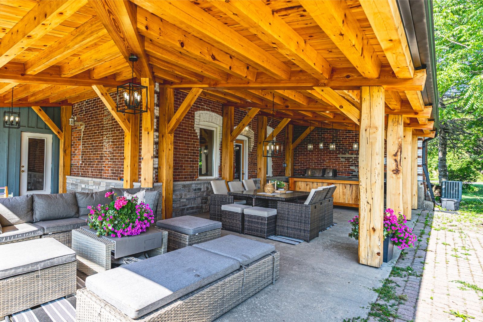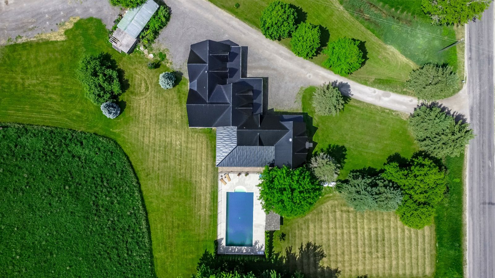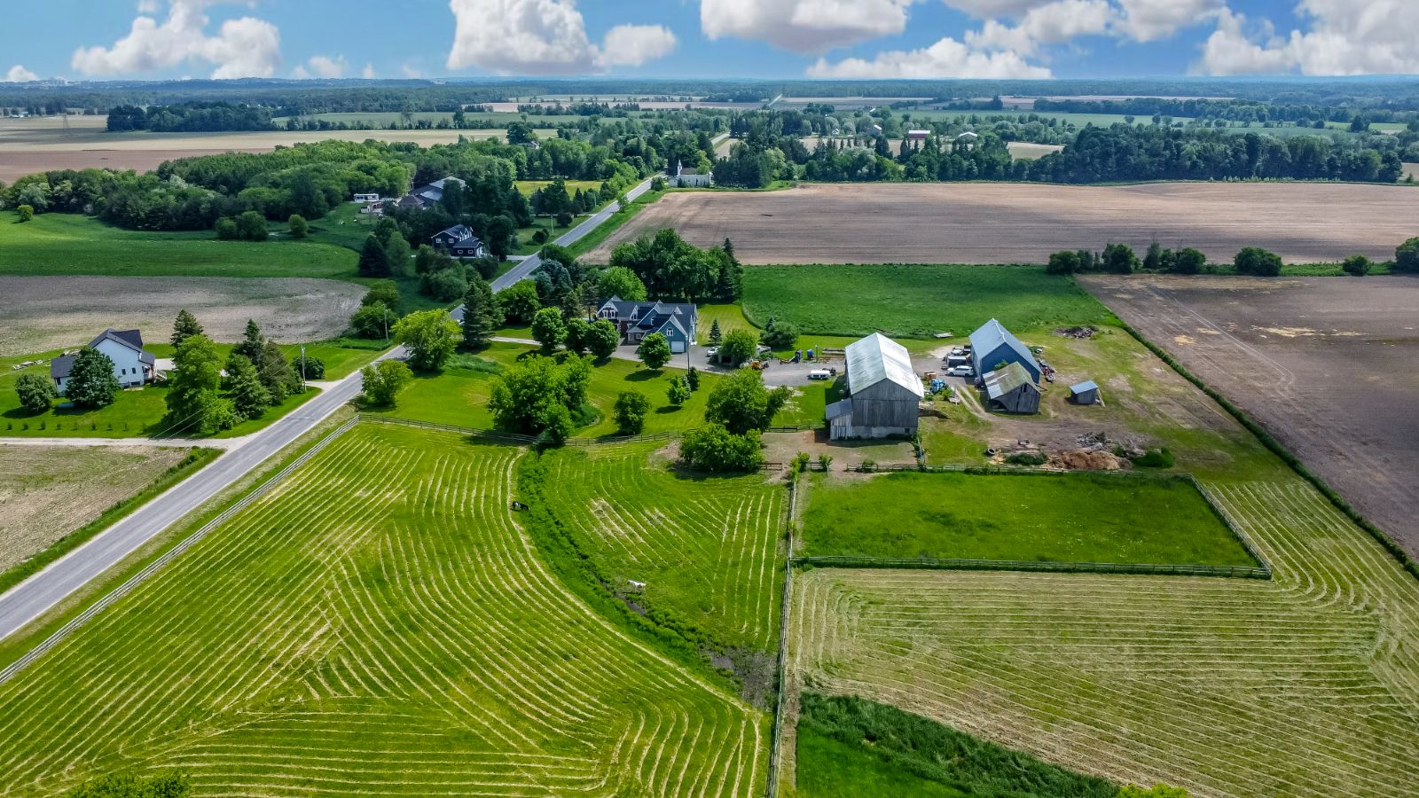 Luxury, space, and opportunity - 4,544 sq ft estate on 10 acres with outbuildings built for business! Live the rural estate dream with this 4,544 sq ft sanctuary, fully renovated and set on 10 acres of serene countryside near barrie, angus, and alliston. Offering total privacy with sweeping views of open fields and lush greenery, this property is brimming with opportunity for home-based businesses, contractors, and hobbyists, with an impressive selection of outbuildings that offer the flexibility to live, work, and pursue your passions. The 4,500 sq ft barn boasts box stalls, paddocks, a tack and feed room, and tack-up areas - perfect for discerning equestrians. A 62 x 38 ft heated saltbox-style workshop provides space for large-scale projects, while an 18'8 x 28 ft driving shed and a collection of accessory buildings add even more versatility. After a day spent working, escape to the backyard featuring an inground saltwater sport pool, a pool house with a shower and change room, and a timber-framed covered patio. The home itself exudes luxury, blending timeless architecture with high-end finishes. The modern farmhouse captivates with steep gables, a blend of brick and blue board and batten siding, a newer steel roof, and meticulously landscaped gardens. Step inside to the sun-drenched great room, a space that commands attention with soaring ceilings, exposed beams, a dramatic flagstone fireplace, and oversized windows that frame the tranquil landscape. The kitchen is functional and elegant, offering custom wood cabinetry, granite and quartz countertops, a farmhouse sink, and a vintage-inspired range. Set in a private wing, the primary suite provides a peaceful retreat with a walk-in closet and ensuite, while a showstopping billiards room with vaulted ceilings and arched windows flows into a versatile space ideal for a media room, office, or lounge. This is an exceptional opportunity to live, and unwind in one extraordinary property that truly has it all.
