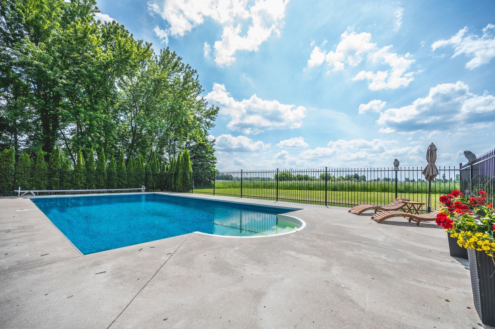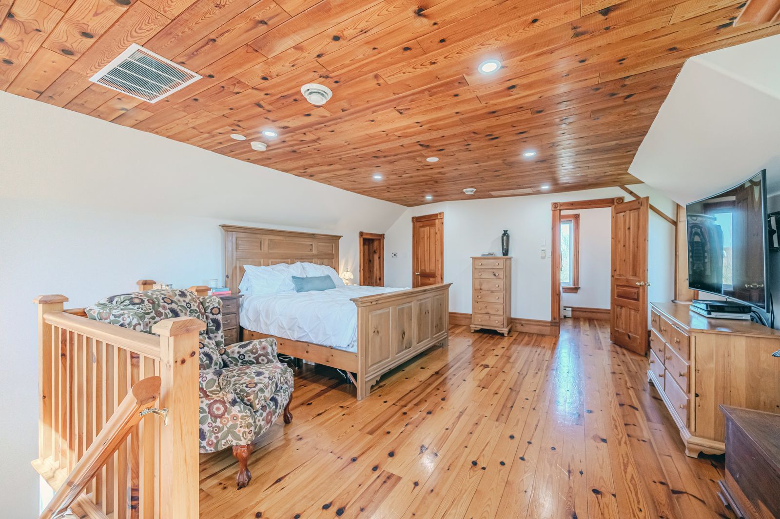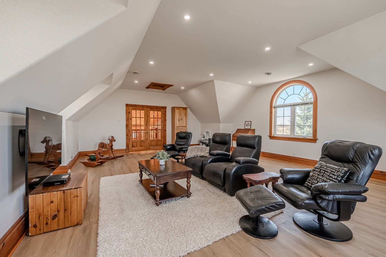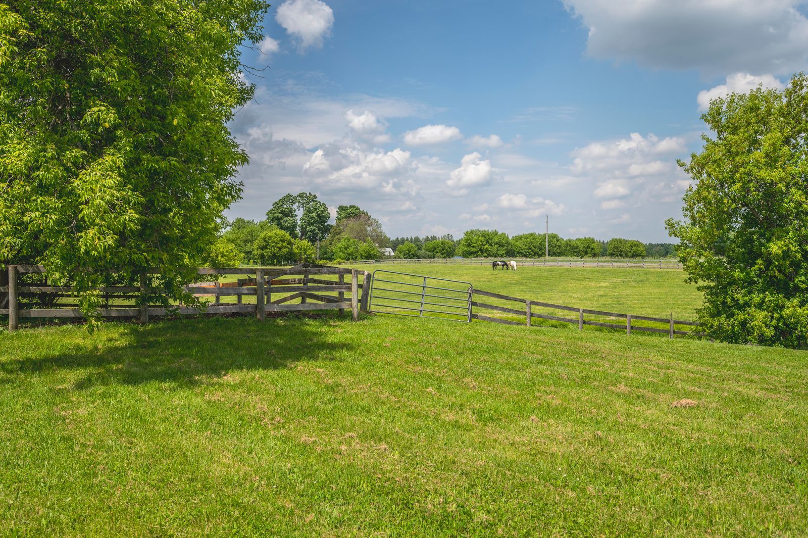 Timber-frame estate on 10 acres with inground pool, expansive barn, versatile outbuildings, & a 4,544 sq ft home built to impress! Call it a farmhouse if you want, but this 10-acre estate works harder than most properties ever will, with outbuildings built to perform and a 4,544 sq ft home that redefines rural craftsmanship. Anchoring the property is a 4,500 sq ft barn with box stalls, paddocks, and tack space, a heated 62 x 38 ft saltbox-style workshop, an 18 x 28 ft drive shed, multiple accessory buildings, and a two-car garage, perfect for home-based businesses, contractors, or equestrian enthusiasts. The home stands among open fields and mature trees, showcasing steep gables, brick and board-and-batten siding, an updated steel roof, and an outdoor retreat with an inground saltwater 20 x 40 ft pool, a pool house with a shower and change room, and a timber-framed covered patio. The great room showcases true timber-frame craftsmanship, with soaring wood-plank ceilings, expansive arched windows, and a floor-to-ceiling stone fireplace crowned by a wood mantle and chandelier, and in-floor radiant heat throughout most of the home. Handcrafted wood cabinets, stone counters, open shelving, and a large island with an apron sink make the kitchen the perfect gathering place, while the breakfast nook invites casual mornings and the formal dining room provides an elegant setting with a fireplace and patio access. A main-floor office offers a dedicated workspace, while upstairs, a billiards room with vaulted ceilings and arched windows overlooks the great room and flows into a large family/games area. The primary suite enjoys its own private wing, accessed by a separate staircase, with a walk-in closet and ensuite featuring a jetted tub. Every part of this estate, from the surrounding acreage to the timber-frame home and equipped outbuildings, is ready to support a lifestyle of work, recreation, and country living at its finest.