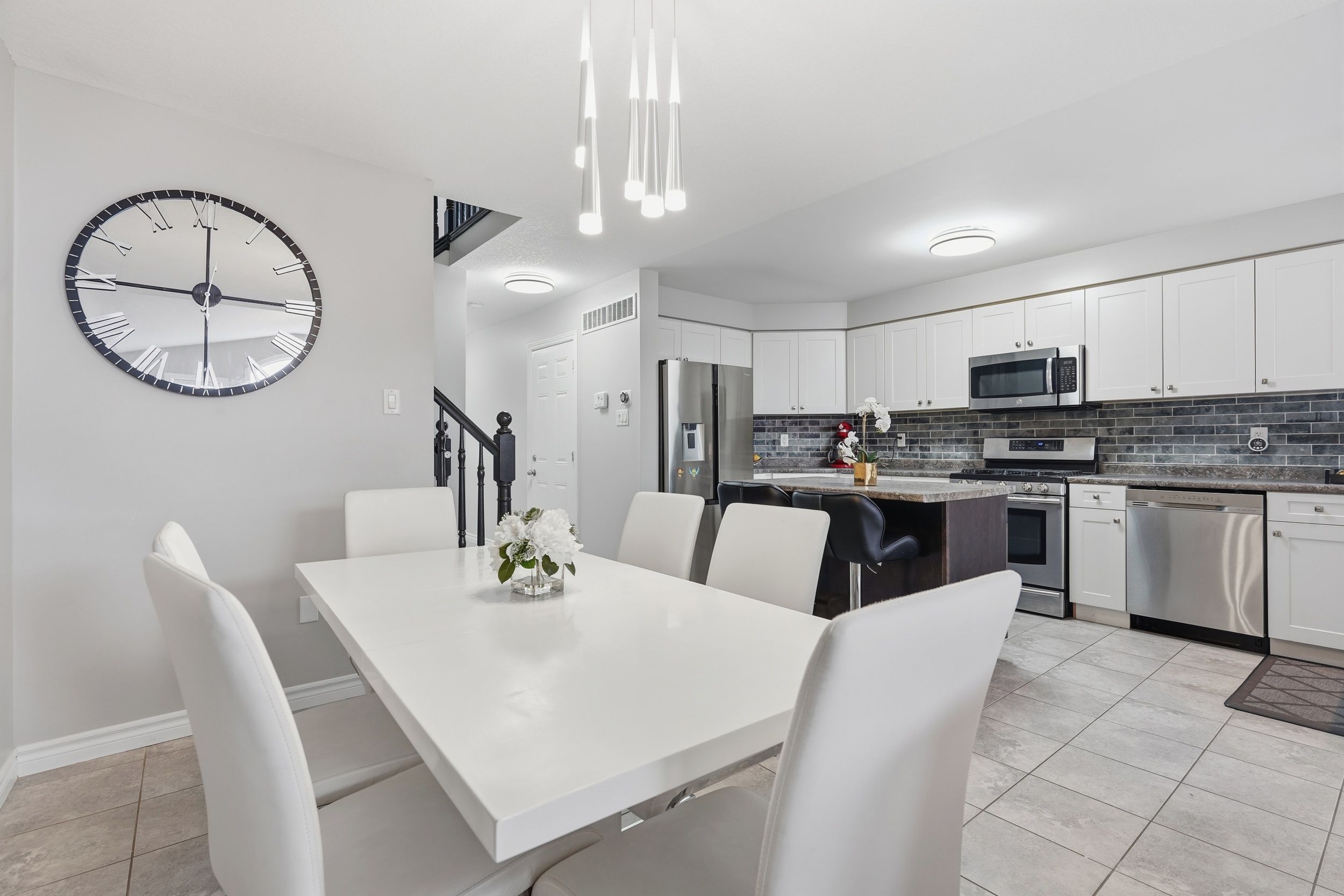 Discover this inviting, move-in ready attached two storey home, thoughtfully designed with affordability in mind and absolutely no condo or association fees. With three spacious bedrooms and four modern bathrooms, plus a finished lower level, this home offers exceptional versatility and comfort. The bright, carpet-free interior features a generous open concept living room, highlighted by a vaulted ceiling. Patio doors open toa fully fenced backyard with a deck, providing the perfect space for entertaining or relaxing. Enjoy the added privacy of backing onto sir arthur currie elementary school, and take advantage of the easy stroll to foxfield district park. Large windows and transom accents flood the rooms with natural sunlight, creating a warm, welcoming atmosphere. The primary bedroom is a true retreat, featuring a three-piece en-suite and a walk-in closet for ample storage. Located in the highly sought-after northwest foxfield subdivision, this home is close to schools, parks, golf courses, shopping destinations, western university, and the hospital. With its blend of convenience, style, and value, this property is ideal for young families or professionals seeking a stylish condo alternative without the extra fees
