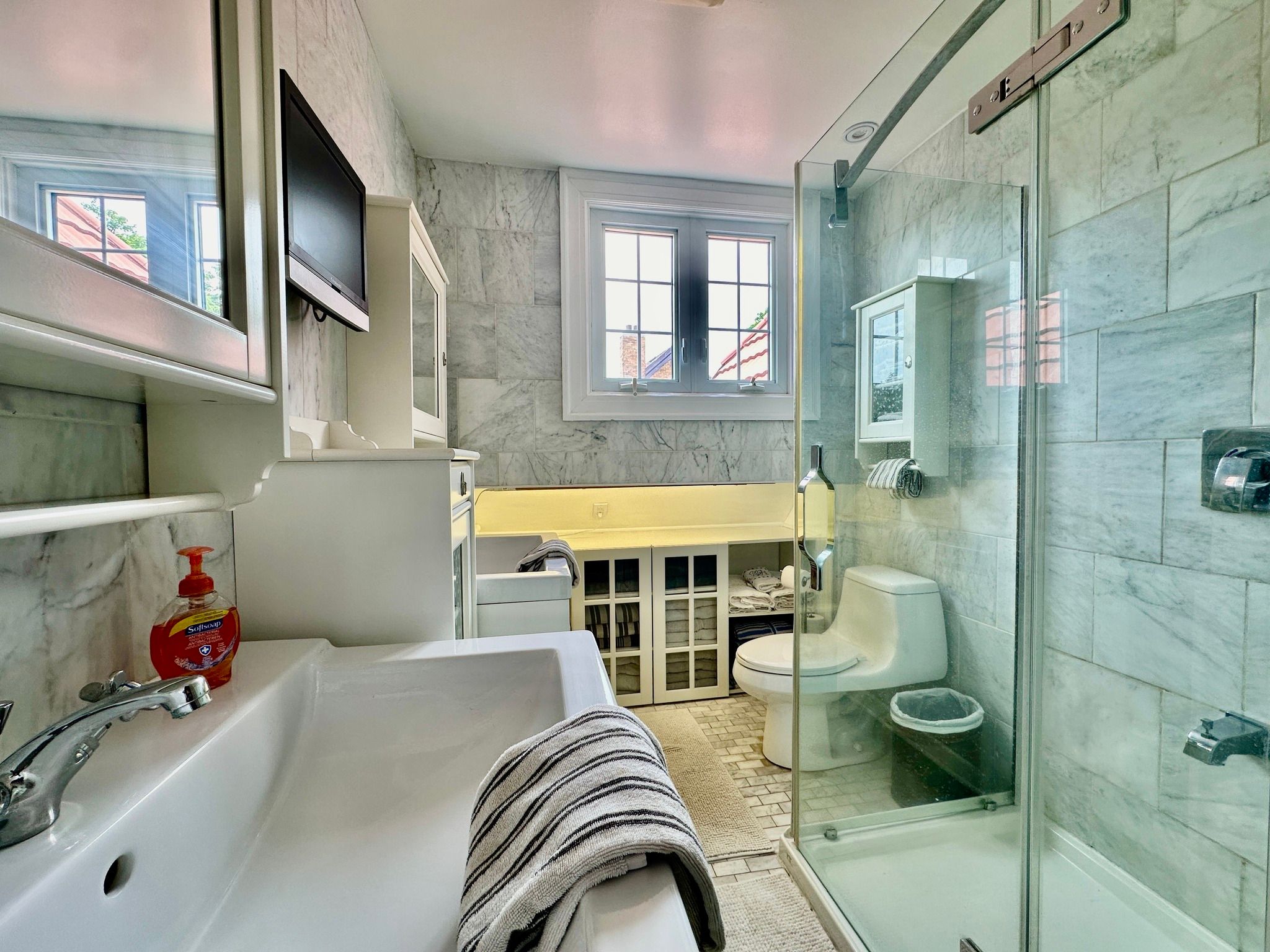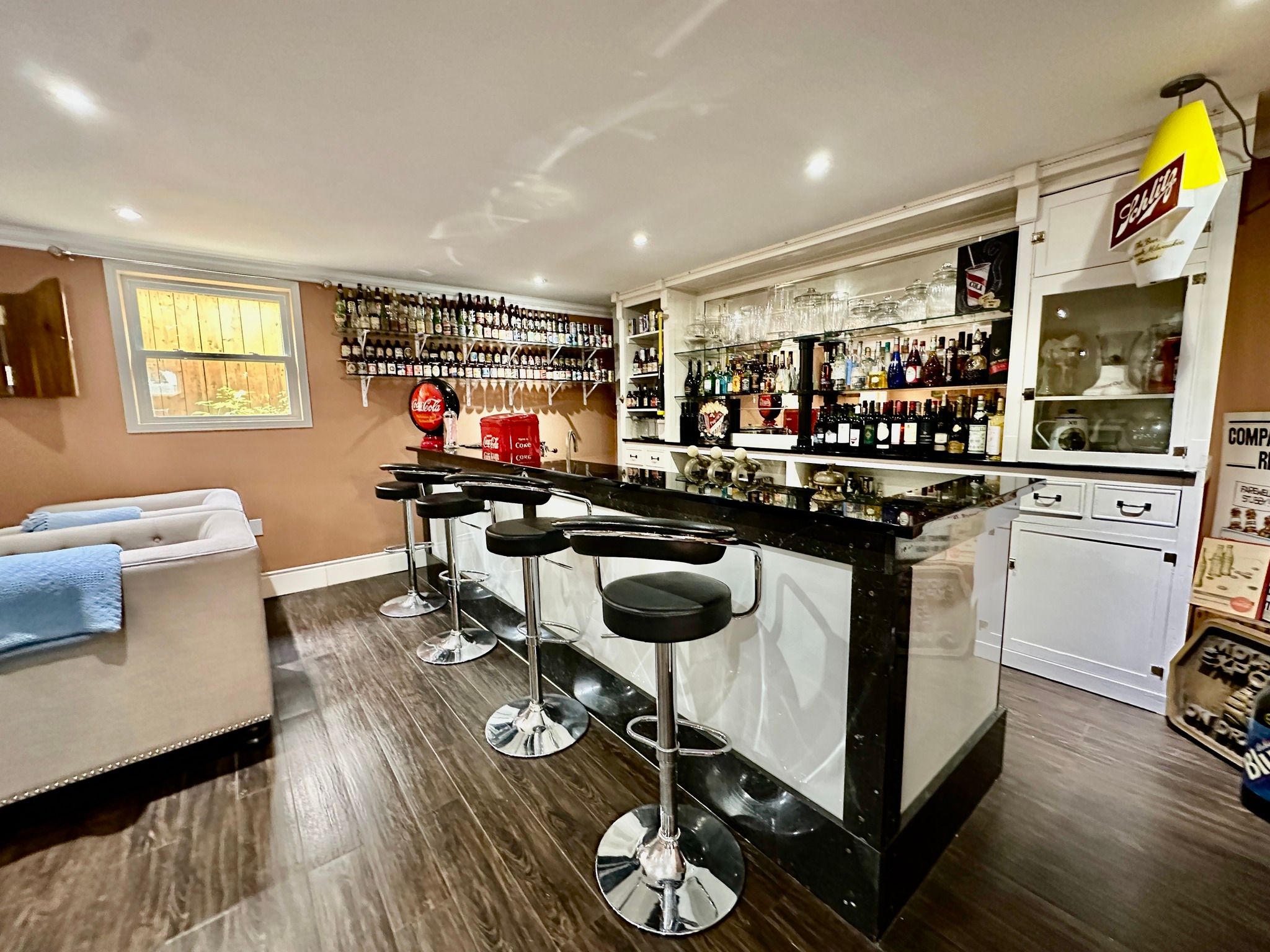 • Finished rec room perfect for entertaining with a unique marble sofa bar.