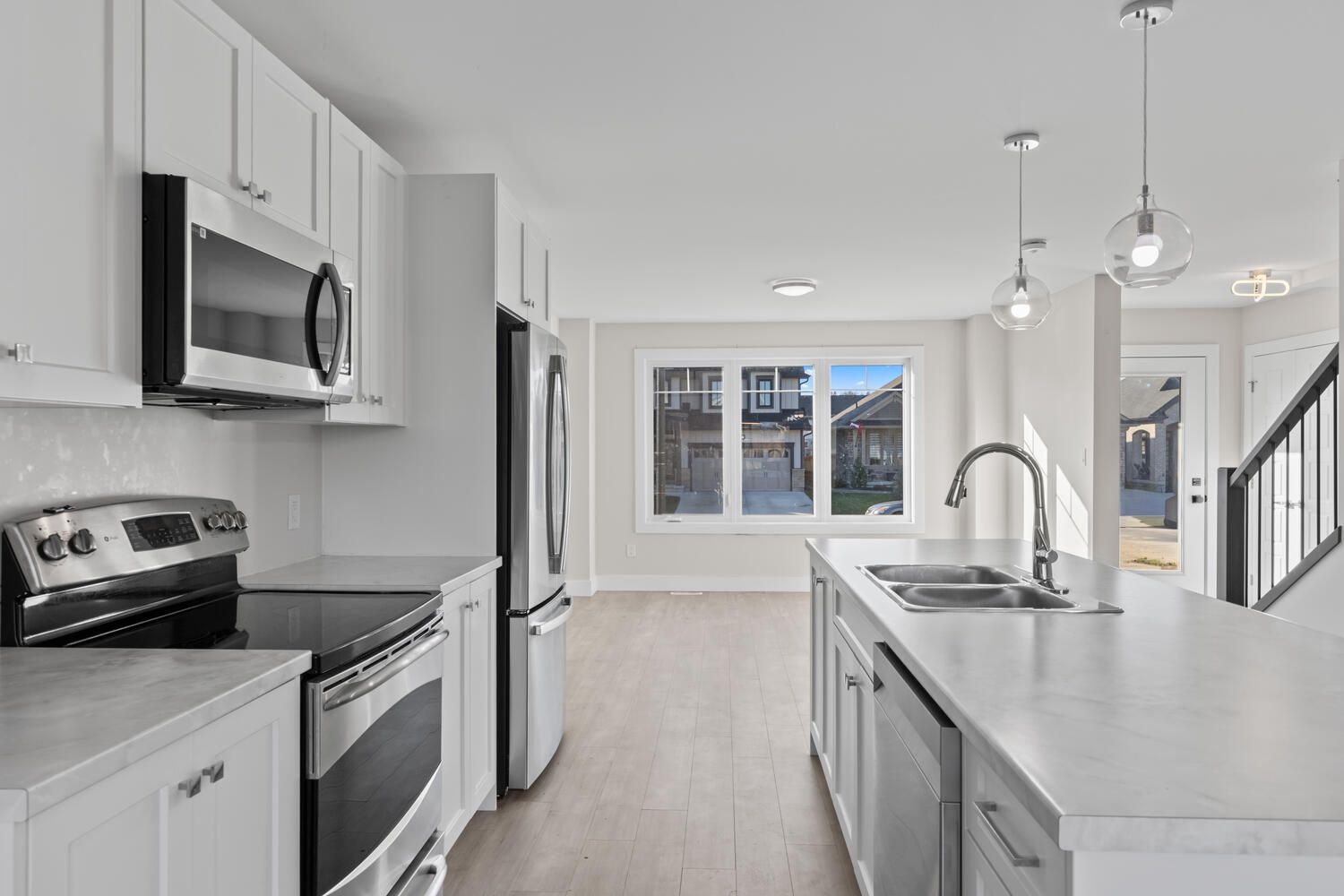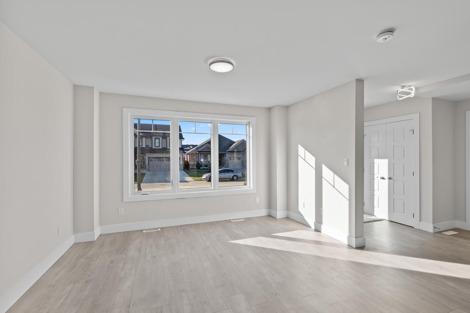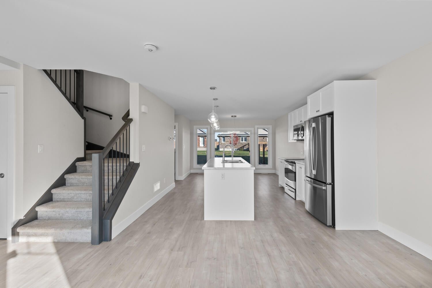 • Open-concept main floor with bright living area and large windows.