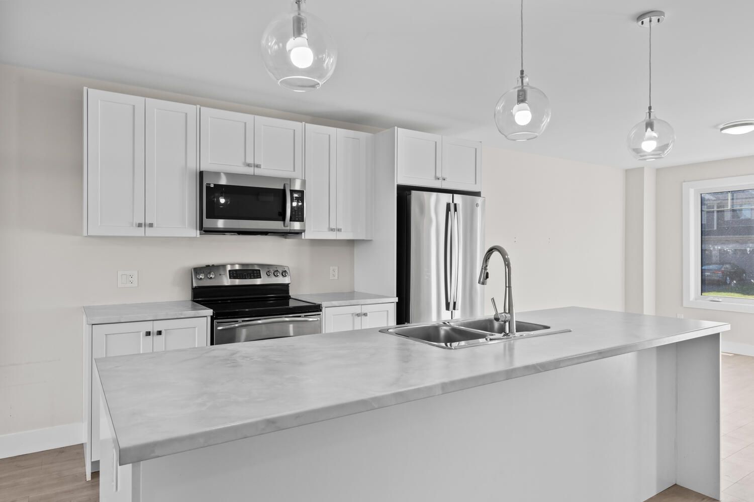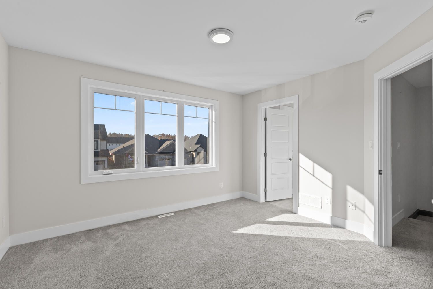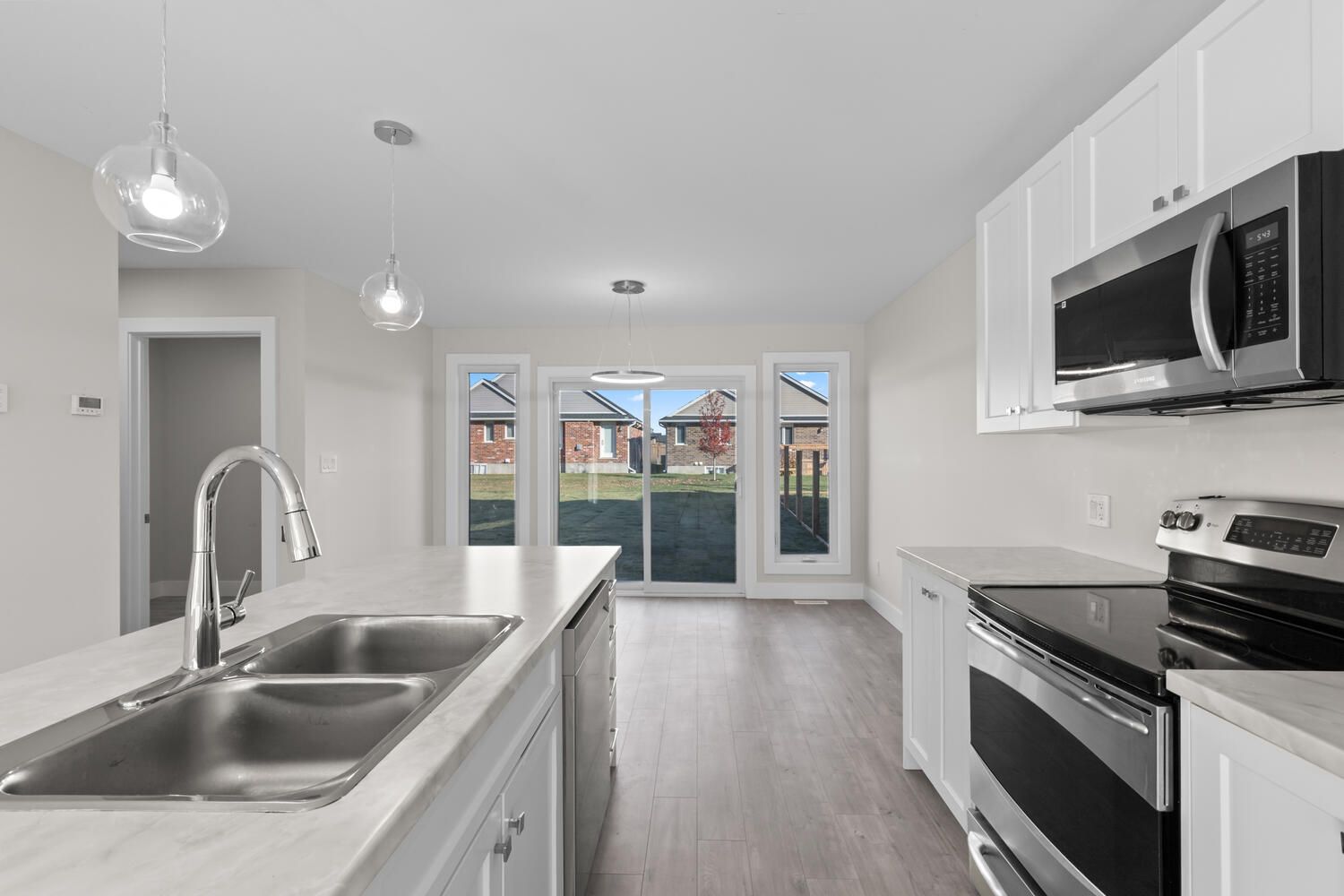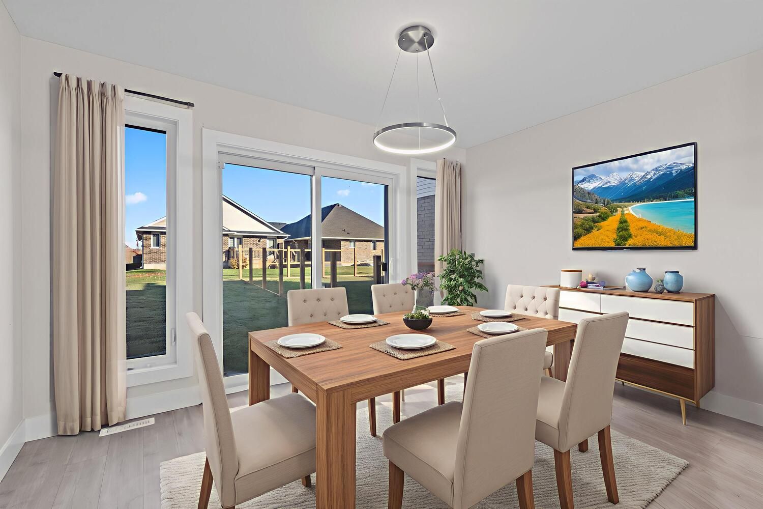 • Open-concept main floor with bright living area and large windows.