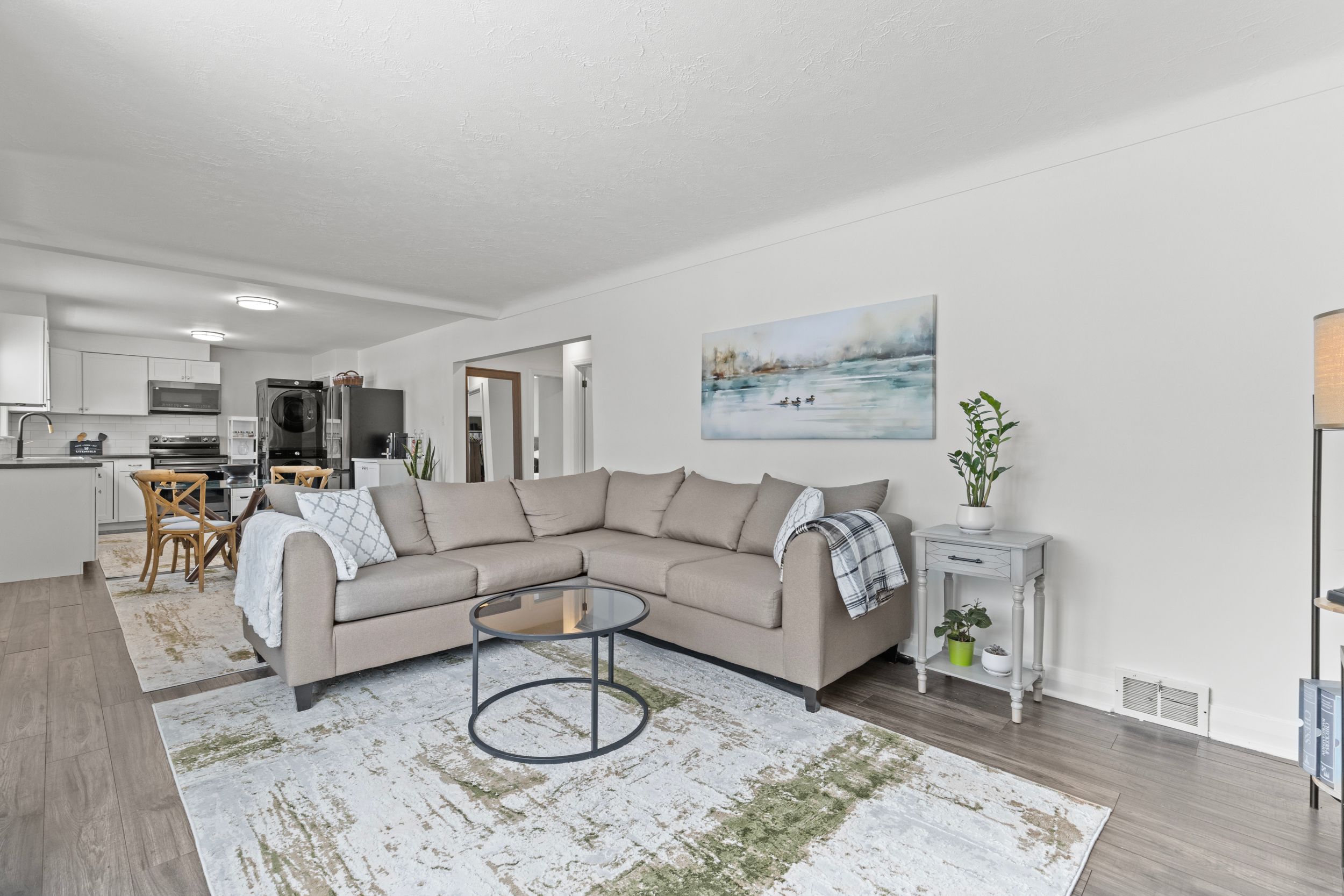 Turn key living with built-in income potential. This fully detached bungalow offers two completely self-contained units which is ideal for investors, multi-generational families or buyers looking to offset their mortgage. The main floor has been renovated with an open concept layout that flows through to the living and dining areas. The kitchen features white shaker cabinetry, new appliances and connects seamlessly to the main living space. The large living room window brings in natural light and overlooks the front yard. The main floor offers three bedrooms with one currently being used as a home office. The bathroom was renovated within the last year and includes a tub/shower combination with tiled surround. The main floor can be reconnected to the lower level if desired and is currently separated by a door for privacy. The lower level is accessed through a side entrance and functions as a self-contained unit. This space includes three additional bedrooms, three-piece bathroom, newer vinyl plank flooring and separate laundry area making it suitable for rental income or extended family use. Outside, the property offers a newly paved asphalt driveway with parking for three vehicles and a large backyard. Set in a great neighbourhood with a convenient location, the layout allows the option to live in one unit and rent the other, accommodate extended family or open the home up and use it as a single residence. Offering income potential, flexibility and a location directly bordering st. Catharines. This home delivers the best of both worlds. (to see what the home looks like in the summertime please use google street view.)