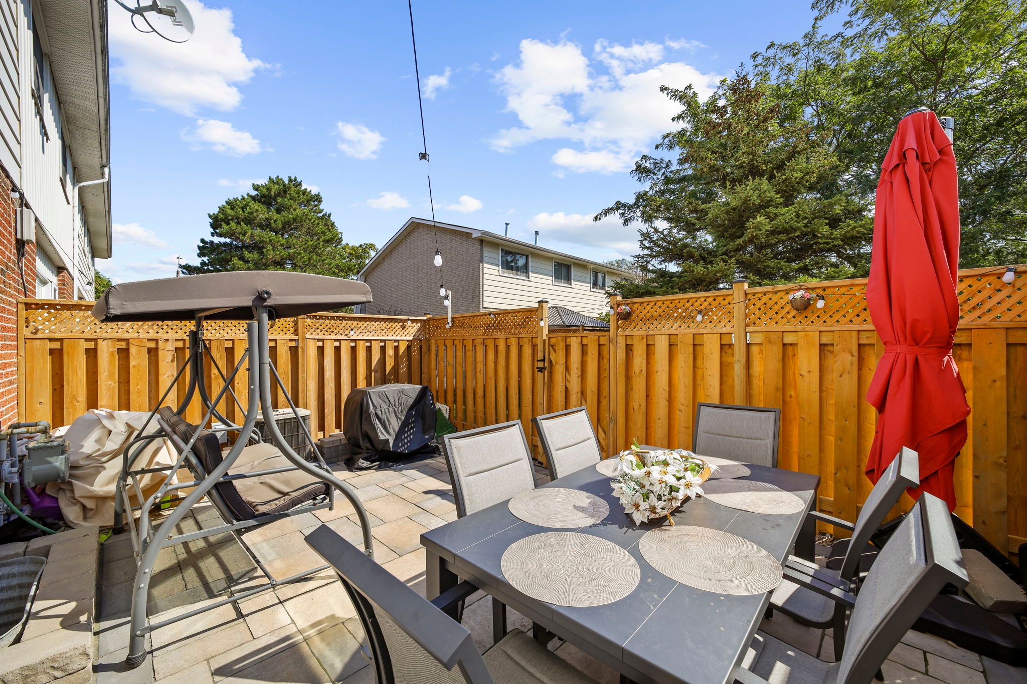 Welcome to this beautifully maintained townhome, located in one of hamilton's most sought-after complexes steps from school & daycare! Step inside to find an updated kitchen featuring extended upper cabinets, modern countertops, and a stylish backsplash. Just off the kitchen, the spacious dining area easily accommodates a full family-sized table perfect for gatherings. At the back of the home, an oversized living room offers plenty of space to relax or entertain, complete with a walkout to the private backyard. The recently updated backyard features new interlocking and fencing, creating a great space for summer bbqs or enjoying the outdoors. The finished and renovated basement adds valuable extra living space, ideal for a home office, gym, media room, or many other uses. Upstairs, you'll find three generous bedrooms and a well-appointed bathroom, providing comfort for the whole family. Additional highlights include smart switches, smart thermostat, and smart ceiling fans, an extra-long driveway with no sidewalk interruption, and a well-maintained complex with low condo fees and a common park/green space for residents to enjoy. This home is in an excellent location walking distance to sir wilfrid laurier recreation centre, across the street from an elementary school, and close to highways, shopping, and other amenities. Major updates include roof (2021), interlocking & fence (2024), and an upgraded electrical panel. Don't miss your chance to own a turnkey home in a family-friendly community! See floorplans in pics