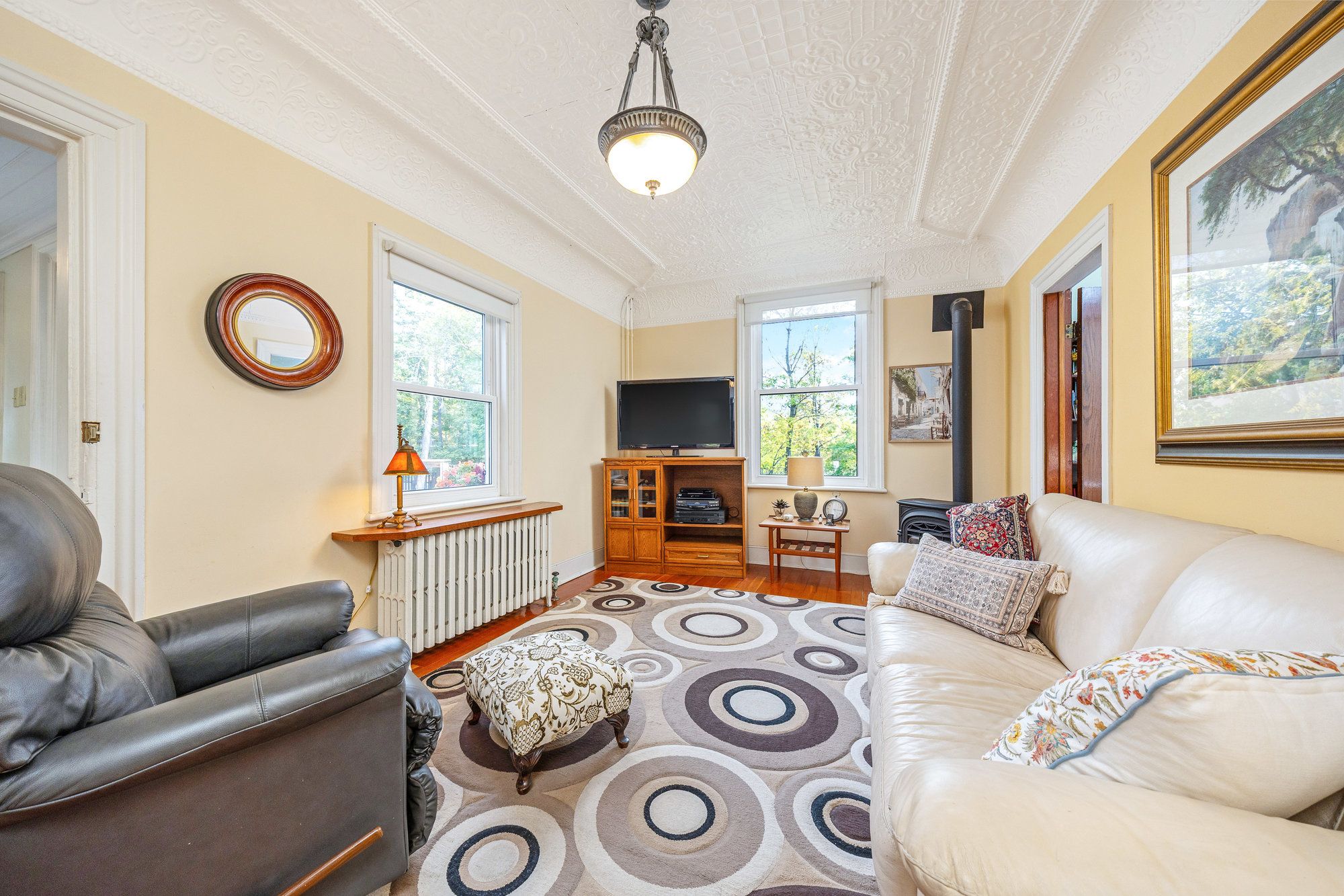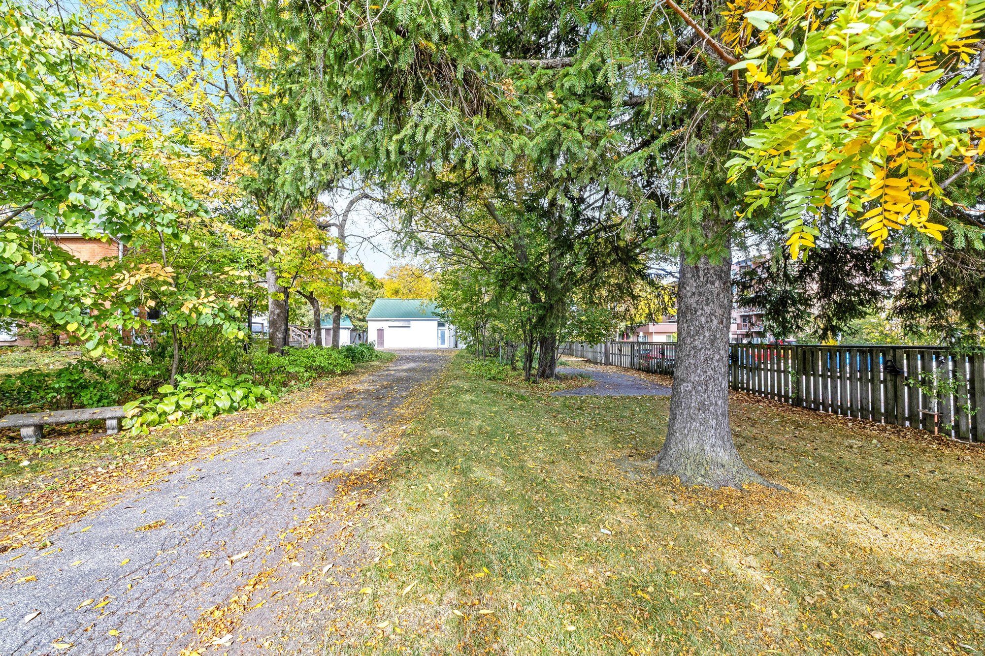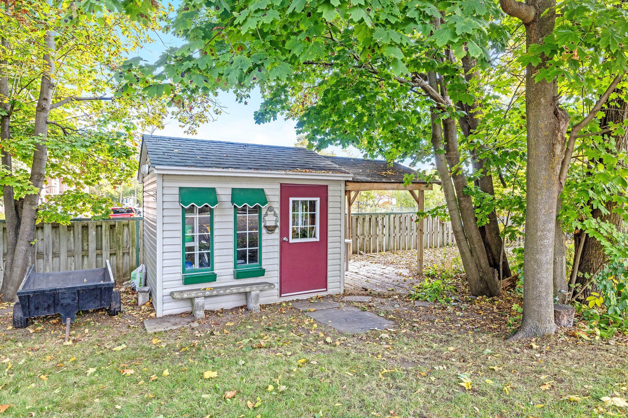 This is one remarkable property - perfect for a family based home business, or perhaps future development. Two lots, one with the dwelling, drive shed (home office), with a deeded right of way to the lane behind the property, and a severed building lot (50. 1 x 110). **these lots must be sold together**. Zoned low density 1 allowing for home occupation, and is in the georgetown go train secondary plan review. The larger, irregularly shaped lot, with maintained century home, updated throughout the years, is a cozy well loved home with a renovated kitchen and dining room with large windows and gas fireplace, welcoming bright living room with gas fireplace, a bright and sunny den, and a main floor bedroom with sitting area (which could be used for any purpose) with an semi-ensuite bathroom. The second floor has three bedrooms and a renovated bathroom with laundry. Outside you'll find a large gathering sized deck, and perennial gardens. The detached auxiliary building is partially finished as a home office (approx. 24. 5 feet x 12 ft) complete with gas fireplace to heat and an air conditioner unit. High ceilings and transom window make this work space inviting. Find two detached storage sheds, and two attached to the coach house on the side and back. The building lot, takes up the driveway and extends slightly into the parking area.