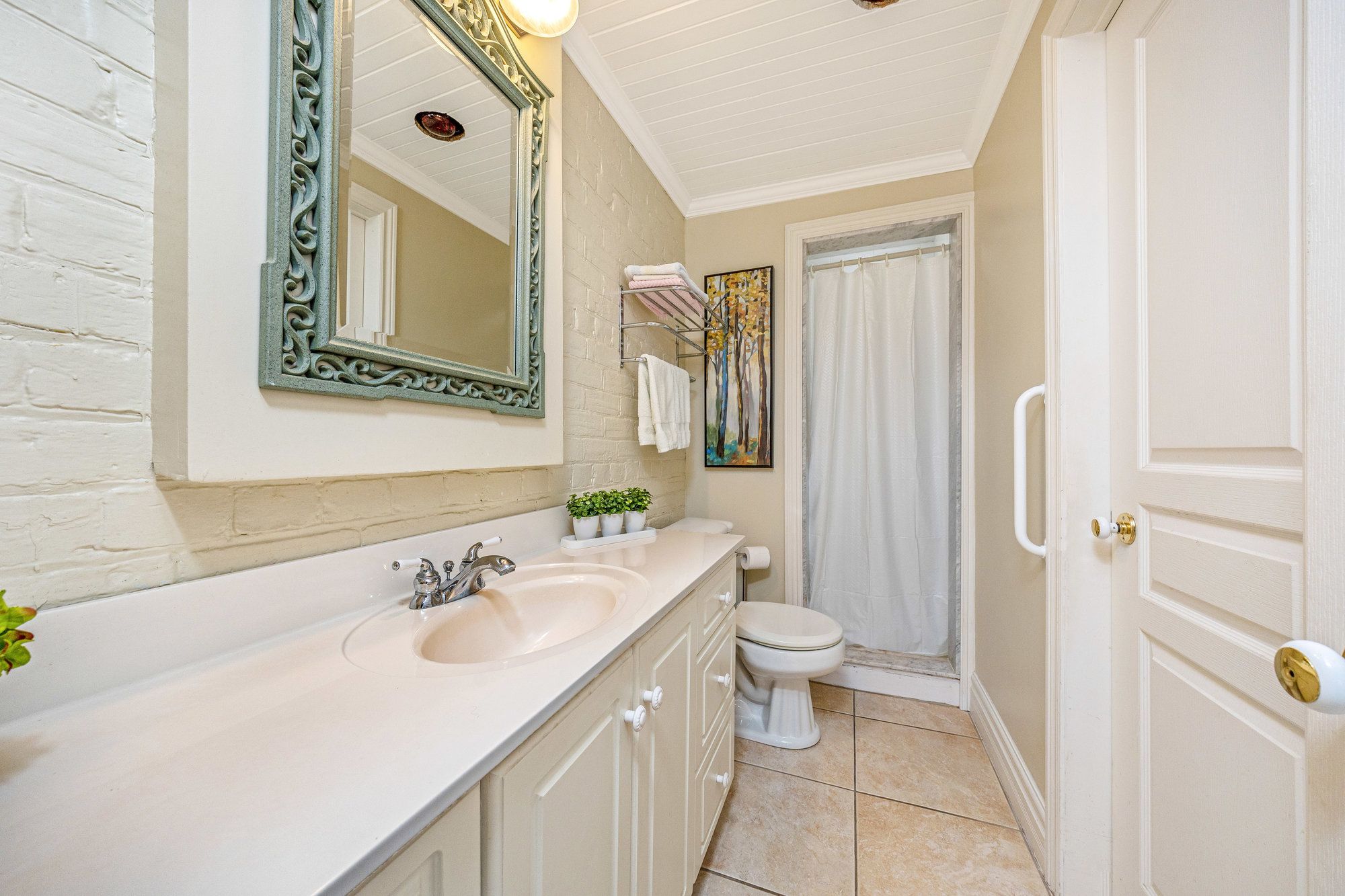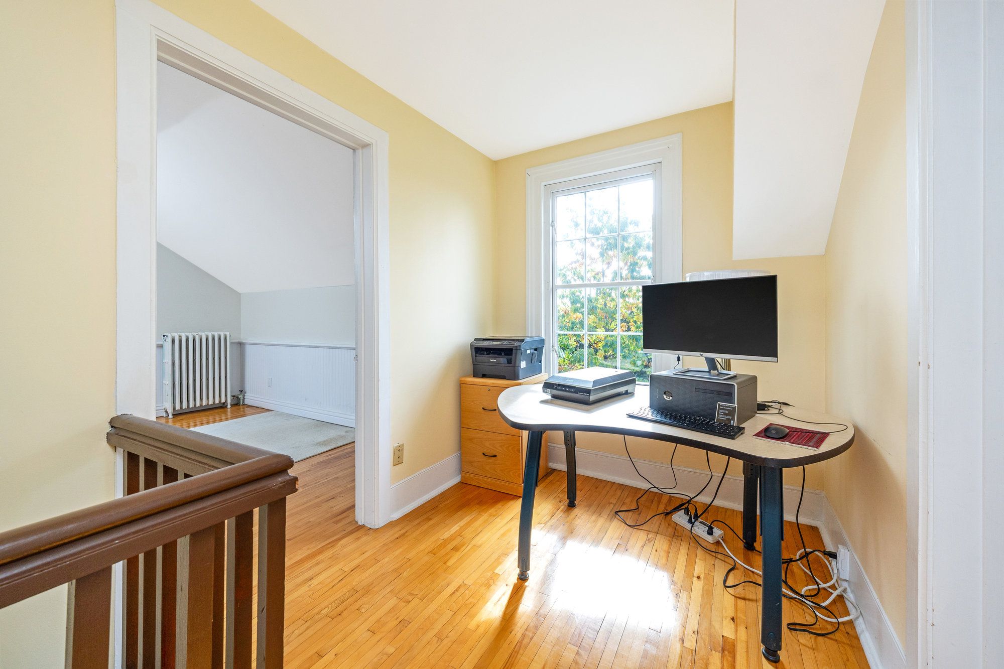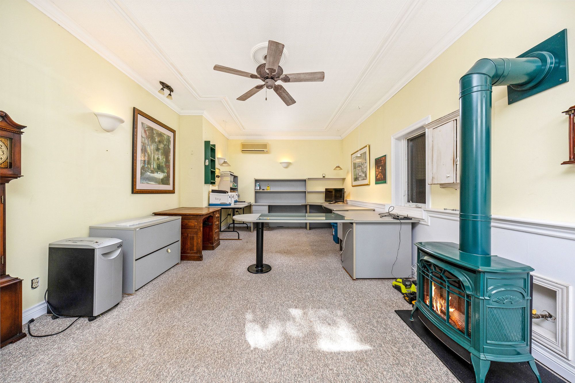 This is one remarkable property - perfect for a family based home business, or perhaps future development. Two lots, one with the dwelling, drive shed (home office), with a deeded right of way to the lane behind the property, and a severed building lot (50. 1 x 110). **these lots must be sold together**. Zoned low density 1 allowing for home occupation, and is in the georgetown go train secondary plan review. The larger, irregularly shaped lot, with maintained century home, updated throughout the years, is a cozy well loved home with a renovated kitchen and dining room with large windows and gas fireplace, welcoming bright living room with gas fireplace, a bright and sunny den, and a main floor bedroom with sitting area (which could be used for any purpose) with an semi-ensuite bathroom. The second floor has three bedrooms and a renovated bathroom with laundry. Outside you'll find a large gathering sized deck, and perennial gardens. The detached auxiliary building is partially finished as a home office (approx. 24. 5 feet x 12 ft) complete with gas fireplace to heat and an air conditioner unit. High ceilings and transom window make this work space inviting. Find two detached storage sheds, and two attached to the coach house on the side and back. The building lot, takes up the driveway and extends slightly into the parking area.