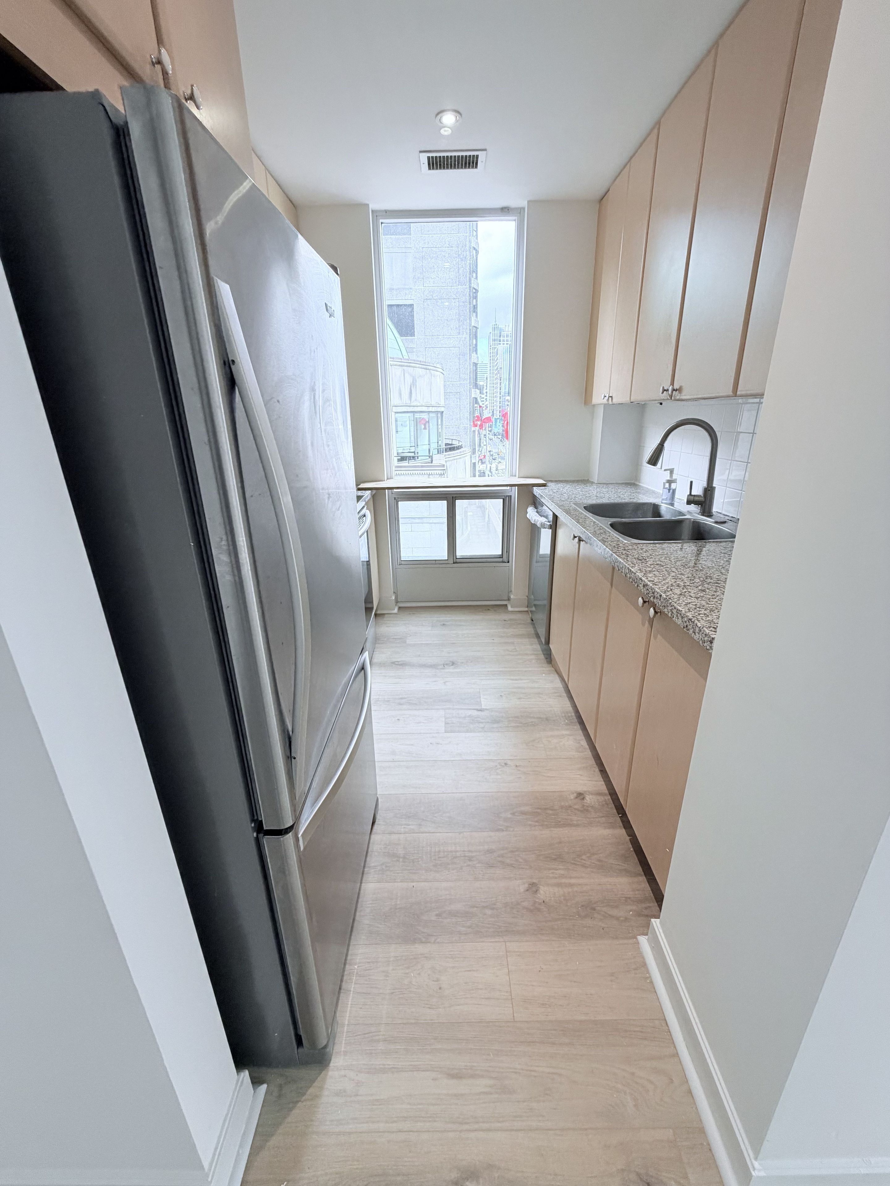 Located in the heart of downtown toronto's fashion district, this 805 square foot unit with 2 bedrooms and 2 washrooms offers the ideal setup for a professional seeking a dedicated home office where everything around is at reach at your convenience. Enjoy an exceptional collection of amenities, including a fully equipped fitness centre, stylish media room, bicycle storage, and a rooftop patio with community bbq perfect for entertaining or taking in the breathtaking city views. Includes one parking space and is walking distance to the yonge and bloor subway station. Recently renovated vinyl flooring throughout the unit making it carpet free. New dishwasher and toilet recently installed.