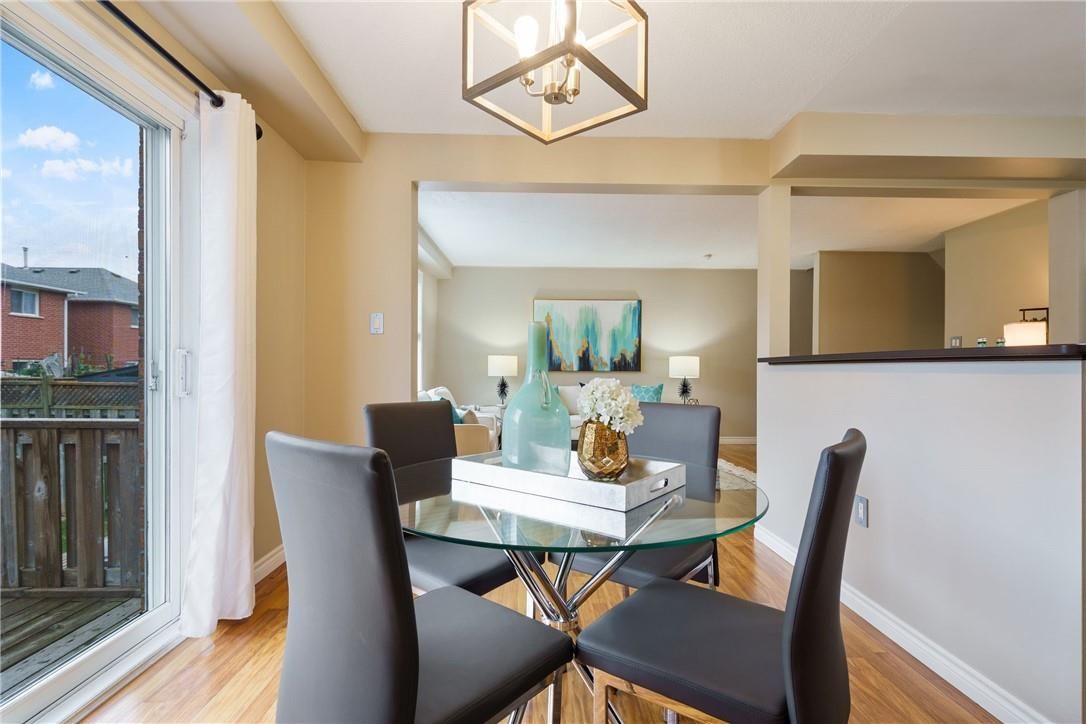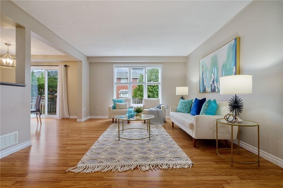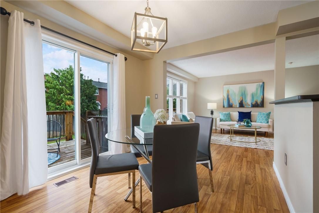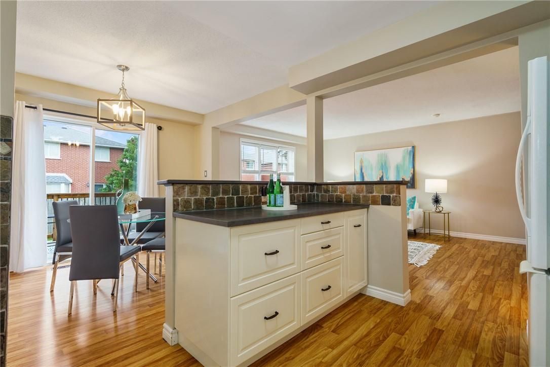 Welcome to 85 chelsea crescent in sherwood village! This beautifully maintained 3-bedroom, 3-bathroom freehold townhome is located in highly sought-after lower stoney creek and offers a rare double-car garage with inside entry, garage door opener, and double driveway. Inside, you'll find a bright open-concept living and dining area that flows into the updated kitchen, complete with a large breakfast bar-perfect for family time and entertaining. The main floor features newer laminate flooring, and the dining room opens through sliding doors to a lovely two-tier deck with a gas bbq hookup and a fully fenced backyard. Upstairs, there are two bedrooms plus a full main bath, along with a private principal suite on its own level, featuring a 2-piece bathroom and two large closets. The additional bedrooms also offer generous closet space. The finished lower level provides even more living space with a spacious family room, plenty of storage, and a convenient 3-piece bathroom with a separate shower. The home has been freshly painted, and the exterior showcases well-kept landscaping-making it completely move-in ready. All of this in a quiet, family-friendly location, close to schools, parks, shopping, churches, and with easy access to the highway.