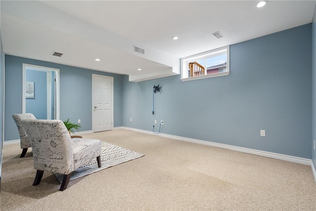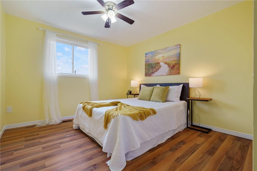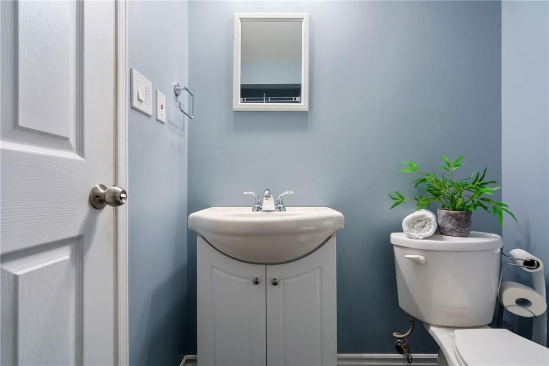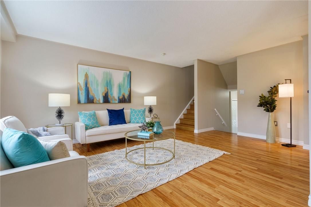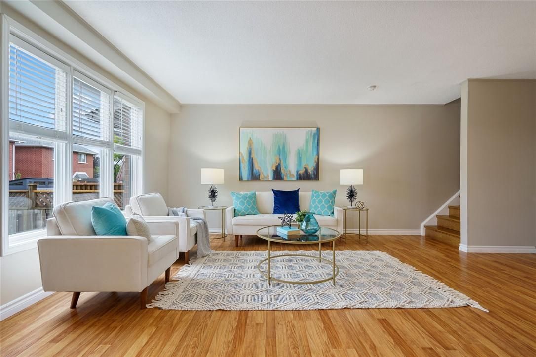 Welcome to 85 chelsea crescent in sherwood village! This beautifully maintained 3-bedroom, 3-bathroom freehold townhome is located in highly sought-after lower stoney creek and offers a rare double-car garage with inside entry, garage door opener, and double driveway. Inside, you'll find a bright open-concept living and dining area that flows into the updated kitchen, complete with a large breakfast bar-perfect for family time and entertaining. The main floor features newer laminate flooring, and the dining room opens through sliding doors to a lovely two-tier deck with a gas bbq hookup and a fully fenced backyard. Upstairs, there are two bedrooms plus a full main bath, along with a private principal suite on its own level, featuring a 2-piece bathroom and two large closets. The additional bedrooms also offer generous closet space. The finished lower level provides even more living space with a spacious family room, plenty of storage, and a convenient 3-piece bathroom with a separate shower. The home has been freshly painted, and the exterior showcases well-kept landscaping-making it completely move-in ready. All of this in a quiet, family-friendly location, close to schools, parks, shopping, churches, and with easy access to the highway.