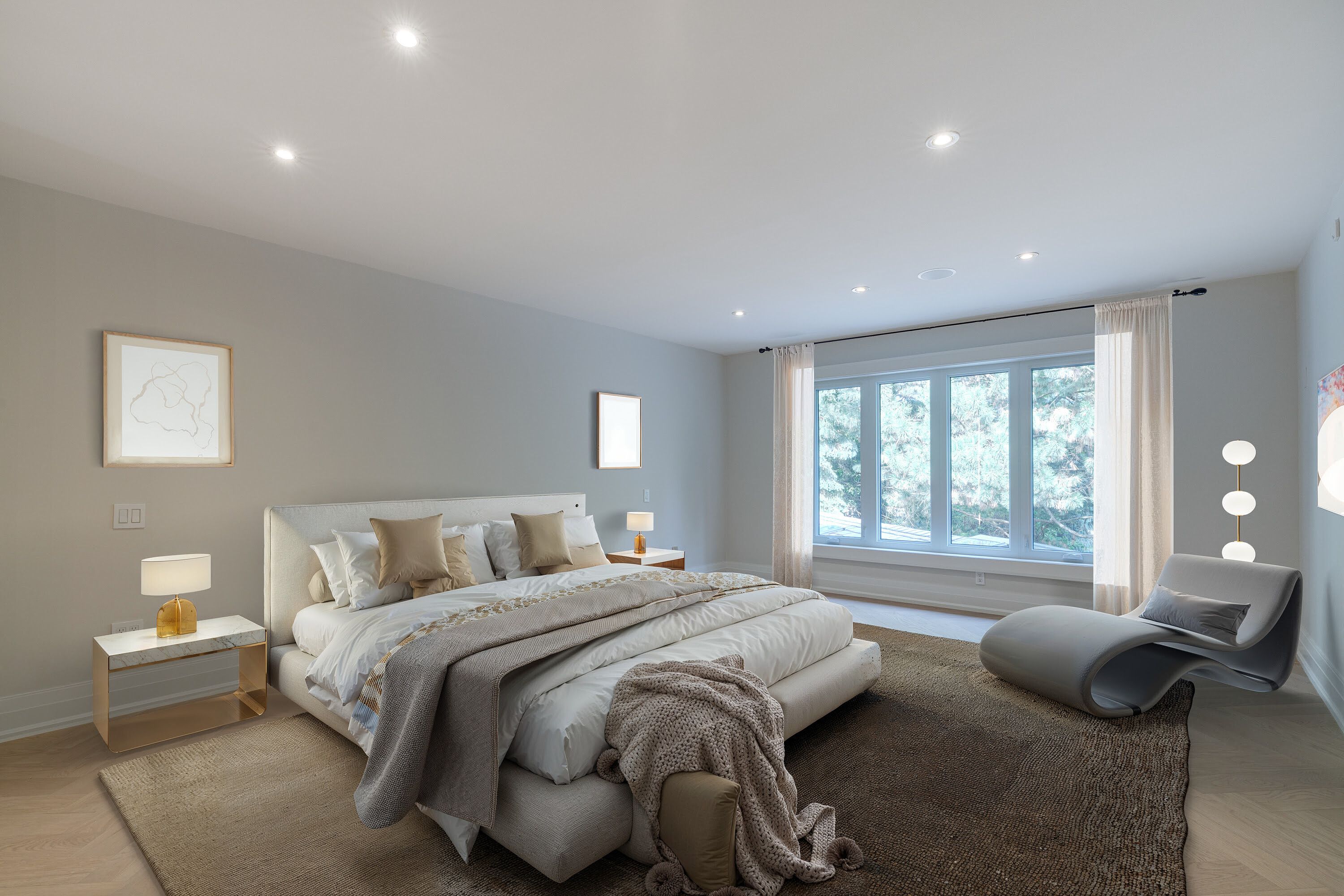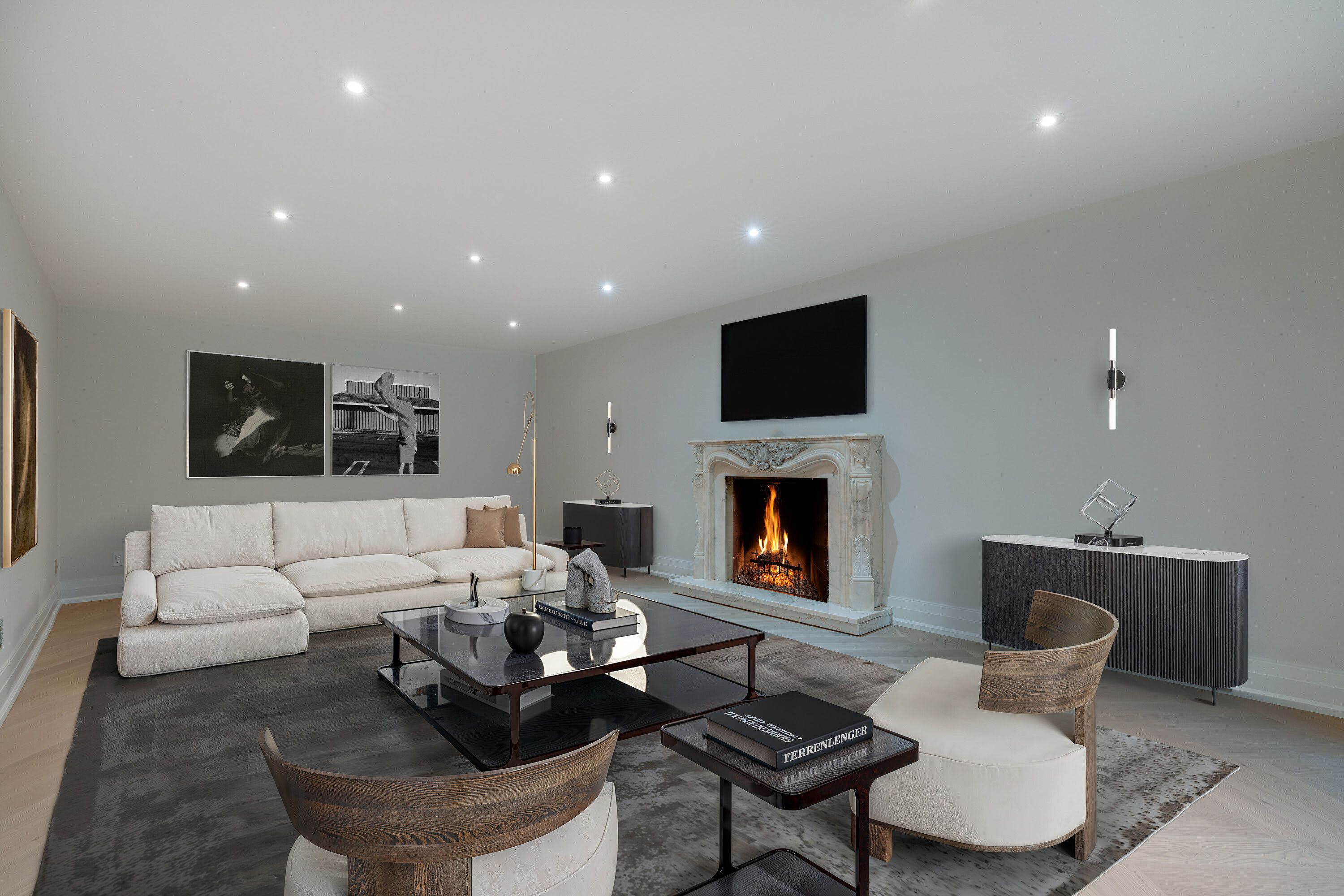 Fully renovated, this 5+1-bedroom, 8-bathroom transitional estate backs onto holes 6 and 7 of the prestigious national golf course in woodbridge. Set on a private 1+ acre lot with dual-gated entrances, intricate stonework, professional landscape lighting, mature trees, and striking black glass doors at both the entrance and garages, the property blends quiet elegance with secure living. Inside, refined craftsmanship is showcased through slab stone finishes, marble fireplaces, and a grand reception entrance with a 3-storey floating staircase. The residence offers: a primary suite with a fendi casa inspired walk-in closet and spa-like bath, ensuite baths and built-in closets in every upper-level bedroom; 3+1 kitchens and 2 laundry rooms for ultimate convenience; a wellness area with heated floors, change room, powder room and contemporary spa-shower plus direct pool access. Media and games rooms, sauna, home gym (or nanny's suite), and a dedicated space for a customized panic room. The resort-style backyard is designed for entertaining with an inground pool, covered loggia with outdoor kitchen and fireplace, dining and seating areas, and open, park-like grounds perfect for growing an organic vegetable garden or children's play. Parking for 15 vehicles includes a 3-car garage with lift-ready capacity. Move-in ready, this estate combines contemporary luxury, privacy, and security - perfect for the discerning buyer. *some pictures are virtually furnished.