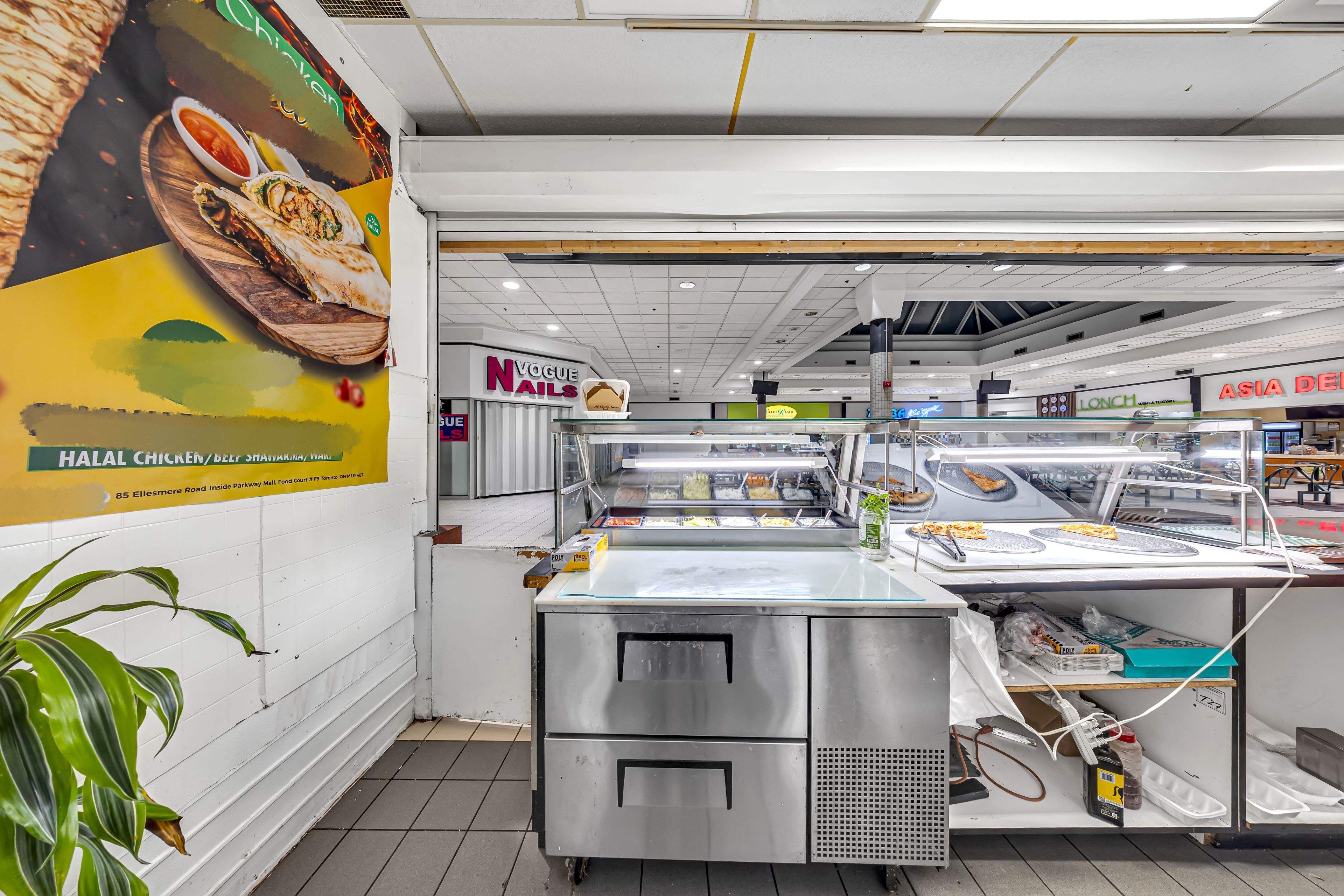 Prime location alert! Don't miss this rare opportunity to own a fully equipped quick-service restaurant in the highly sought-after parkway mall, located at the busy intersection of victoria park avenue and ellesmere road in toronto's east end. Surrounded by high-rise condos, offices and schools, this unit benefits from steady foot traffic and strong community visibility. Parkway mall features over 100 established retailers, making it a vibrant hub with excellent exposure and growth potential. This turnkey restaurant is ready for immediate operation, specializing in freshly baked pizza and flavourful shawarma, plus customer favourites like wings, fries, panzerotti, calzones, salads, rice, naan, and more. Features include an bakers pride pizza oven, 8-foot commercial exhaust hood, ideal for high-volume cooking and future menu expansion. With ample parking and a high-traffic location, a fantastic option for new owners ready to continue and expand a successful restaurant business. Rent is $2,710/month including tmi and hst. Partnered with uber eats and skip the dishes for easy online ordering.