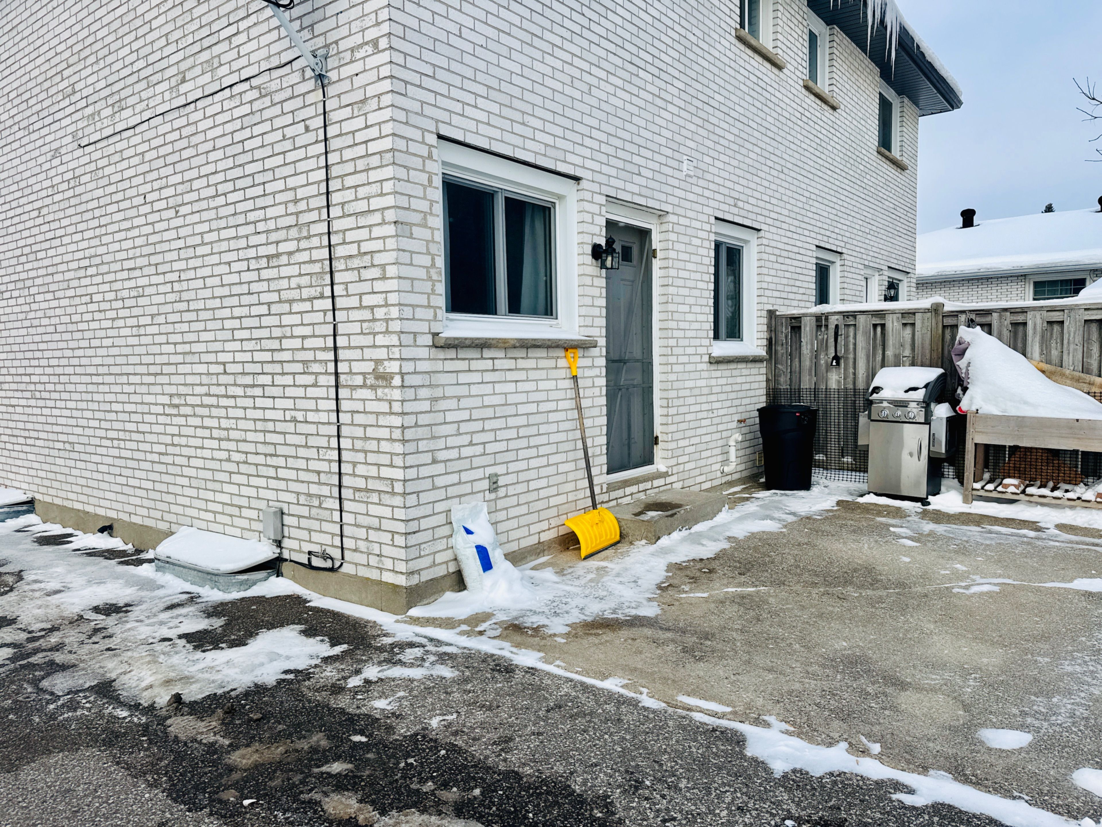 Two bedroom semi-detached with finished basement backing onto farm field and at a dead end street. The gas furnace was replaced in 2023. Roof shingles, soffits, fascia and eavestroughs july 2019. Owned hot water tank-no rentals. Main floor features hardwood flooring and a walkout from the dining room to the concrete patio the shed is handy for garden supplies and storage. Lots of parking.