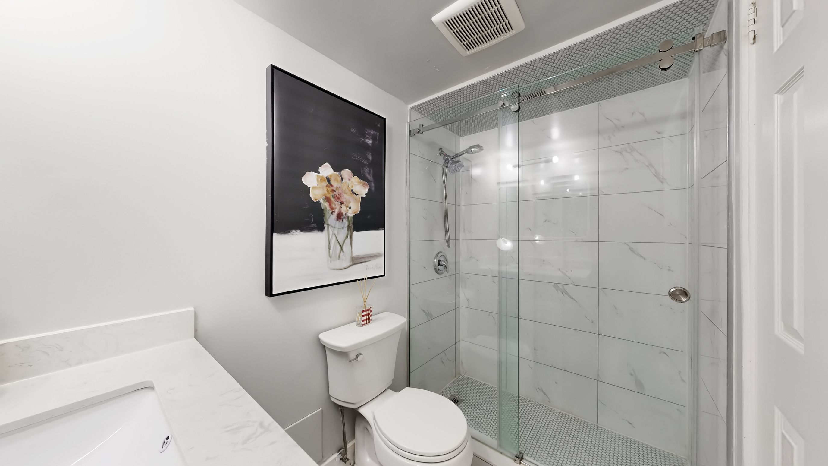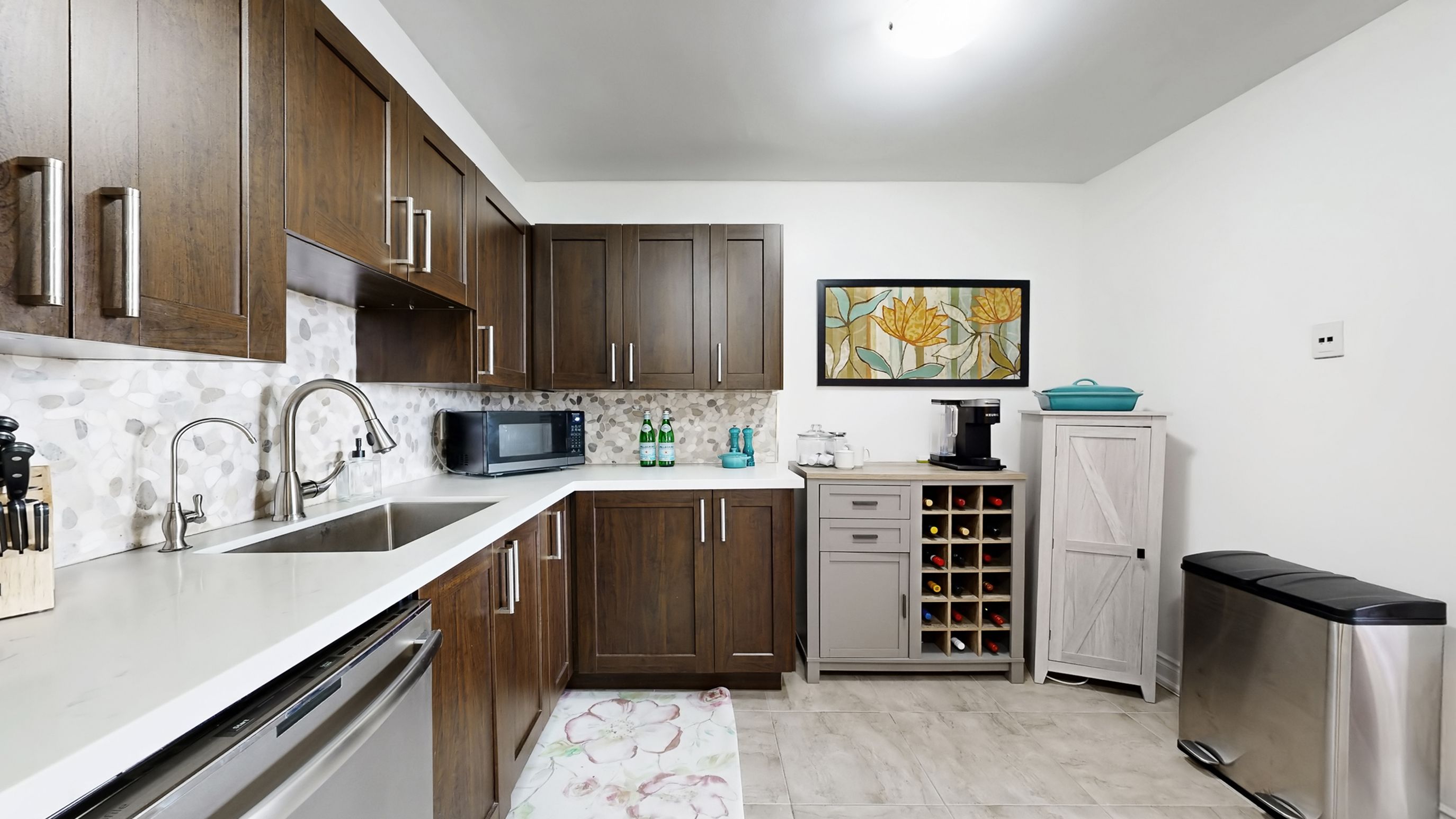 • Renovated kitchen with stainless steel appliances and quartz countertops.