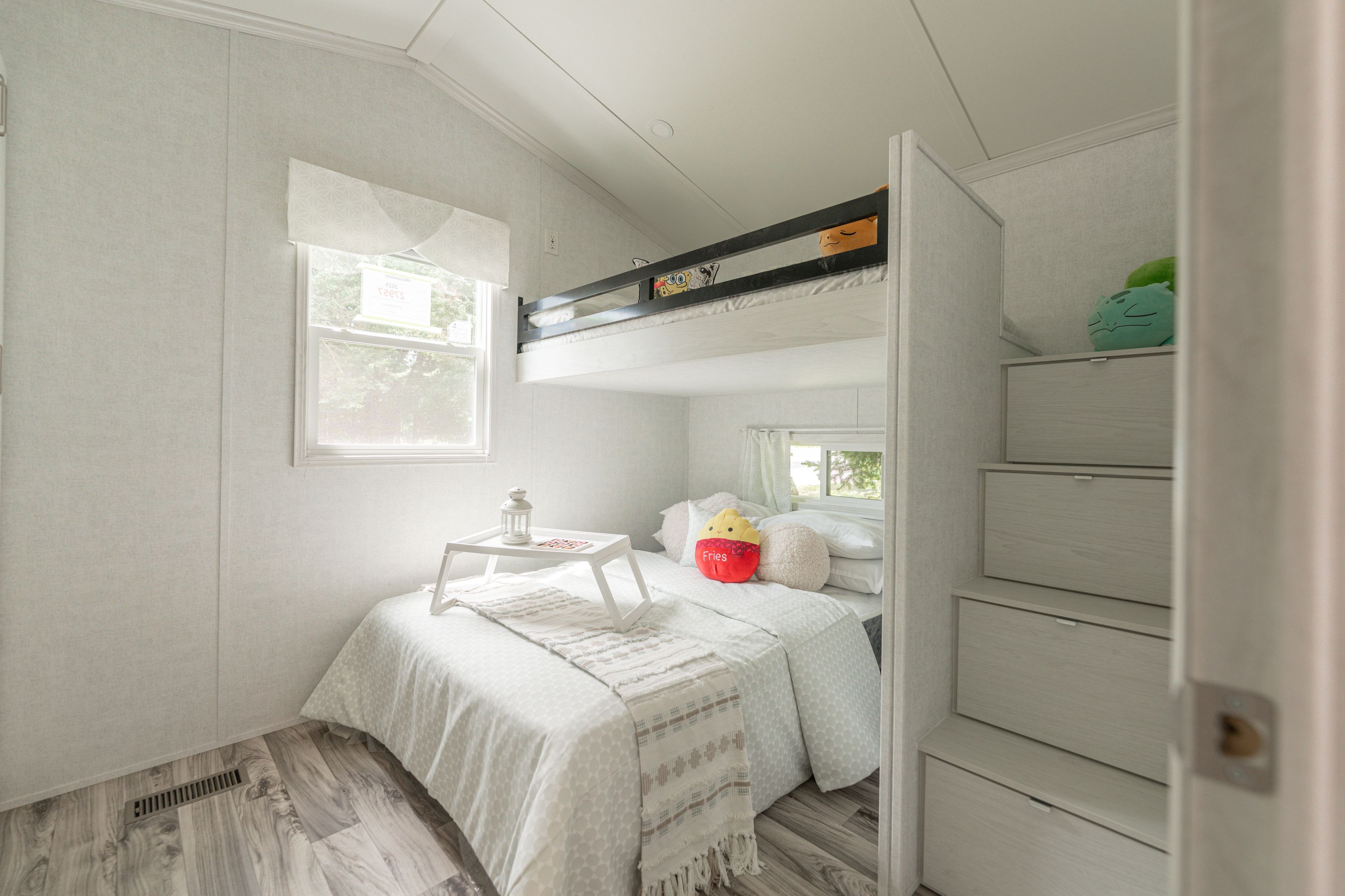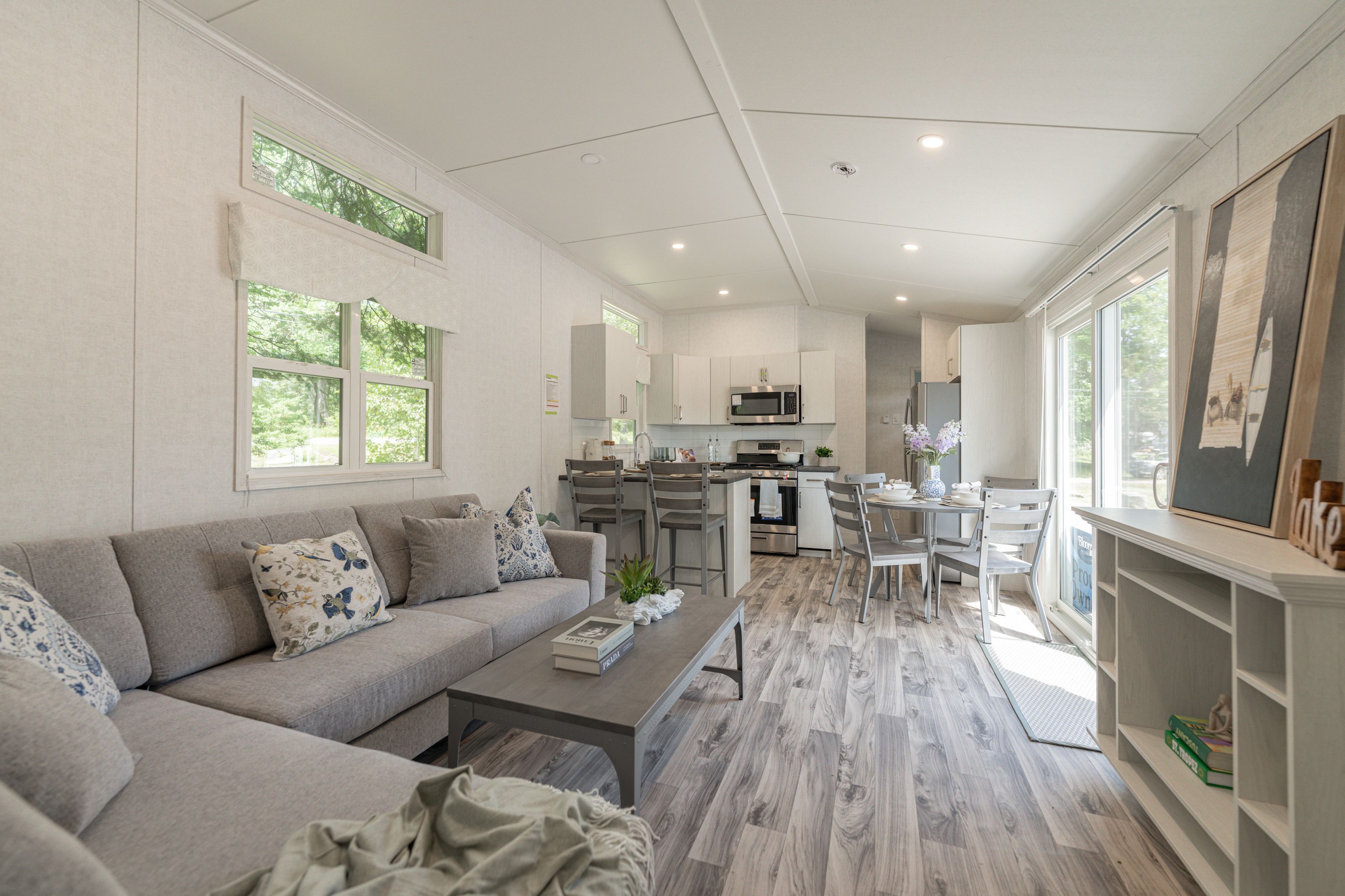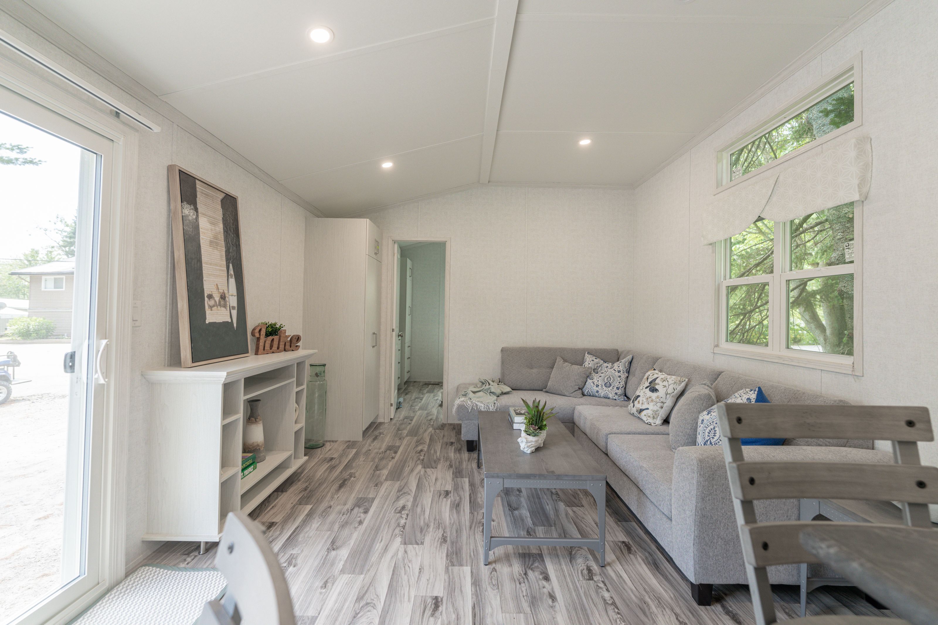 • Charming two-bedroom Ferrensby model perfect for a lakeside getaway.