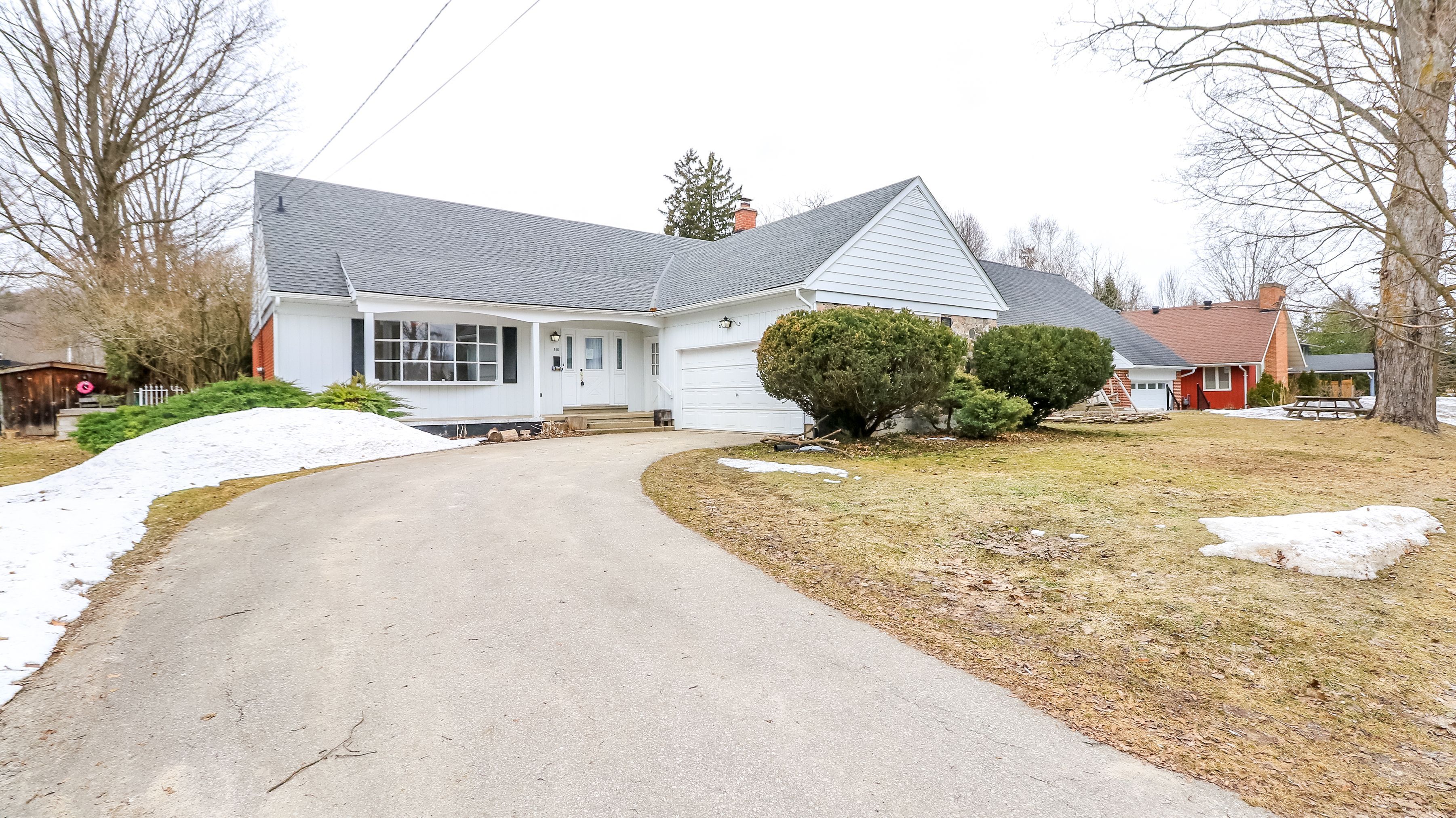 • Bright interior with large windows flooding rooms with natural light.