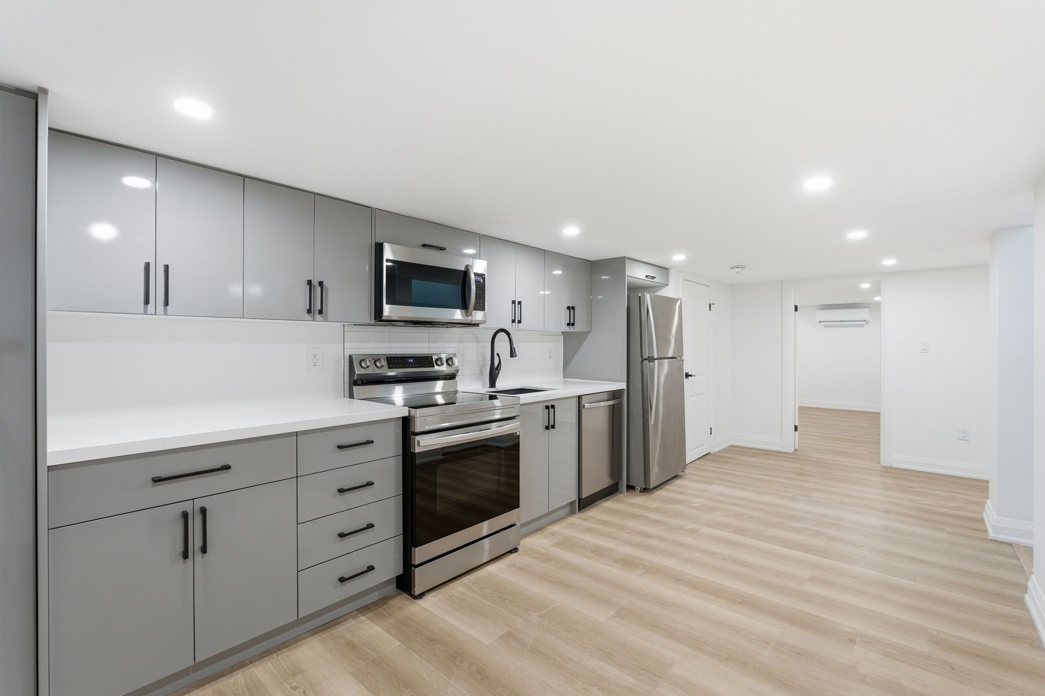 ---lower only--- welcome to 85 martindale road - a fully renovated basement unit in st. Catharines offering all utilities included, plus grass cutting and snow removal. The only bill you'll be responsible for is internet! This bright 1-bedroom, 1-bath space is anything but typical, with modern finishes throughout, including luxury vinyl plank flooring, pot lights, and a beautifully updated 4-piece bathroom. The sleek kitchen is equipped with stainless steel appliances, white shaker cabinetry, stone countertops, and matte black fixtures. You'll love the convenience of in-suite laundry, a separate private entrance, and your own dedicated section of the back porch with access to the backyard. Tucked in a quiet, well-kept neighbourhood just minutes from the qew and fourth avenue's full shopping lineup (walmart, canadian tire, groceries, dining). Ideal for a single professional or couple looking for stylish, move-in-ready living with zero maintenance. Immediate possession available!