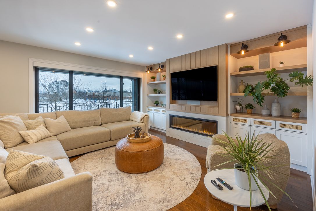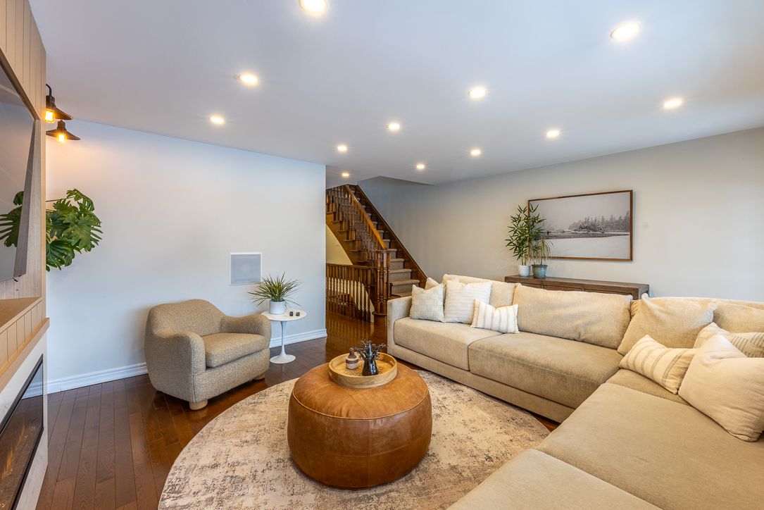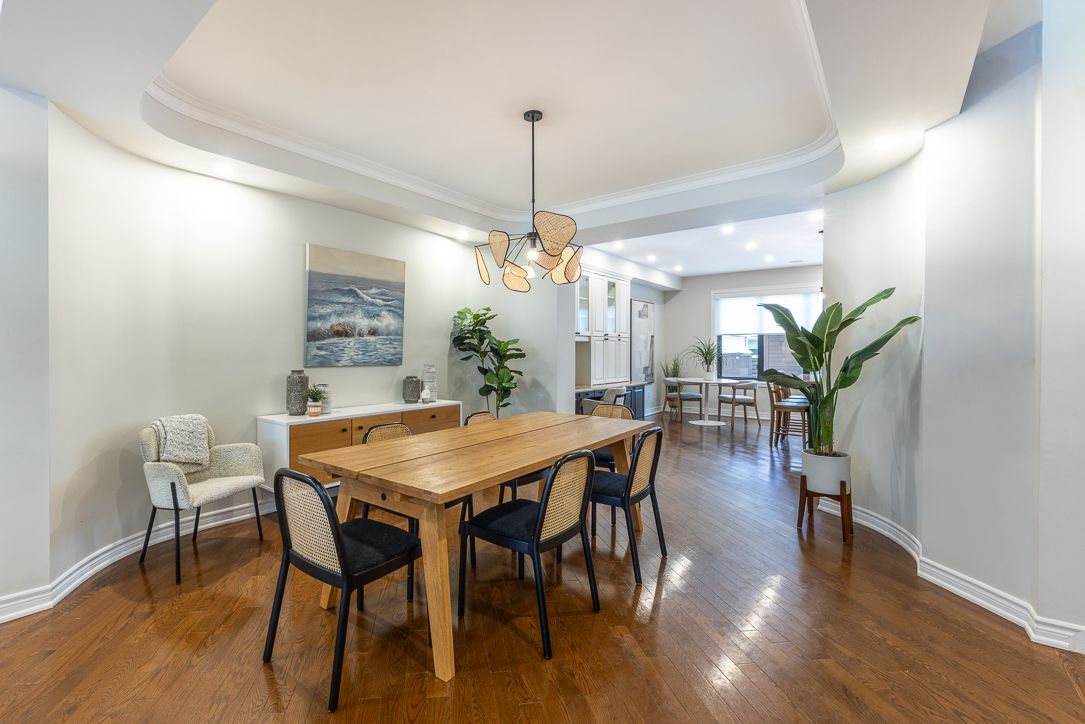 An exceptional beach community residence where refined elegance meets effortless coastal living. This meticulously designed three-storey detached home offers a sophisticated interior space and is ideally located just moments from lake ontario, the boardwalk, vibrant queen street shops, parks, transit, and top schools in the esteemed beaches community. Step inside to an open-concept main floor flooded with natural light, featuring a grand living area overlooking lush green space, an elegant dining room with coffered ceilings, and a chef's kitchen equipped with premium appliances, a centre island, built-in desk and casual sitting area, perfect for entertaining and everyday living. The second level includes a family room with a custom media wall and park-facing balcony, while the upper retreat boasts a luxurious primary suite with walk-in closet, spa-inspired ensuite, and an expansive west-facing terrace complete with a gas fire table, offering clear city views and stunning sunsets. The beautifully finished lower level enhances living space with a generous rec room featuring a built-in bar and a large fourth bedroom, ideal for guests or flexible use. Outside, the property is professionally landscaped with irrigation and includes a double garage. 85 northern dancer boulevard is more than a home, it's a lifestyle of comfort, sophistication and effortless access to beaches, outdoor living and downtown toronto. "a world of magnificence awaits"